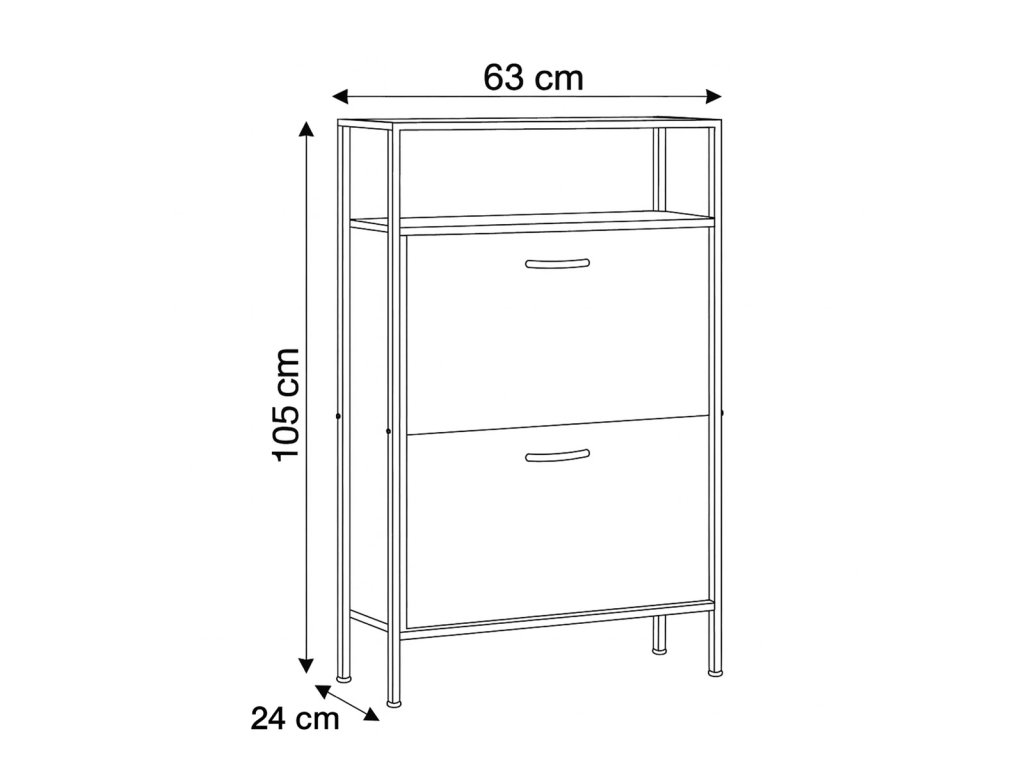 Botník se dvěmi policemi dekor dub / kov 63 x 24 x 105 cm