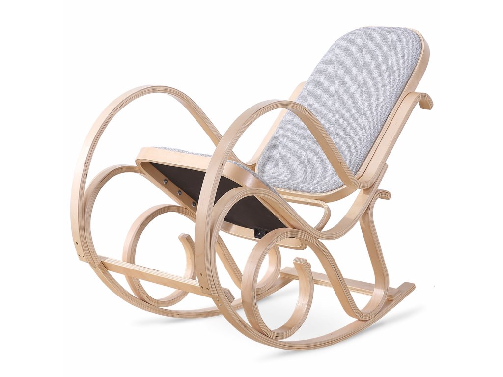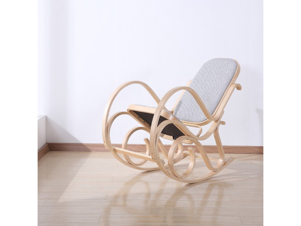 Klasické a nadčasové houpací křeslo se sedákem a opěradlem v šedé barvě.