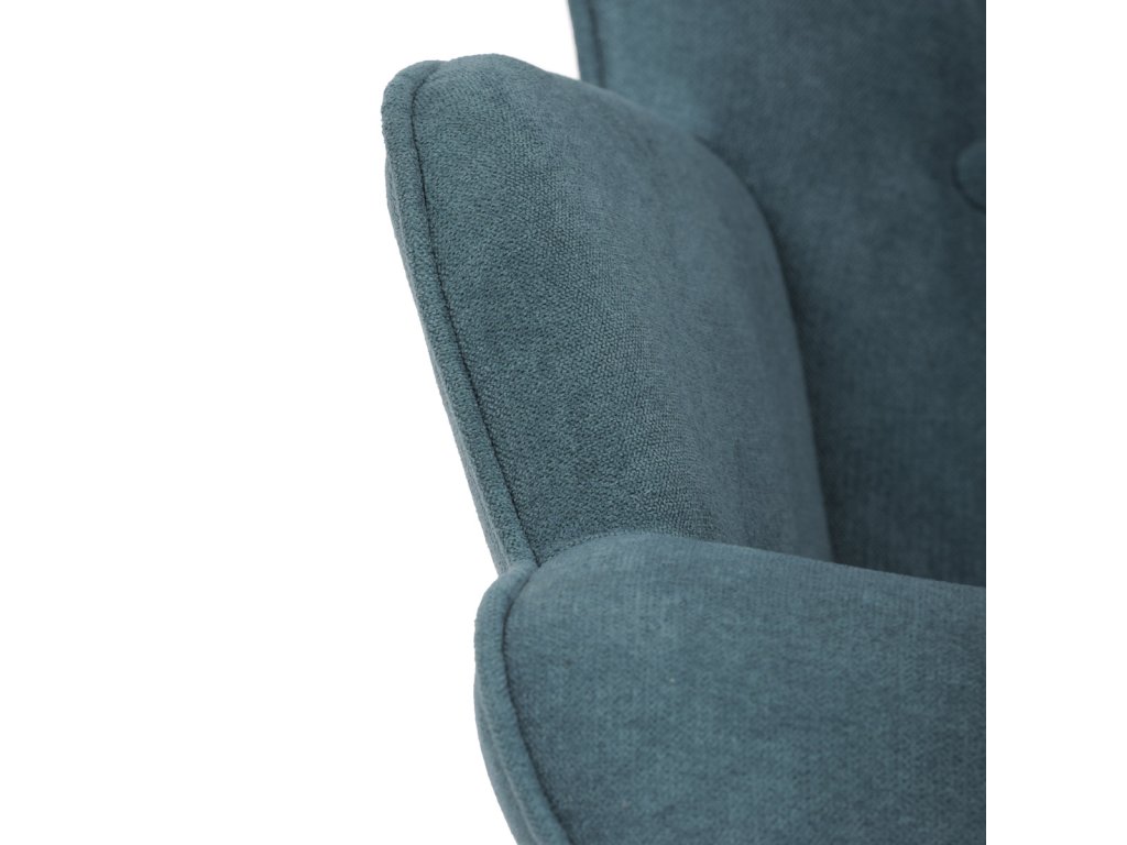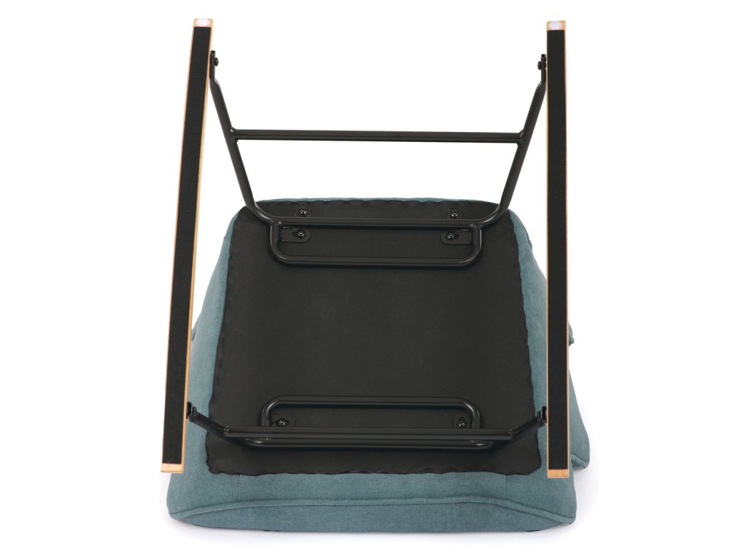 Zelený potah z hladké látky nabízí jemný a příjemný kontakt s pokožkou, zatímco robustní nohy z masivního dřeva v přírodní barvě dodávají stabilitu a luxusní vzhled.