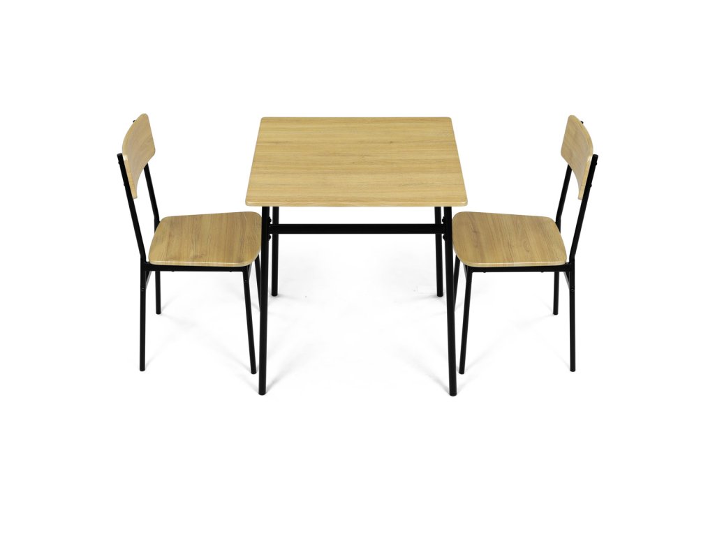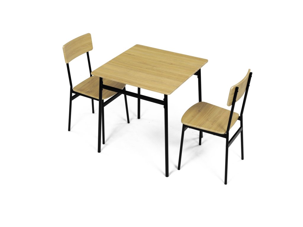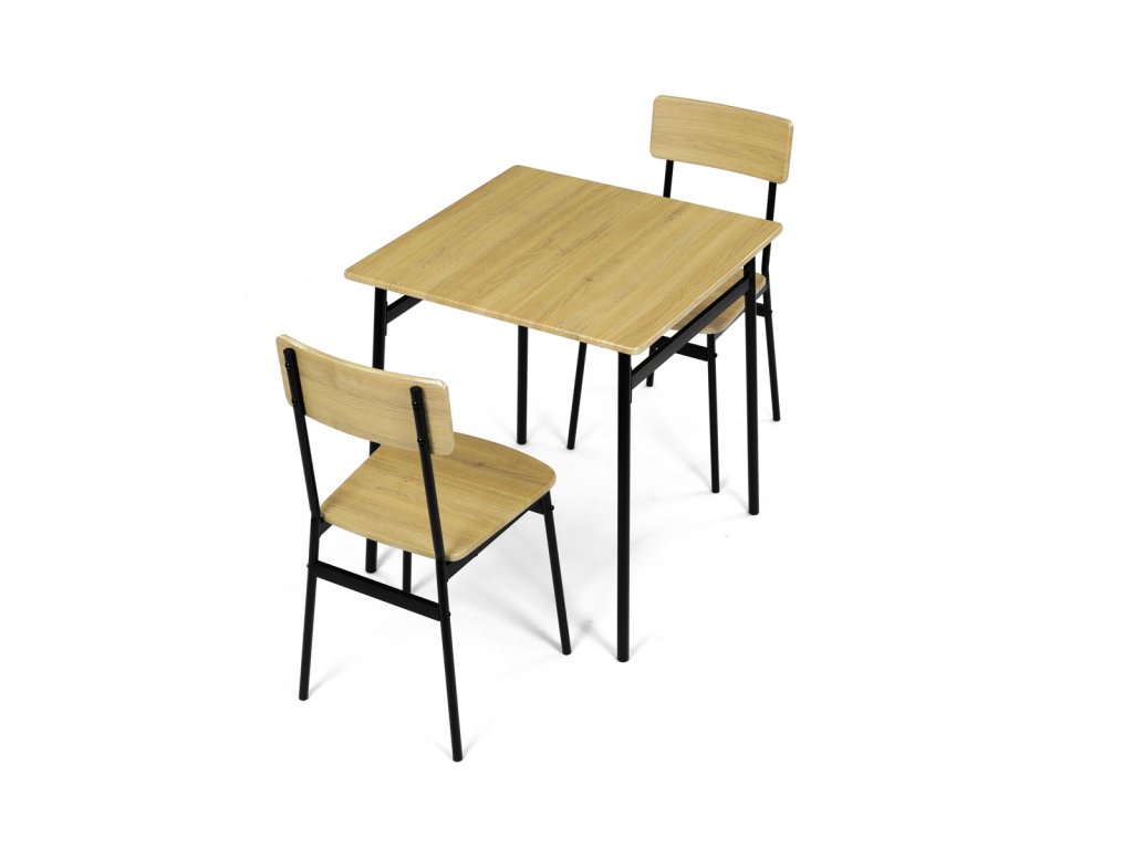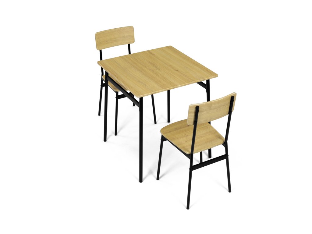 Sada obsahuje čtvercový stůl a dvě židle, které se svým industriálním designem dokonale hodí do moderních interiérů.