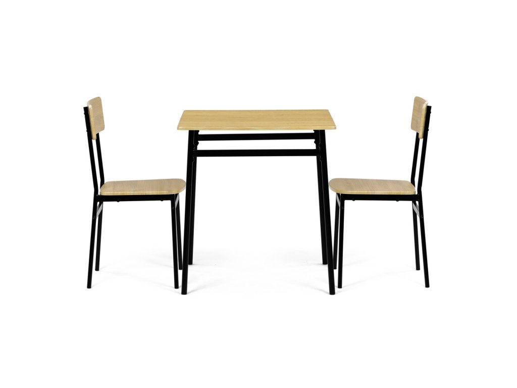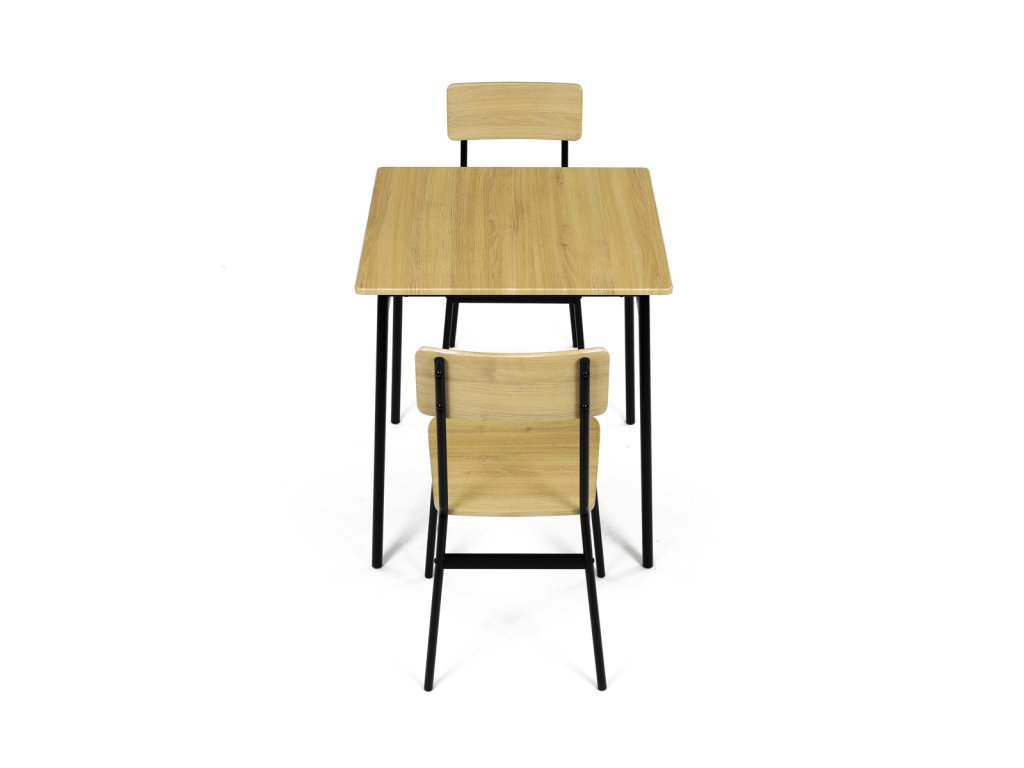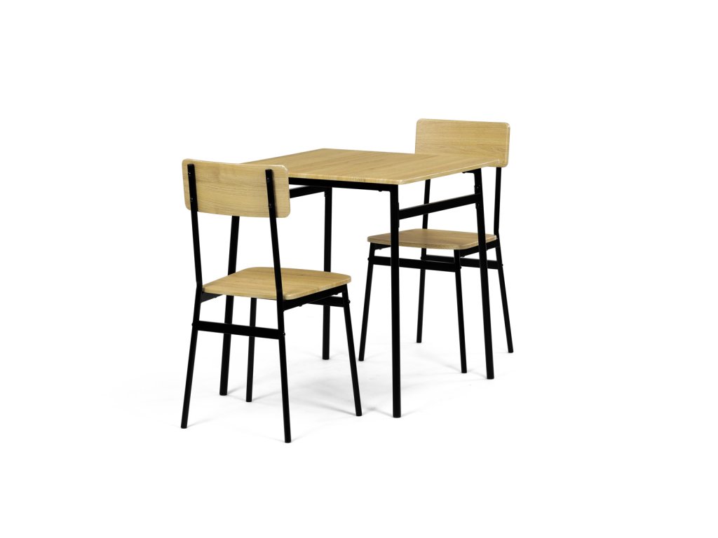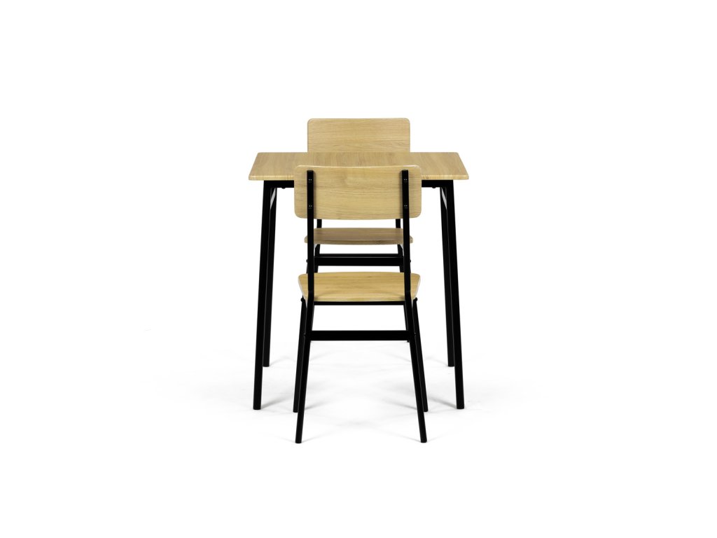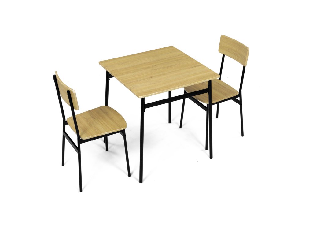 Sada obsahuje čtvercový stůl a dvě židle, které se svým industriálním designem dokonale hodí do moderních interiérů.