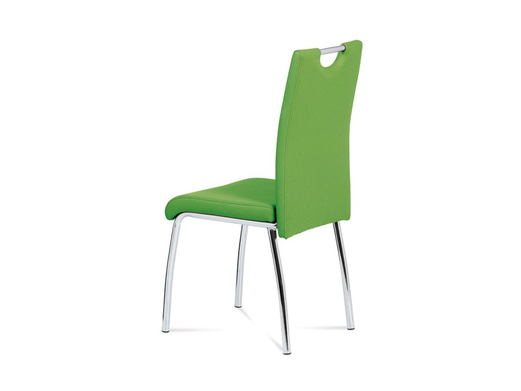 Moderní jídelní židle v zelené barvě s kovovými prvky.