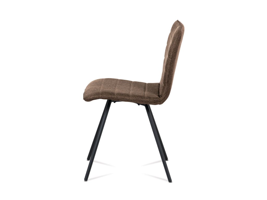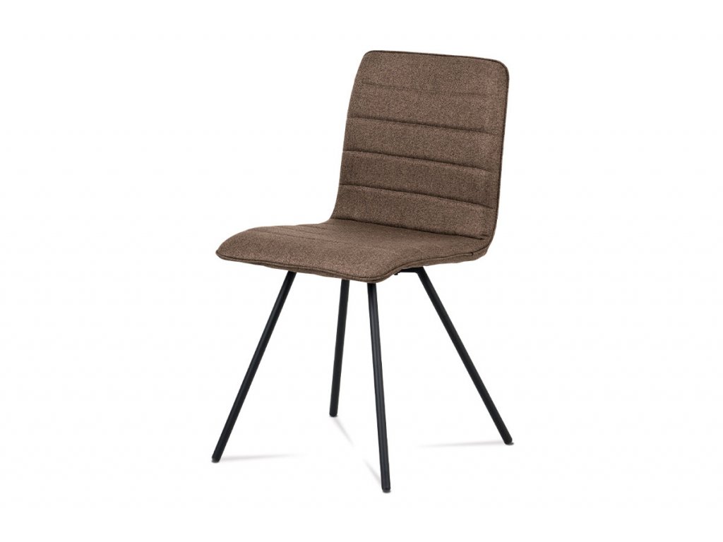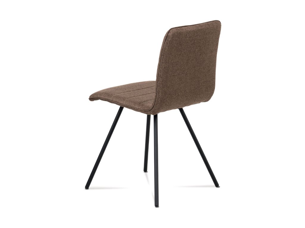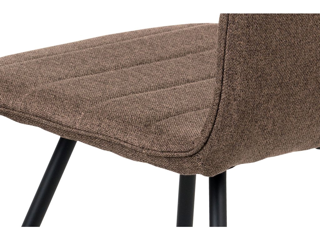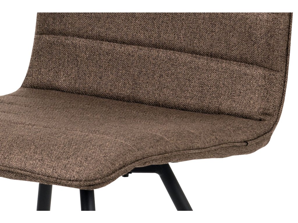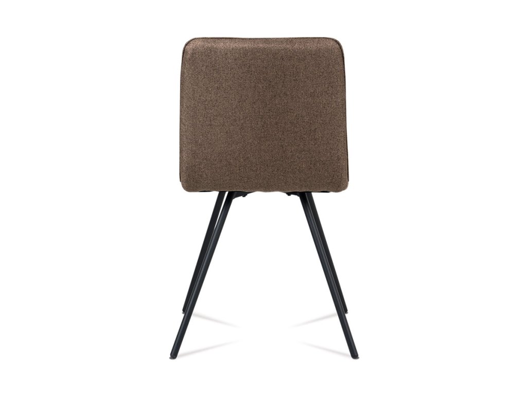 Součástí židle je polstrovaný sedák z hnědé látky.
