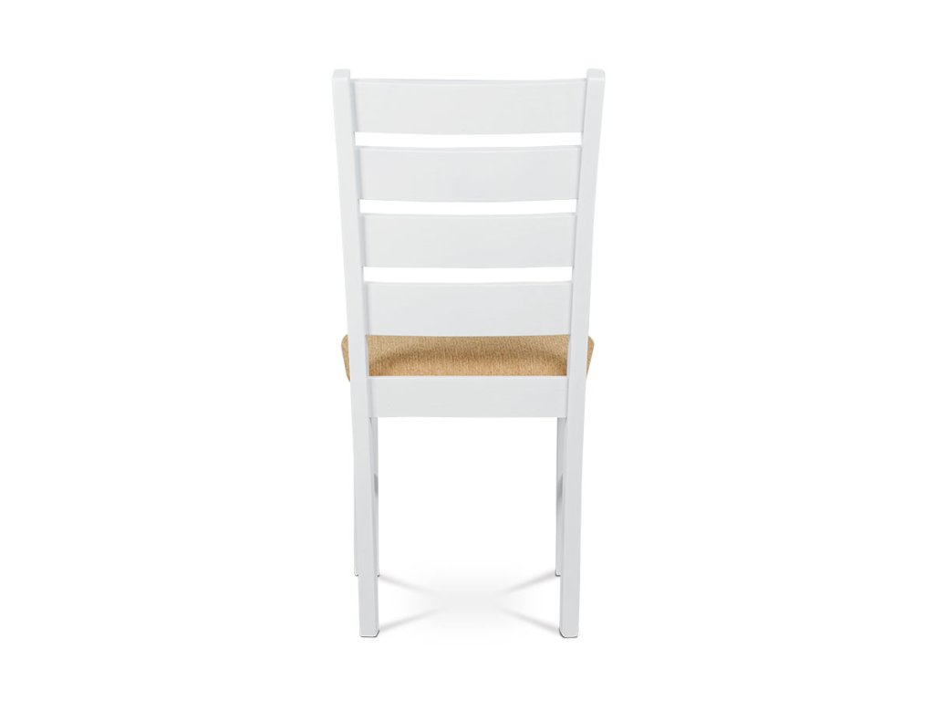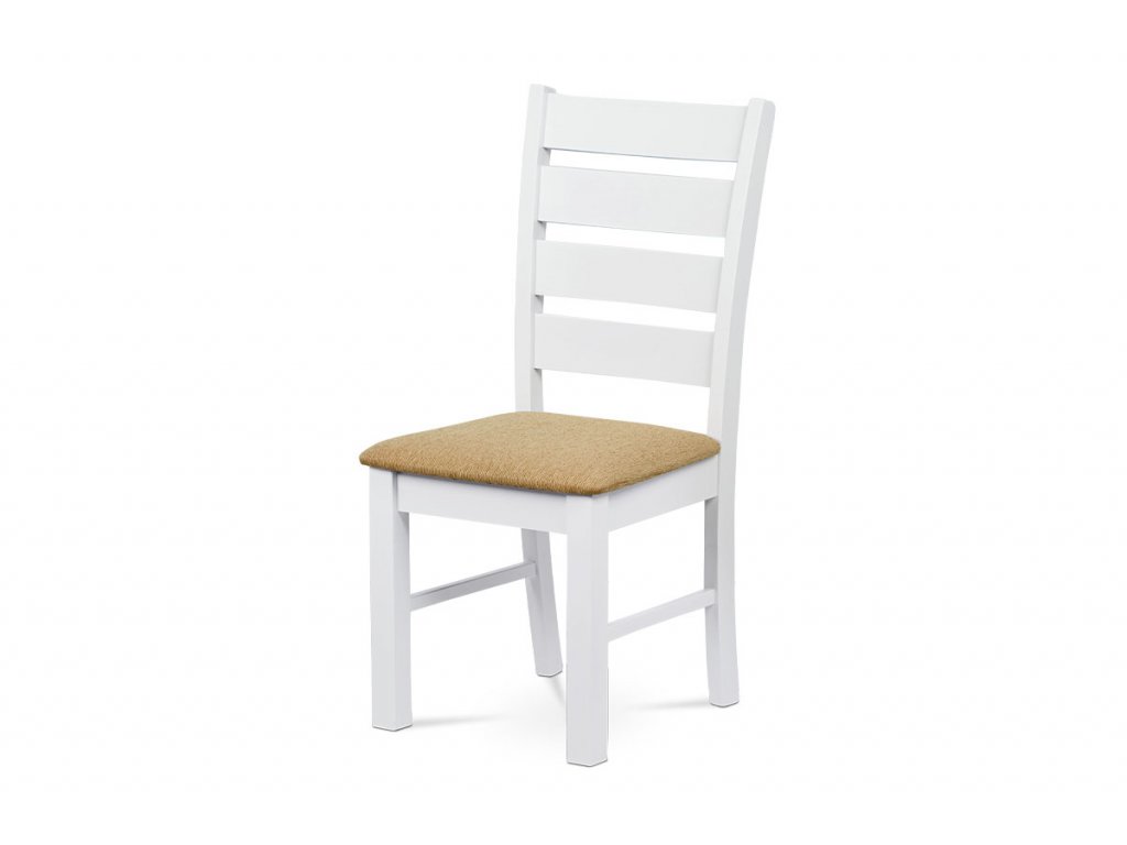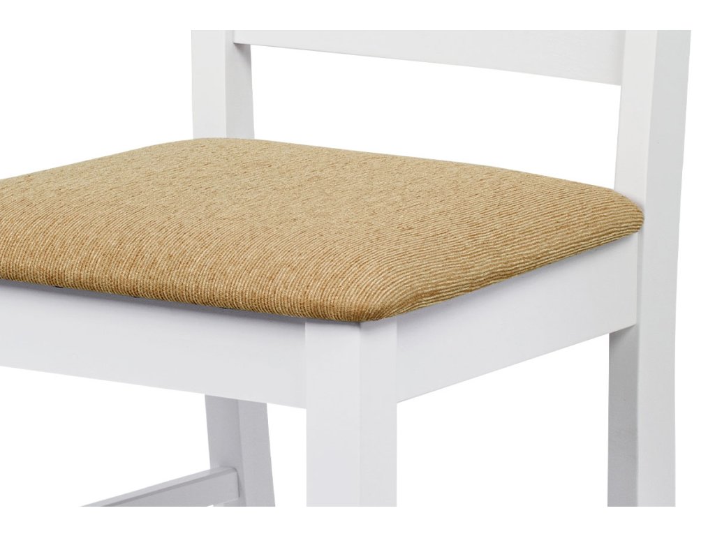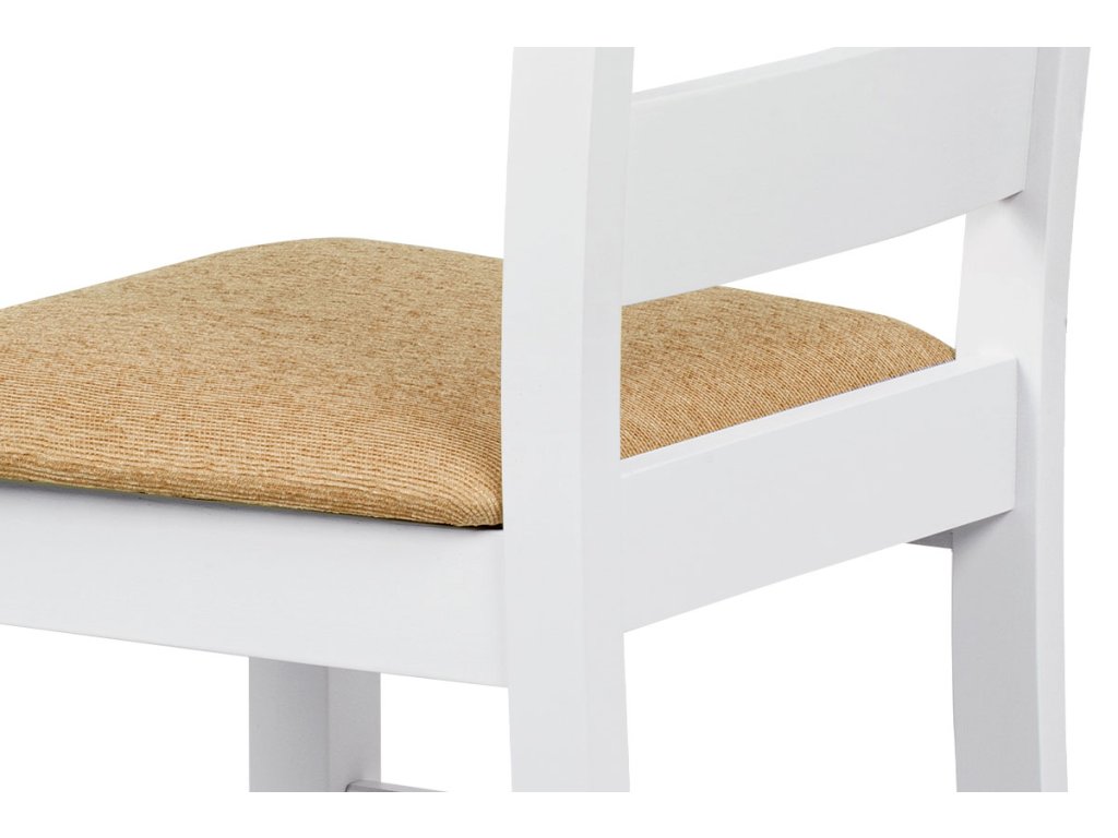 Židle je z masivu v kombinaci s látkovým potahem v barvě písku.