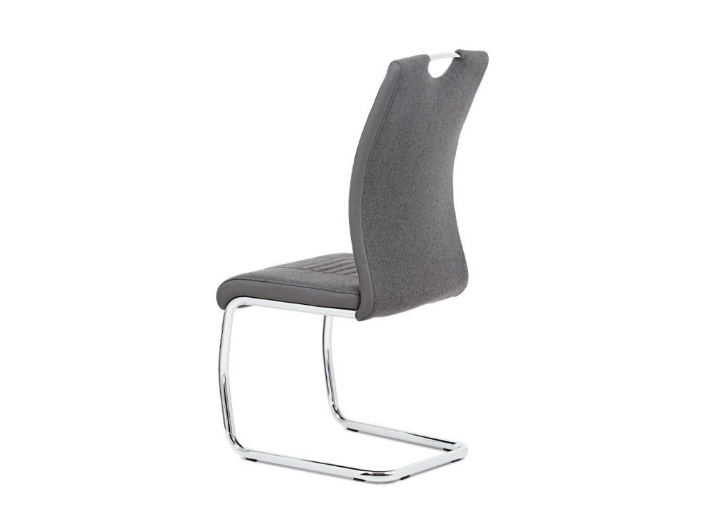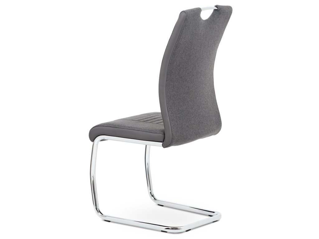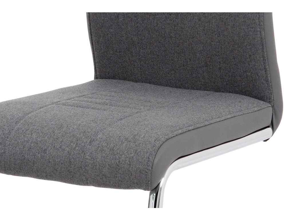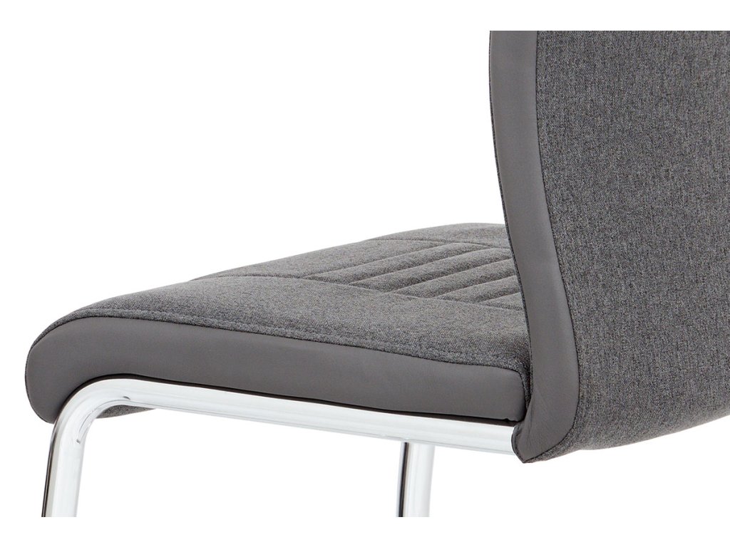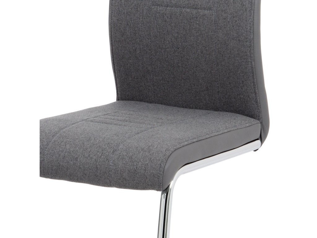Sedák a opěrák jsou vyrobeny z látky v kombinaci s koženkou v šedé barvě a kostra je vyrobena z kovu.