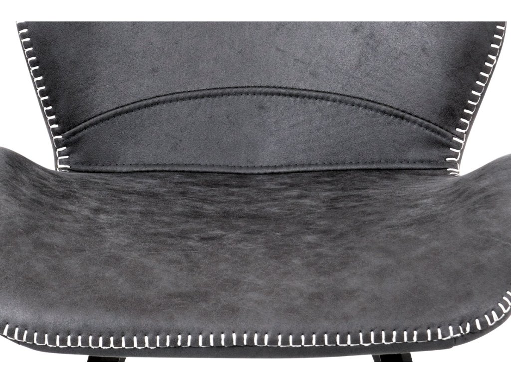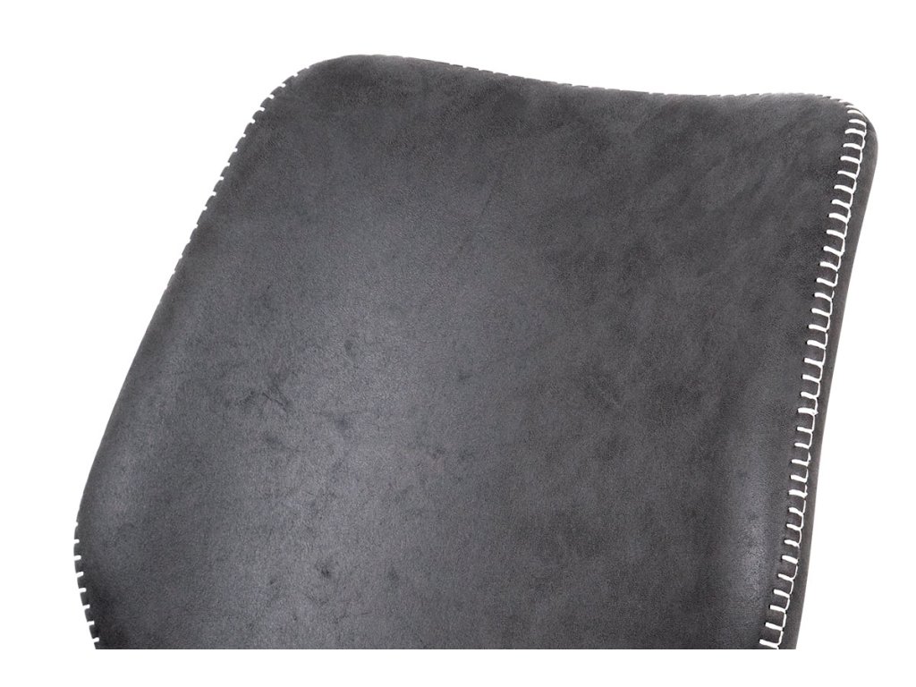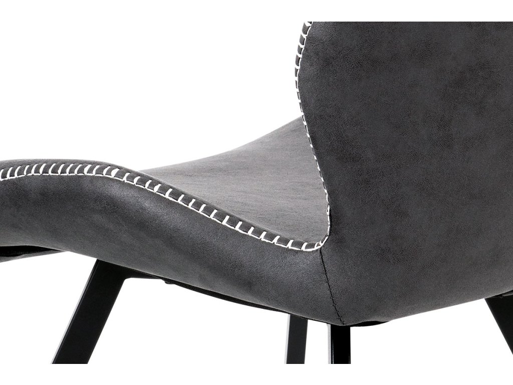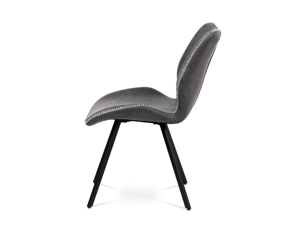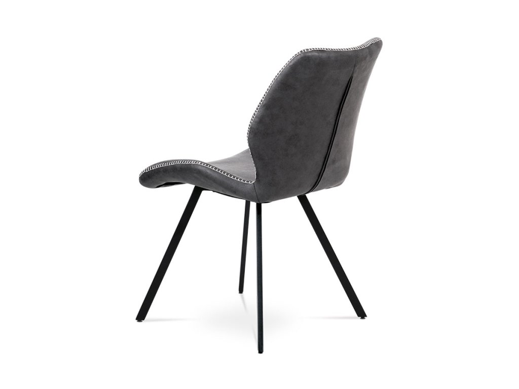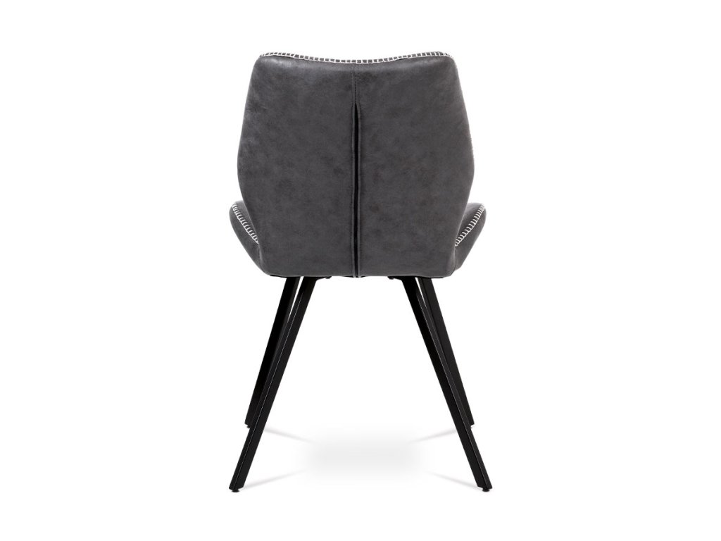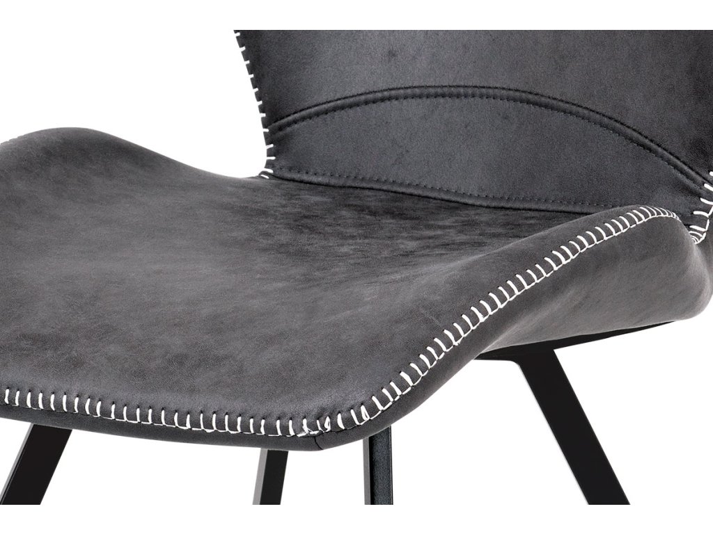 Židle je čalouněná vintage látkou šedé barvy s bílým dekorativním prošitím.