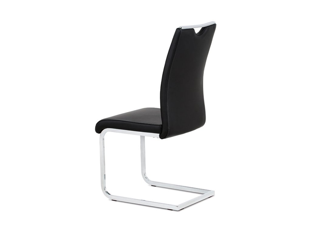 Provedení koženka v černé barvě s dekorativním prošitím v kombinaci s pochromovaným madlem a podnoží.