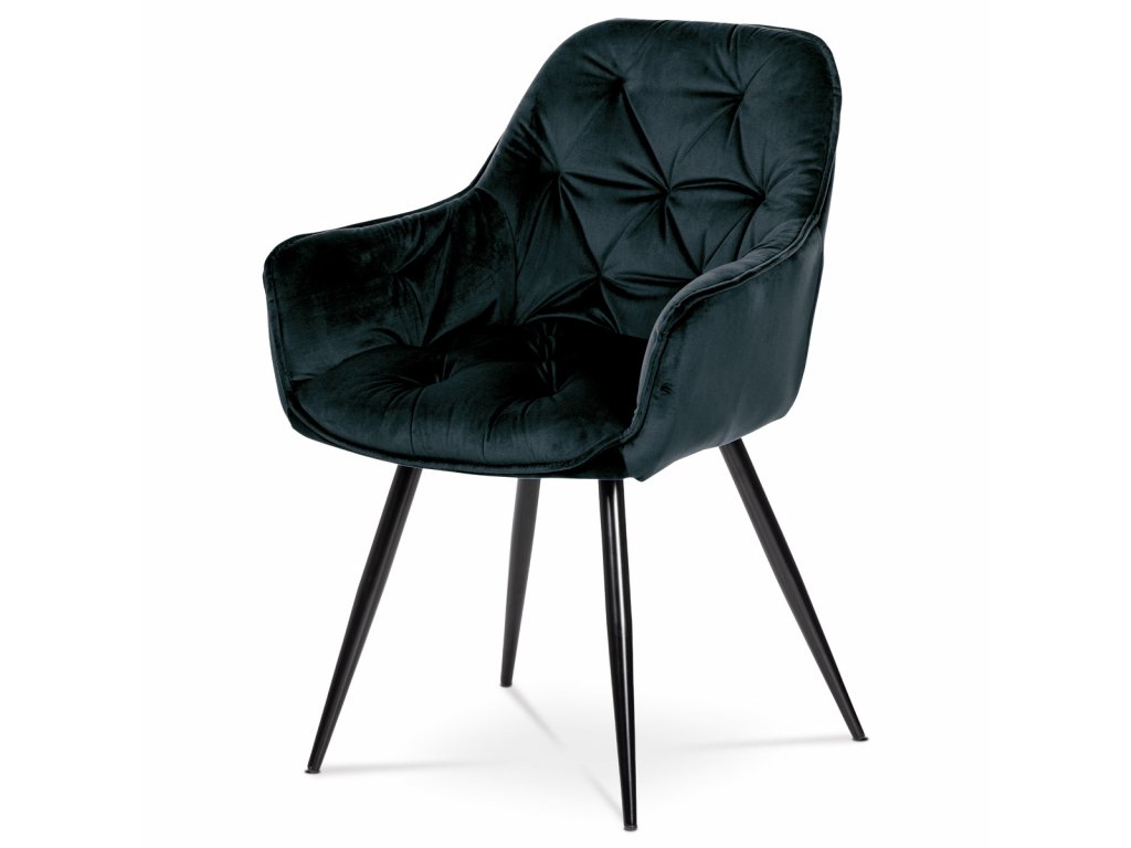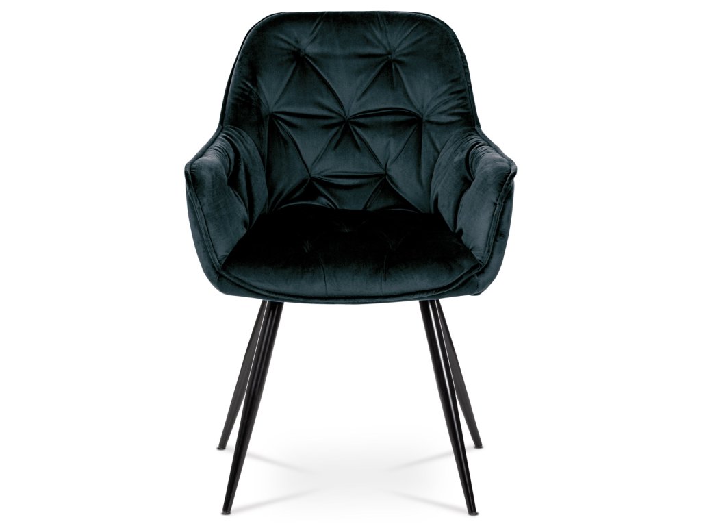Skořepina sedáku a opěráku má potah z kvalitní látky v trendy černém sametu, který povyšuje tuto židli na vyšší estetickou úroveň.