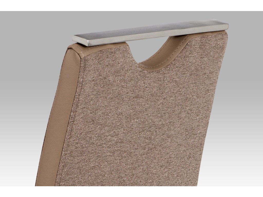 Moderní jídelní židle je očalouněna látkou v kombinaci s koženkou v barvě cappuccino.