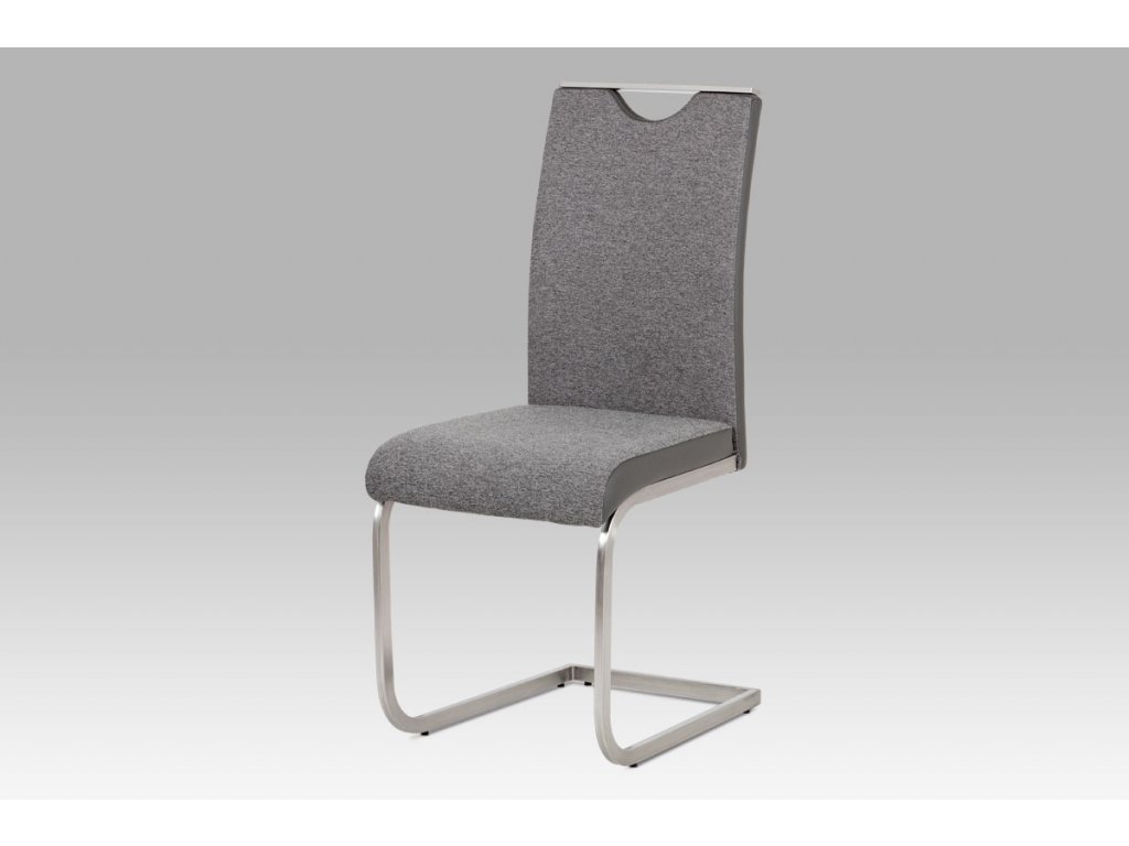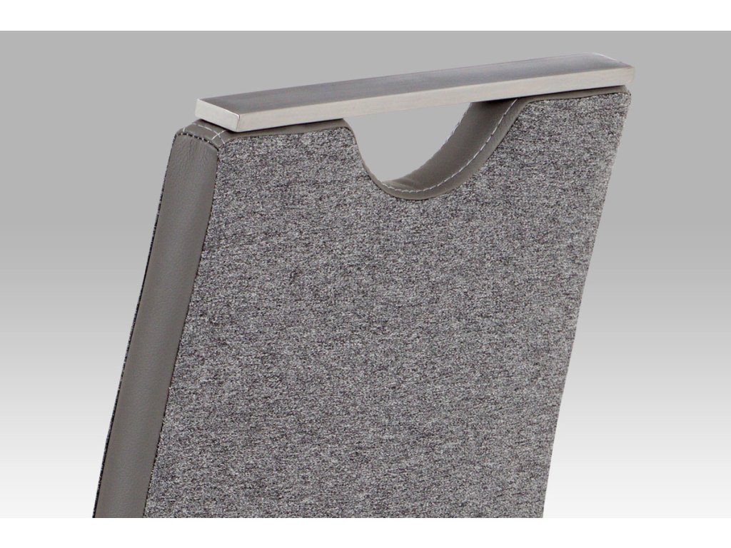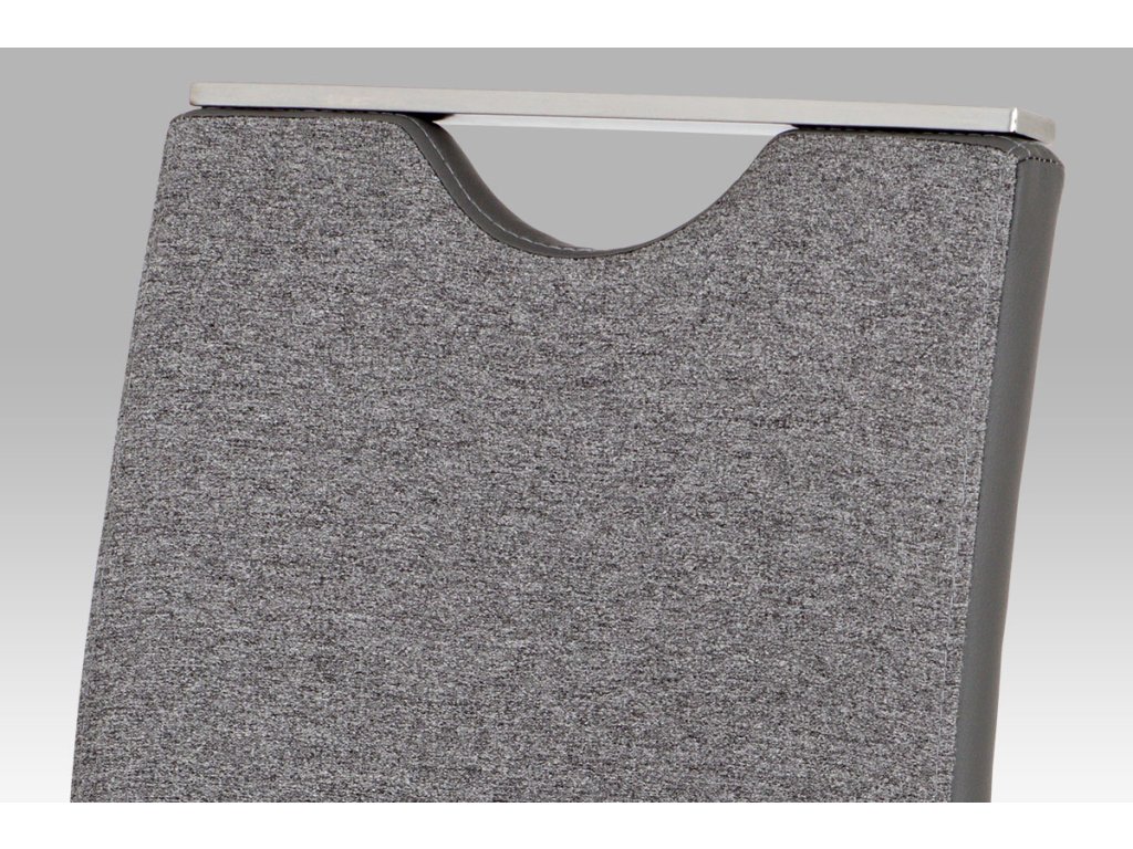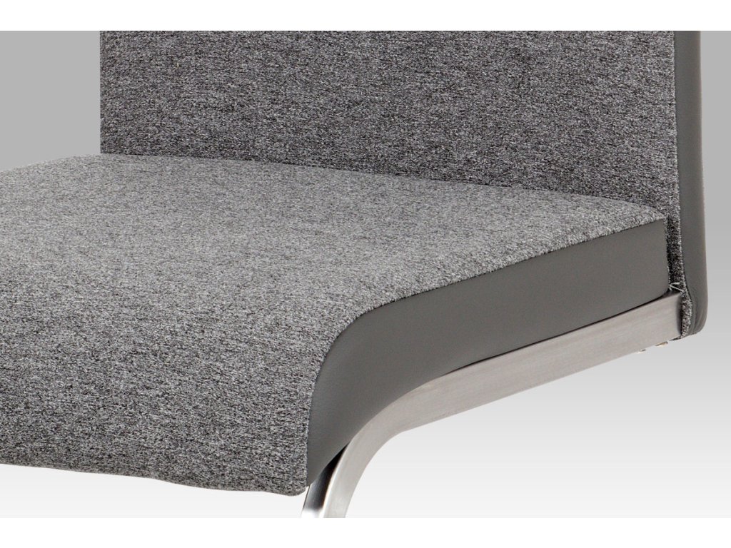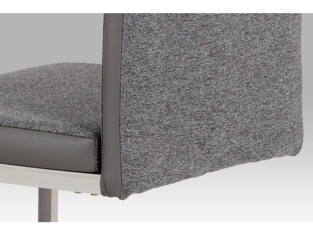 Moderní jídelní židle je očalouněna šedou látkou v kombinaci s šedou koženkou.