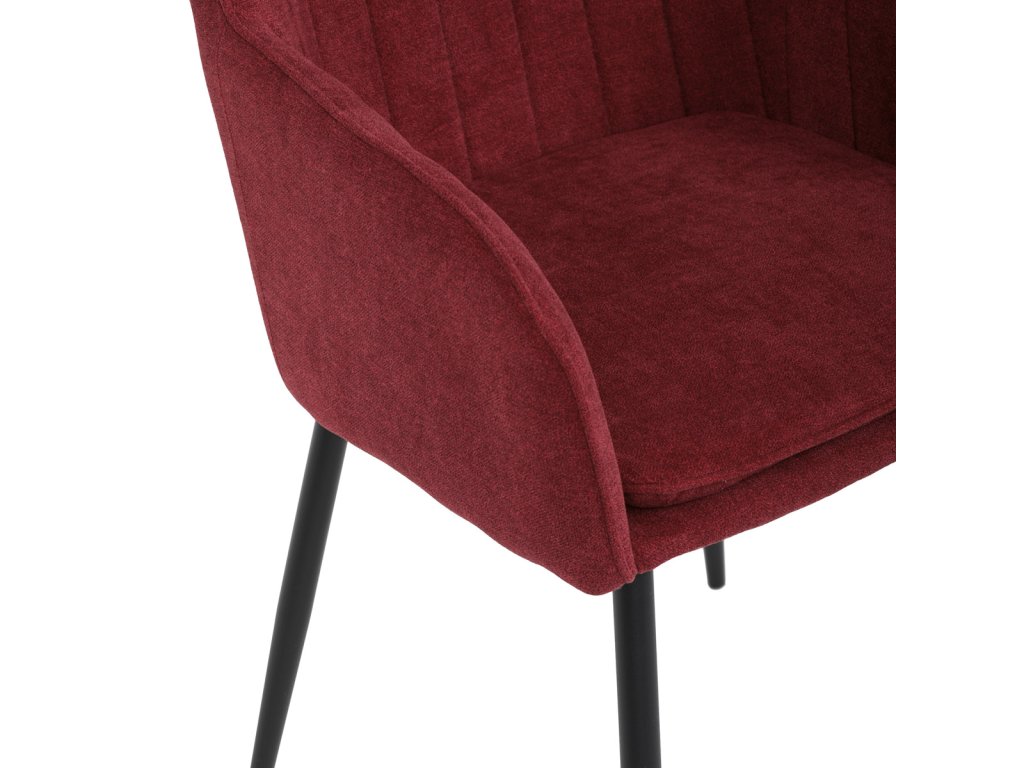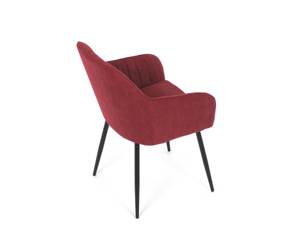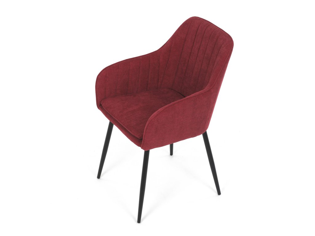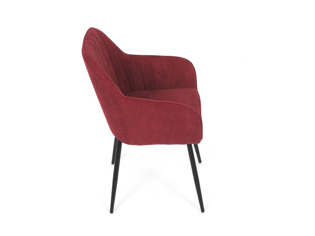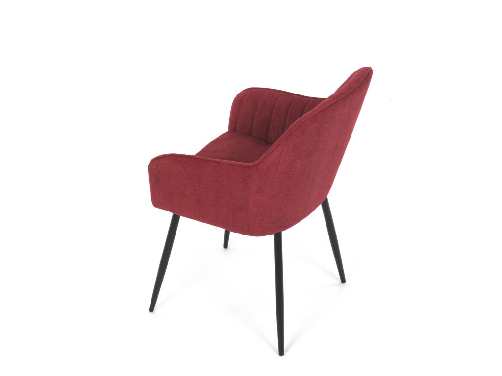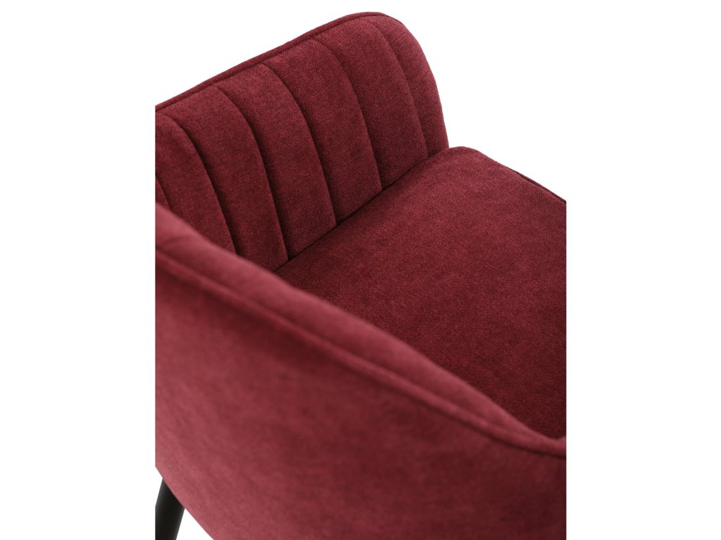 Je čalouněná hladkou červenou látkou, která je nejen trvanlivá, ale také příjemná na dotek.