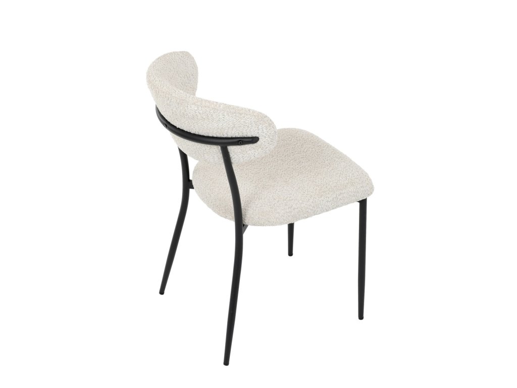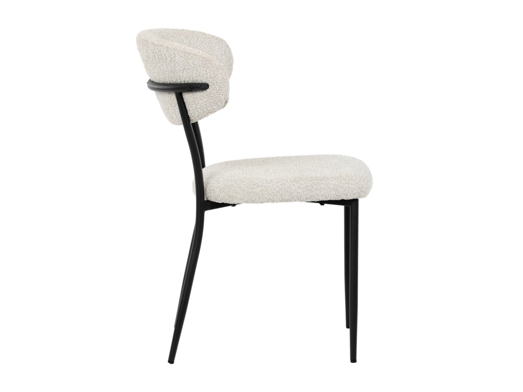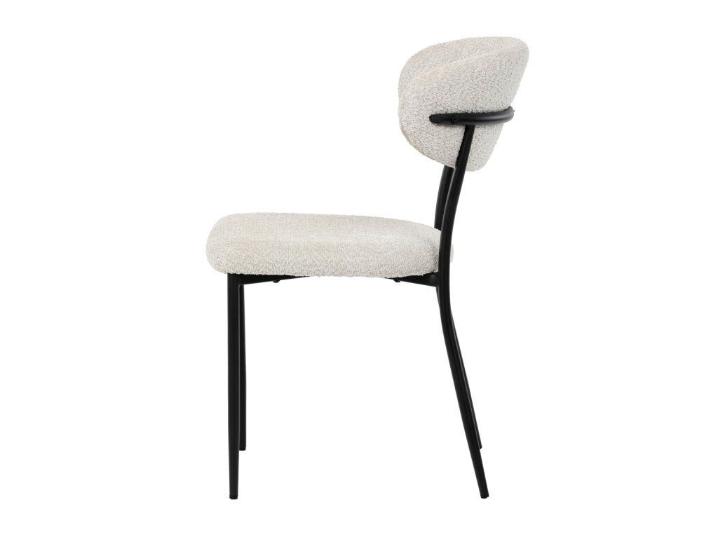 Čalounění z příjemné látky Bouclé dodává židli moderní a zároveň útulný vzhled, který skvěle zapadne do industriálních interiérů.