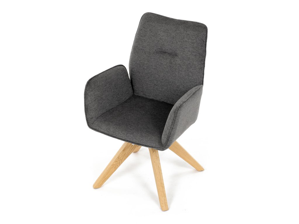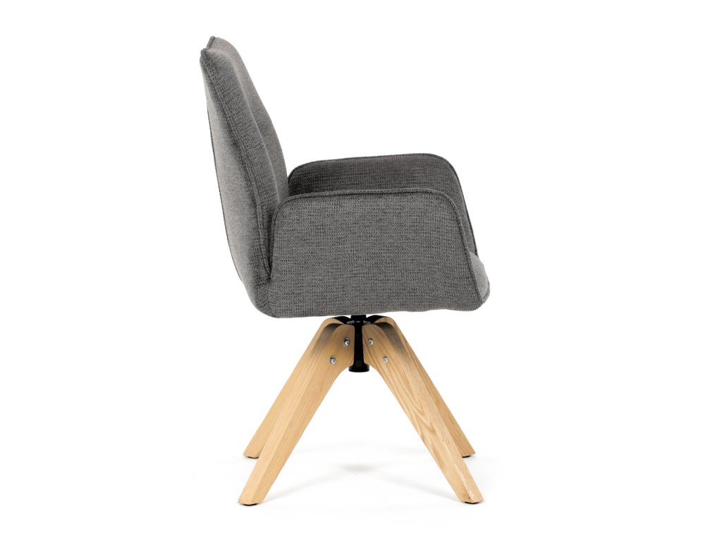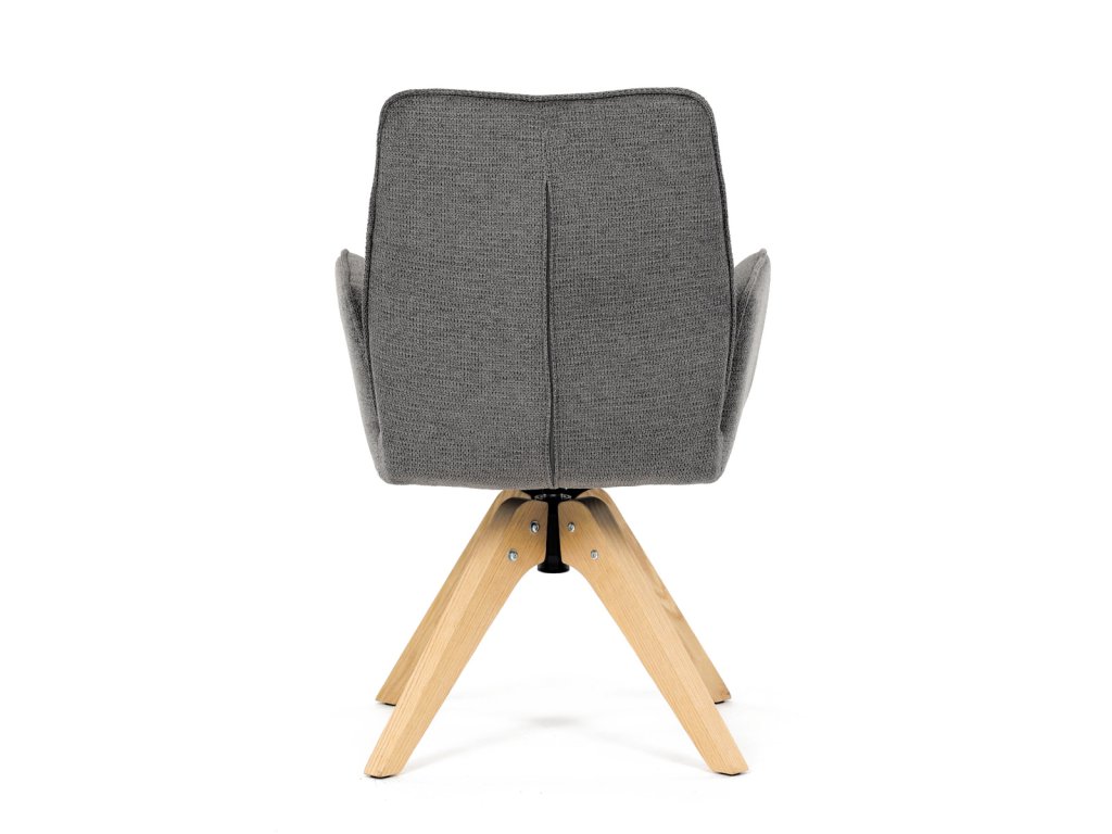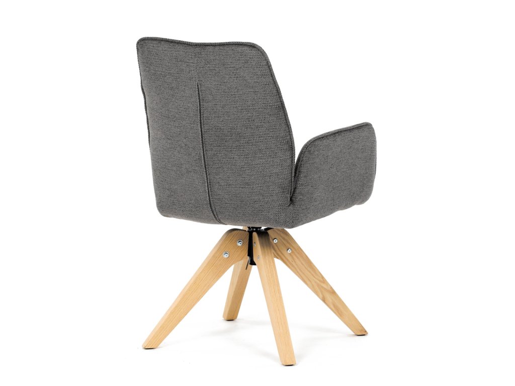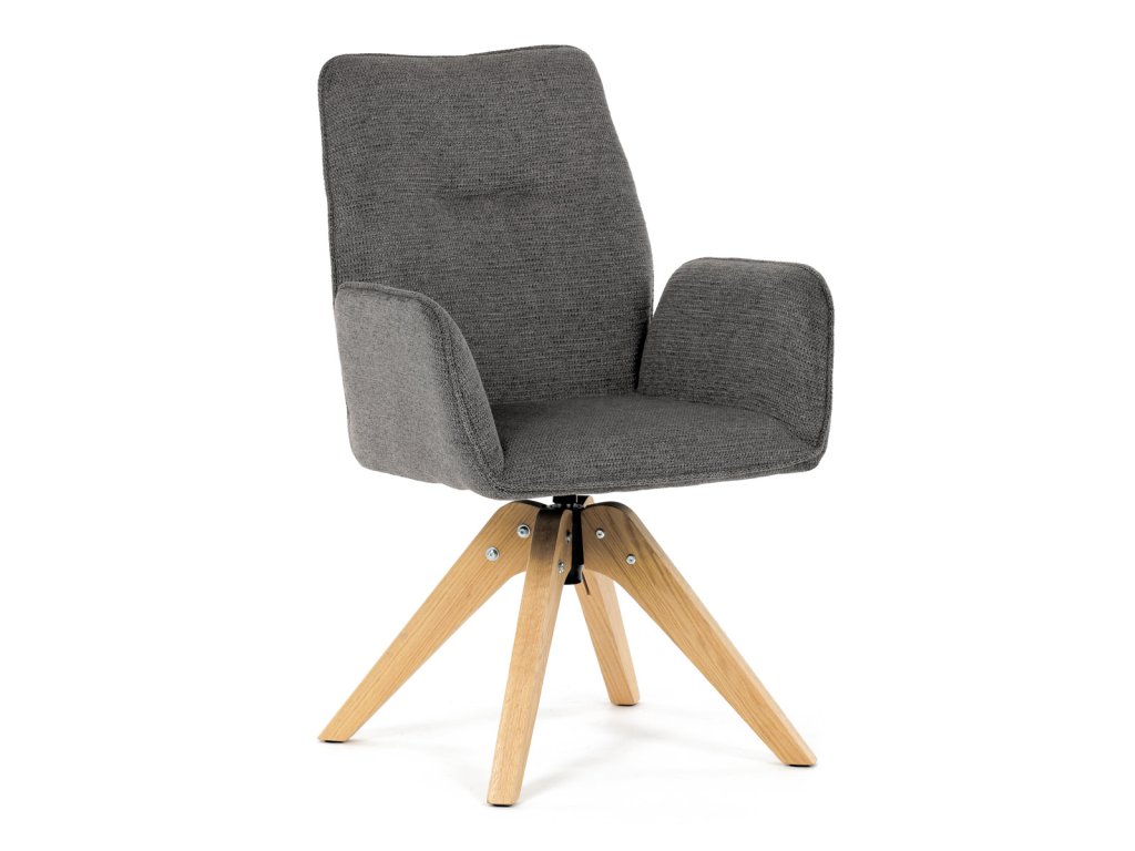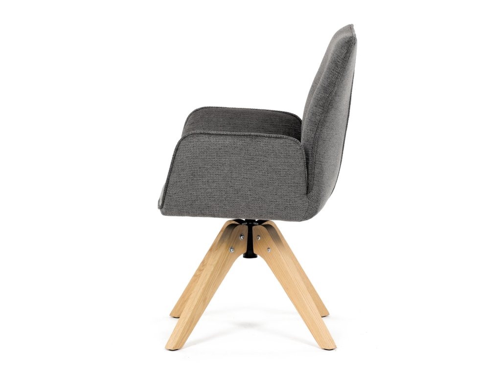 Masivní dřevěné nohy v přírodní barvě dodávají židli stabilitu a odolnost, zatímco otočný mechanismus s funkcí 360° přináší uživatelský komfort.
