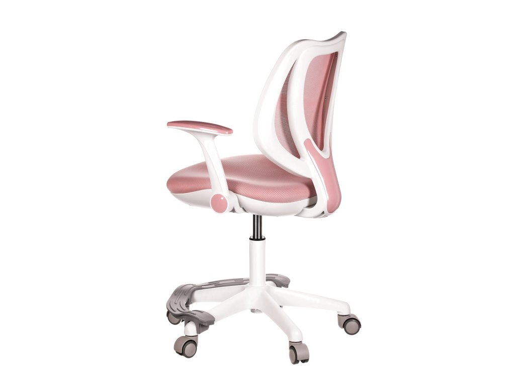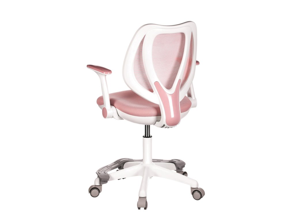 Židle má pevný opěrák potažený prodyšným síťovaným materiálem.