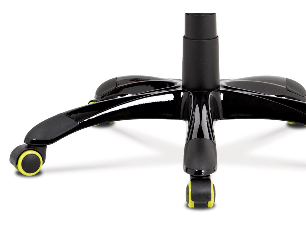 Dokonalý design židle podtrhuje mohutný kříž z tvrzeného plastu černé barvy ve vysokém lesku s matnými protiskluzovými prvky a pogumovanými kolečky světle zelené barvy vhodnými na tvrdé typy podlah.