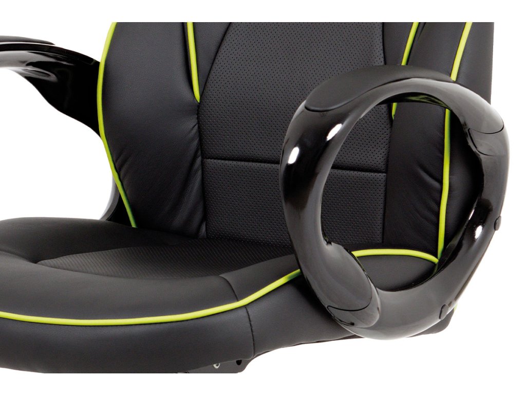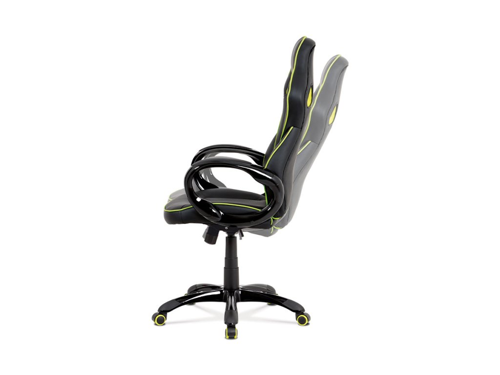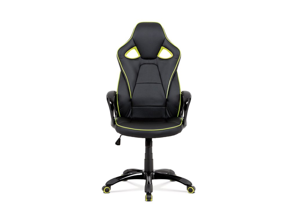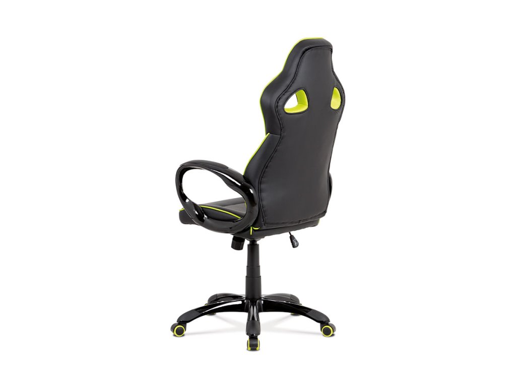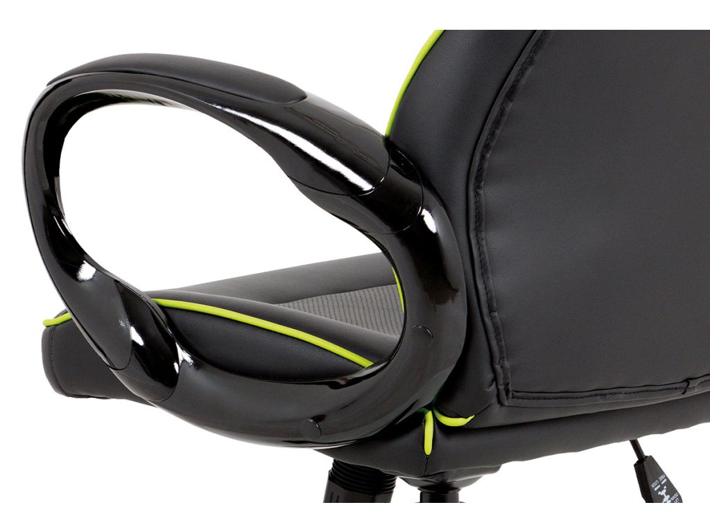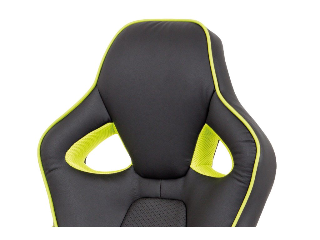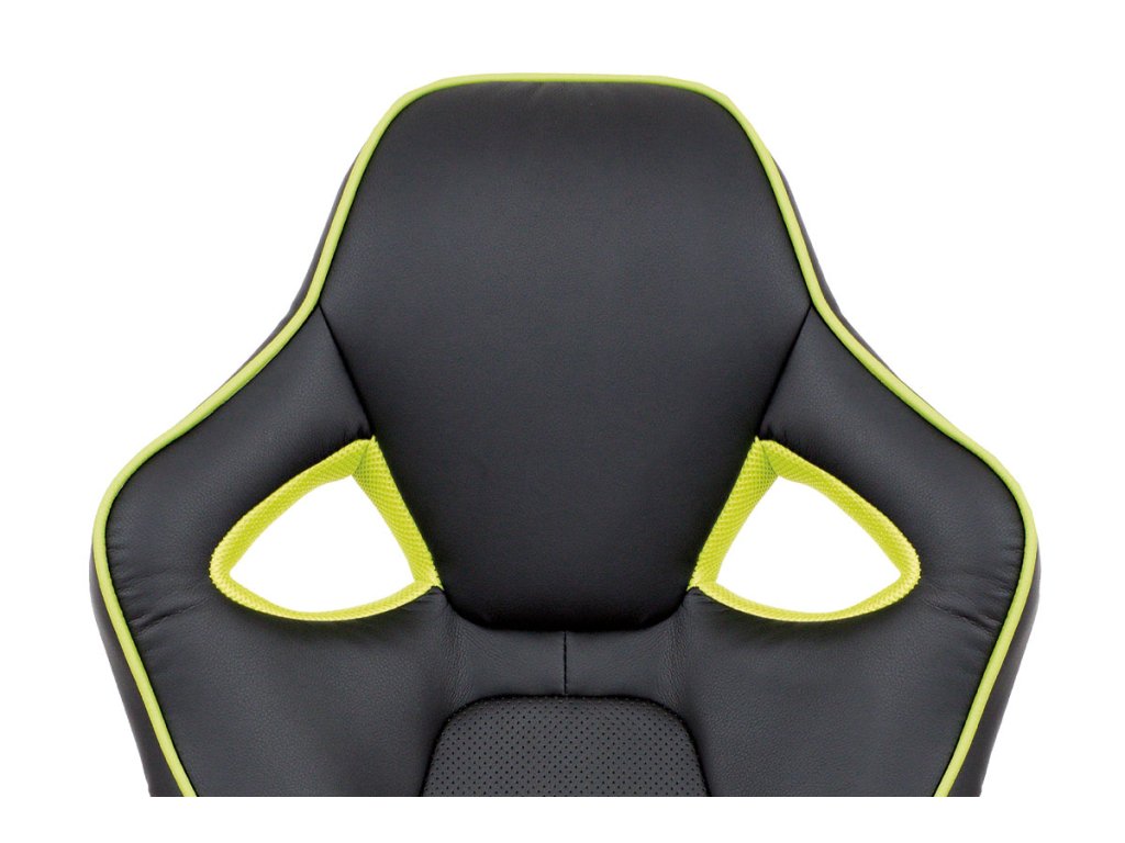 Opěrák i sedák jsou čalouněné černou ekokůží se stylovým prošitím a zdobené limetkovou paspulí z ekokůže. Střed sedáku a opěráku je navíc čalouněn perforovanou ekokůží, která dodá židli dokonalý herní design.