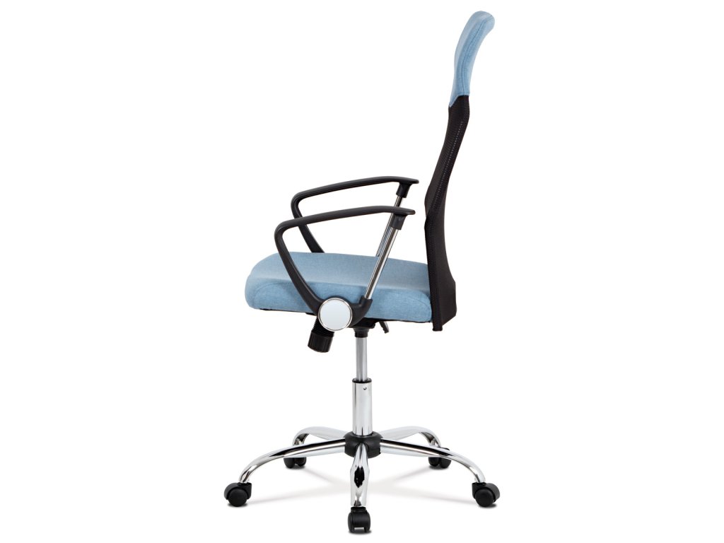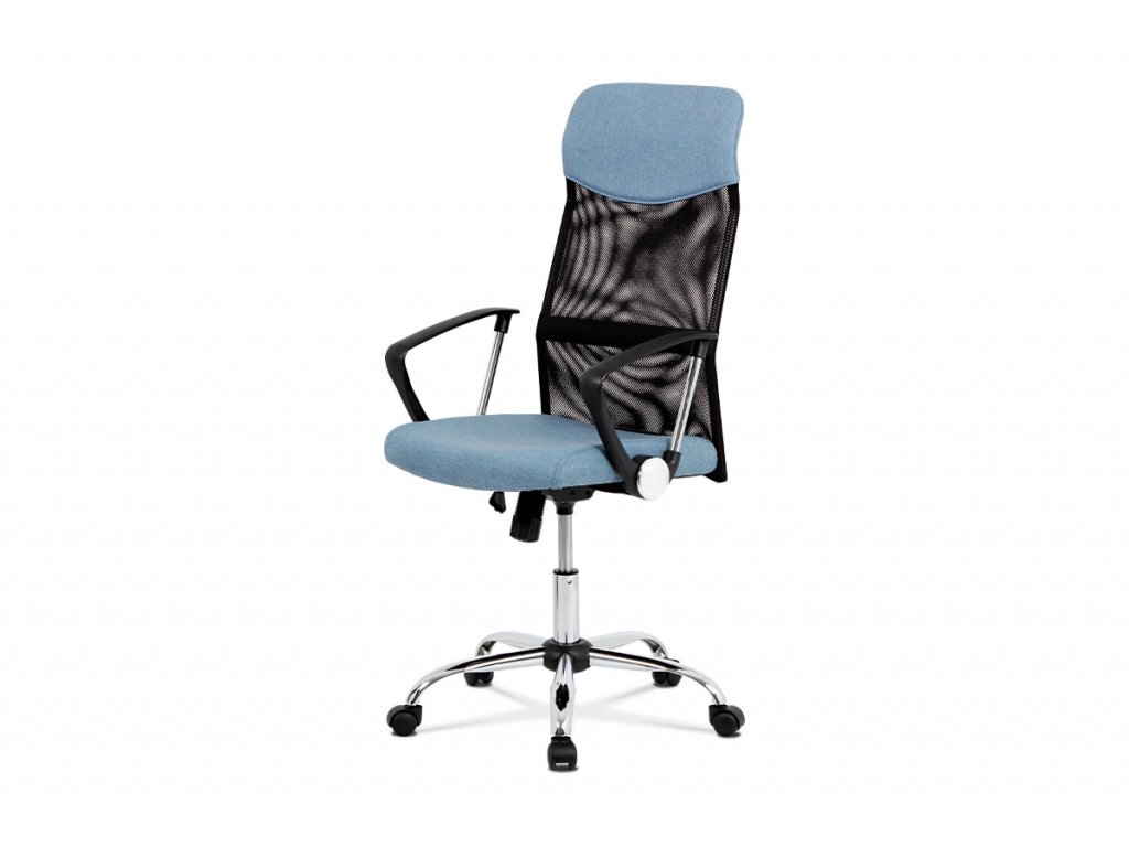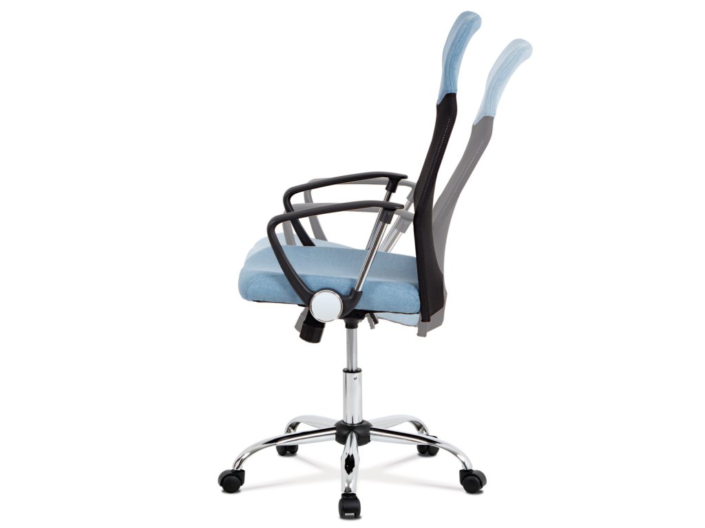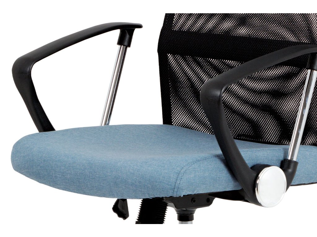 Kancelářská židle je očalouněna modrou látkou v kombinaci s černou látkou MESH.