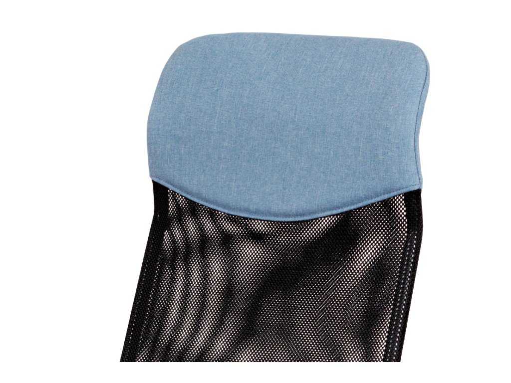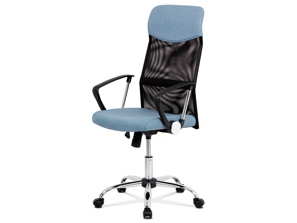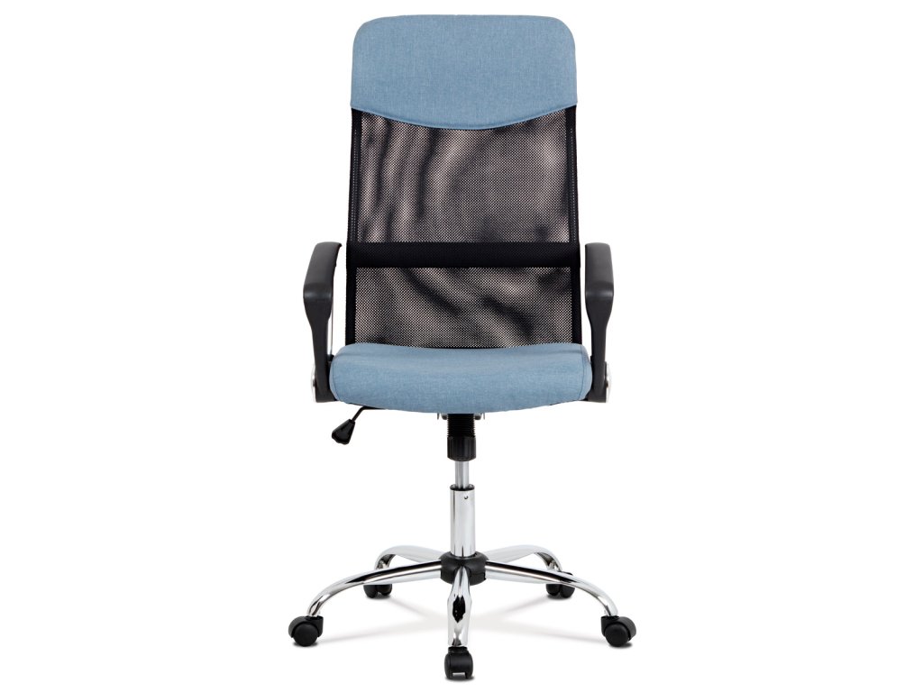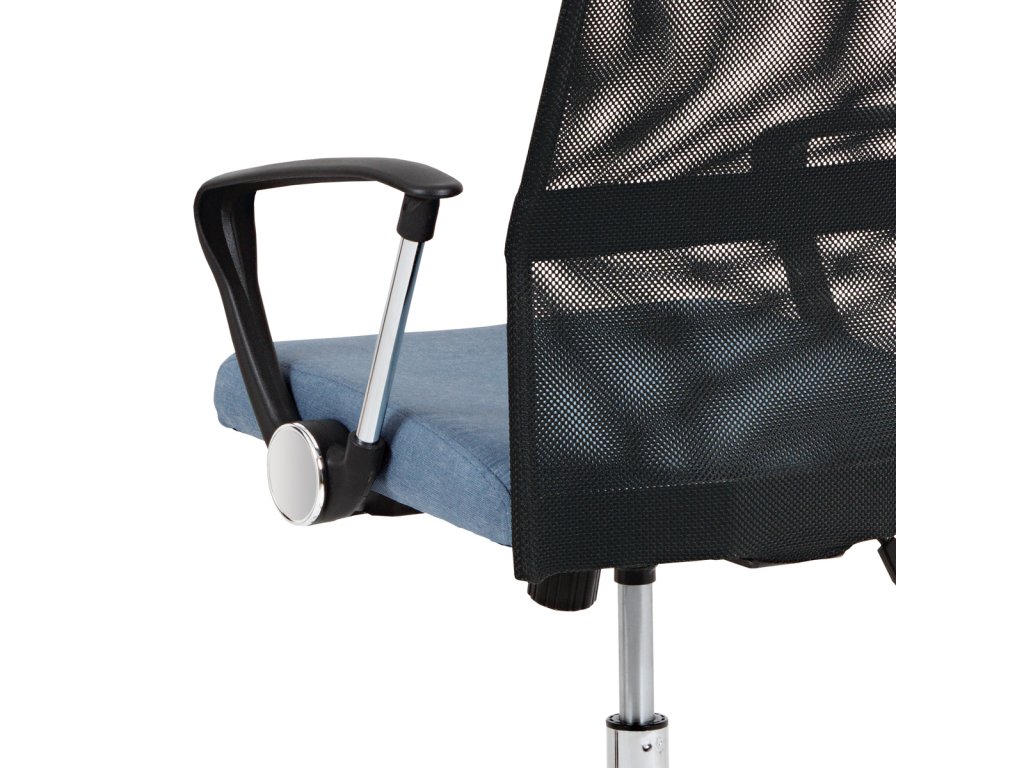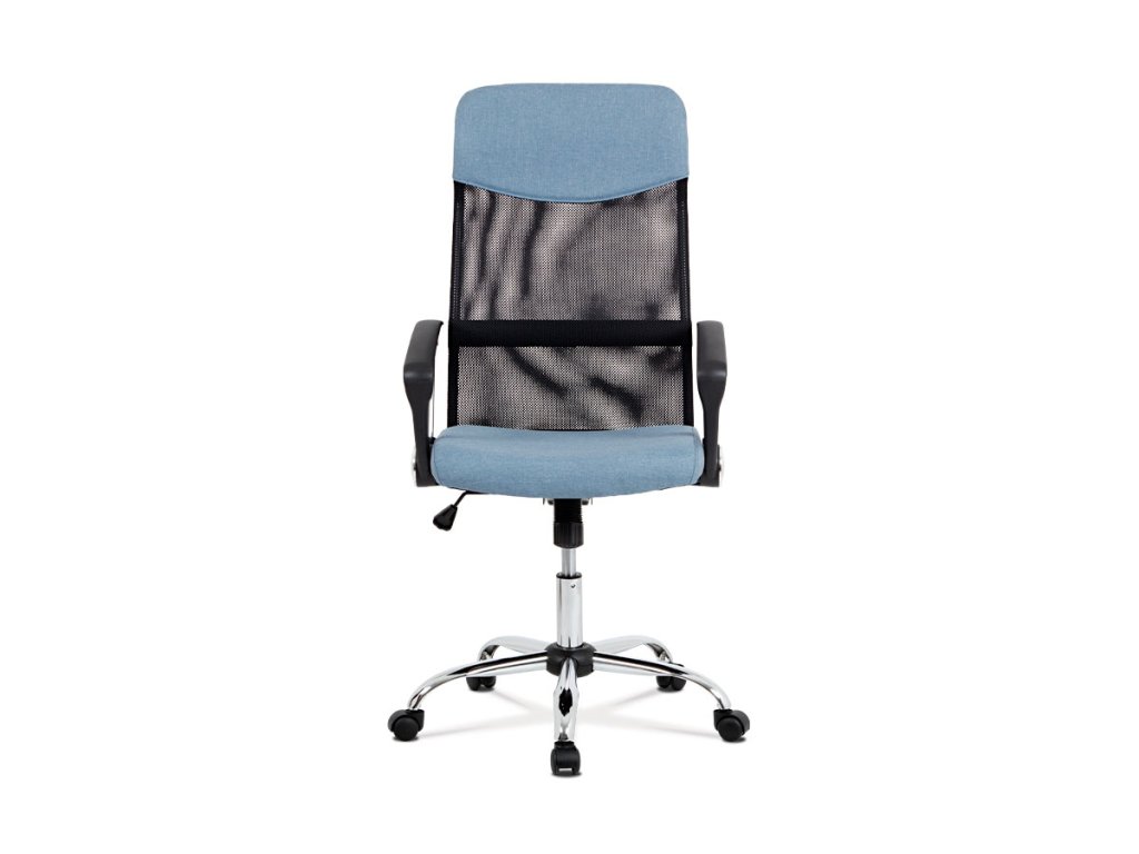 Kancelářská židle je očalouněna modrou látkou v kombinaci s černou látkou MESH.
