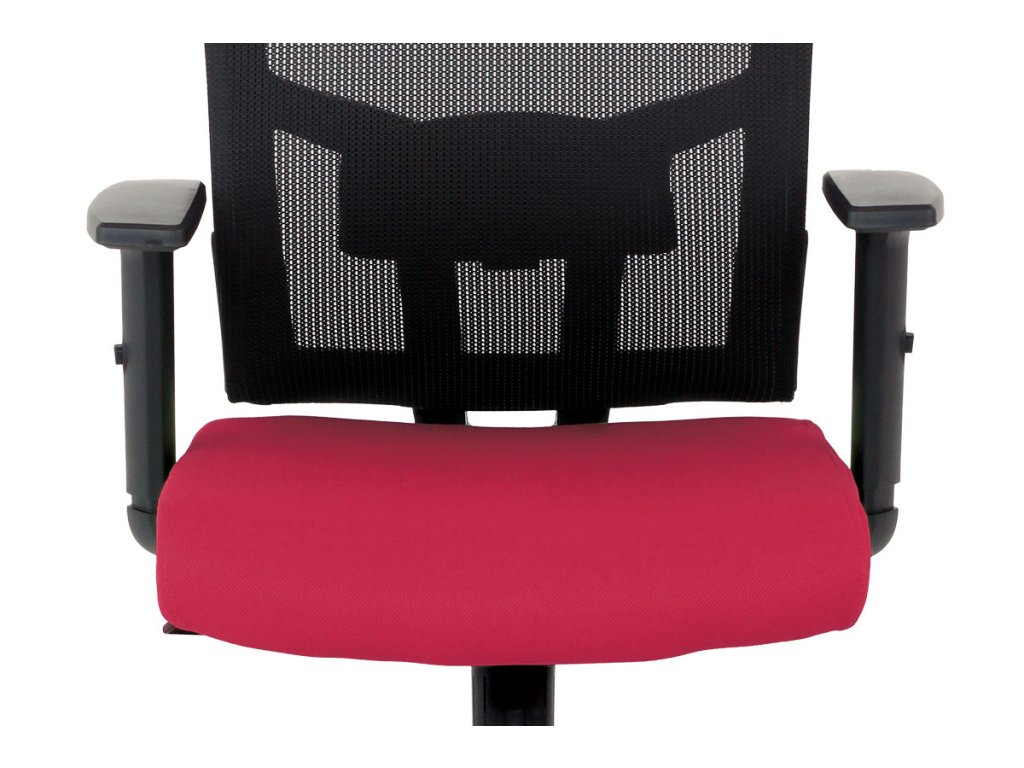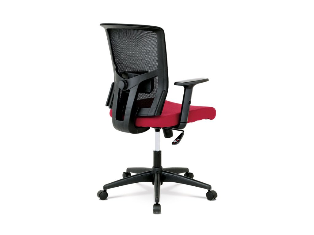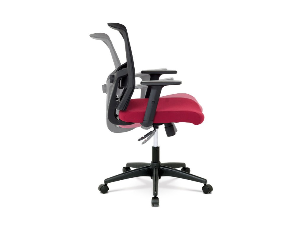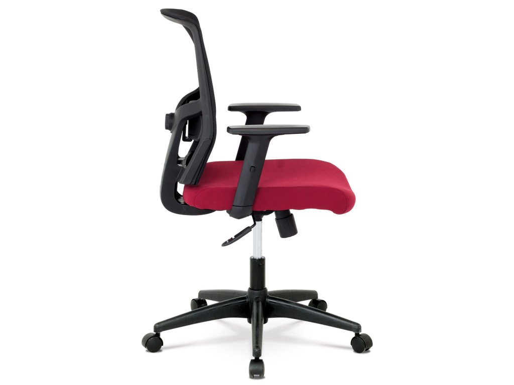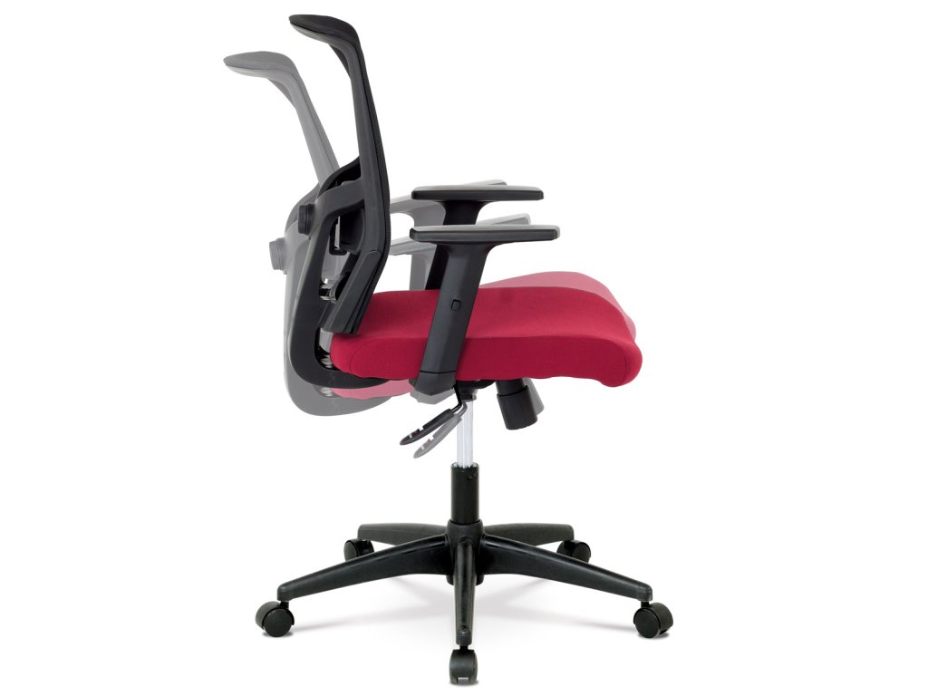 Opěrák je potažen síťovinou a sedák je očalouněn látkou vínové barvy.
