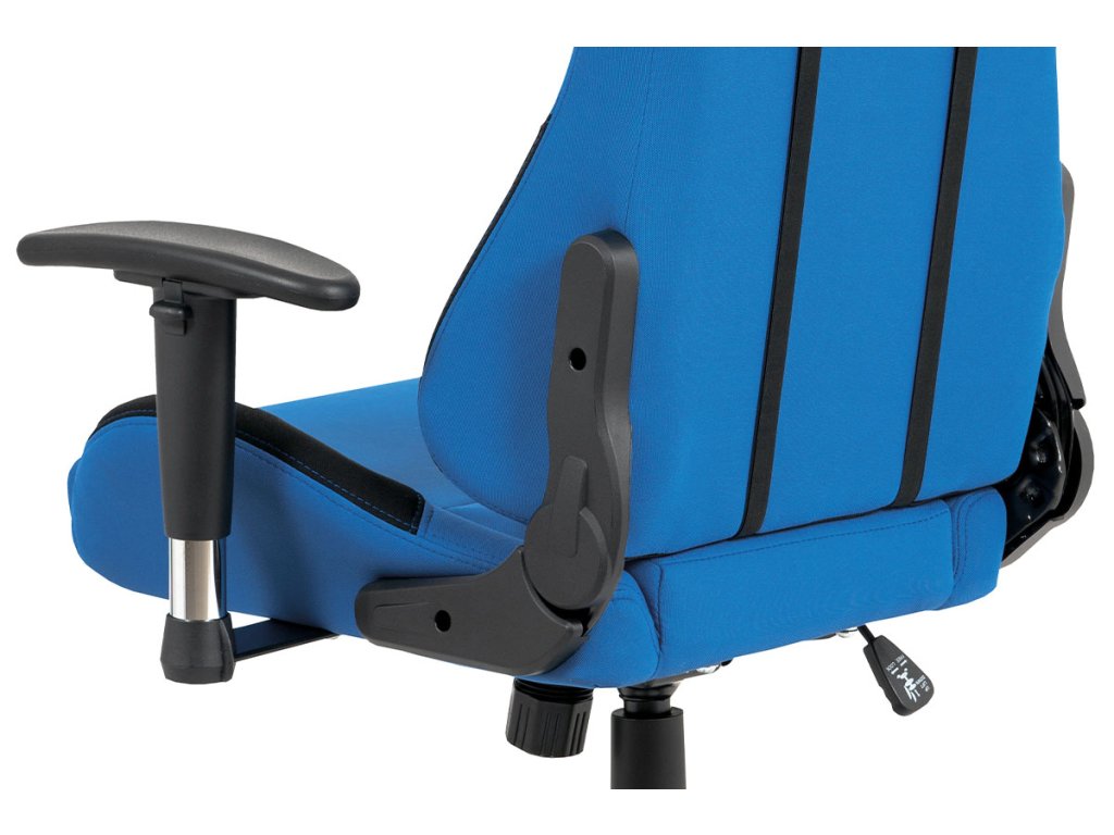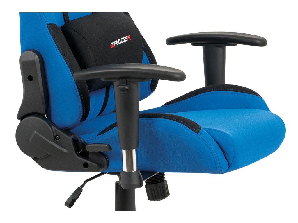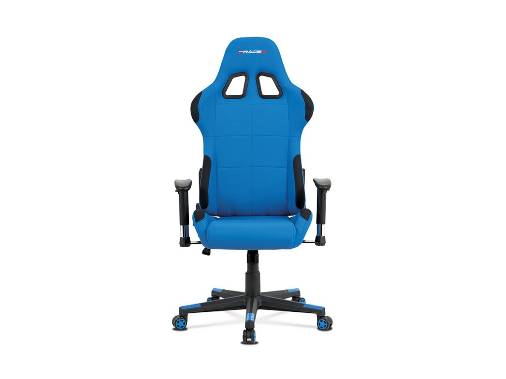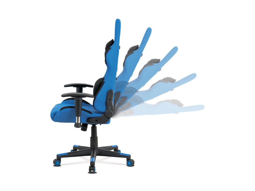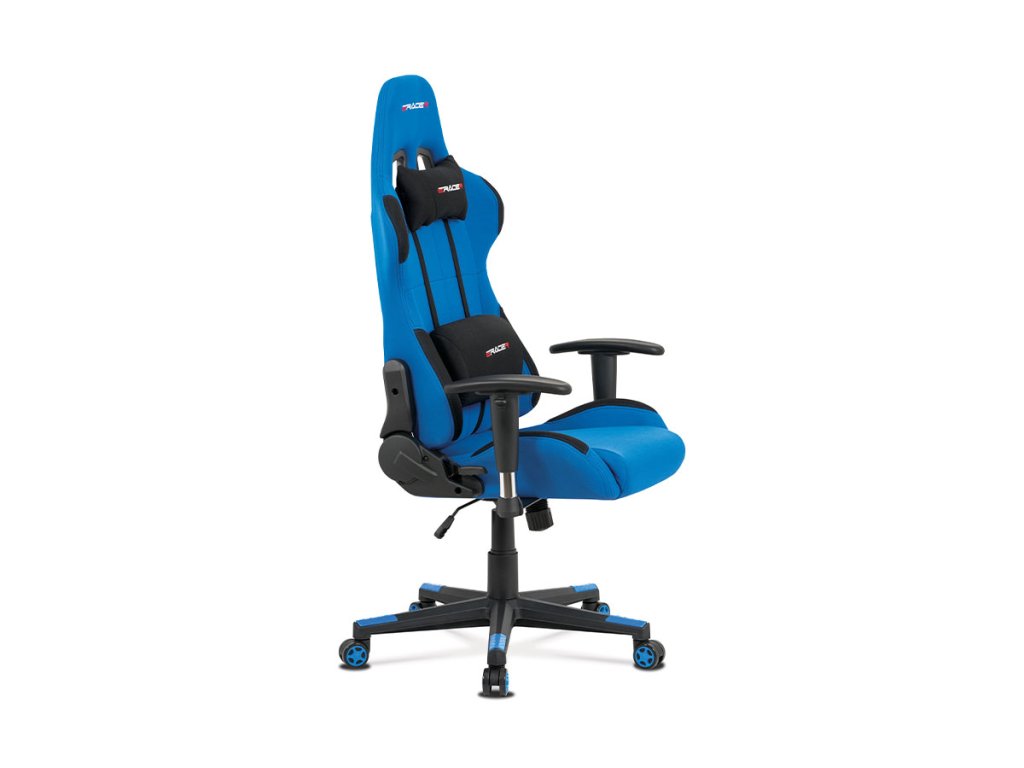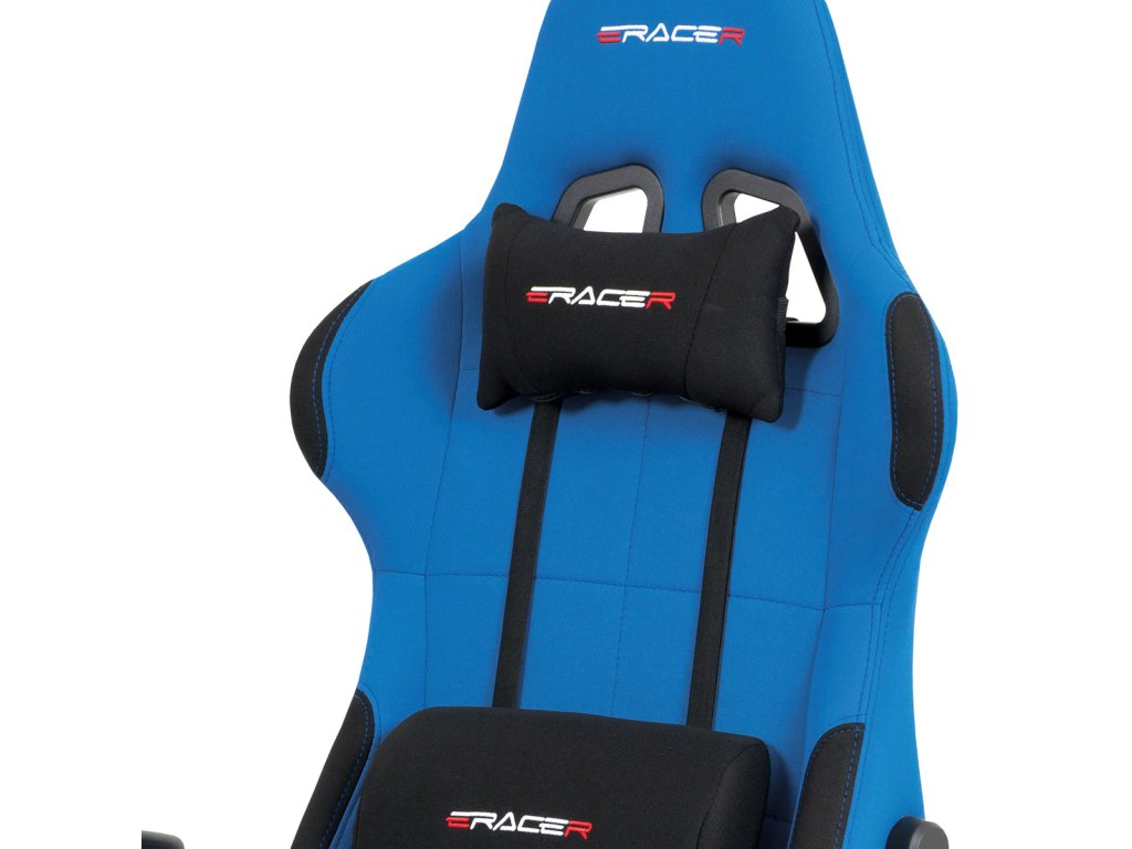 Kancelářská židle ve sportovním designu v modré látce s černými detaily se stane nezbytným doplňkem každého závodníka.