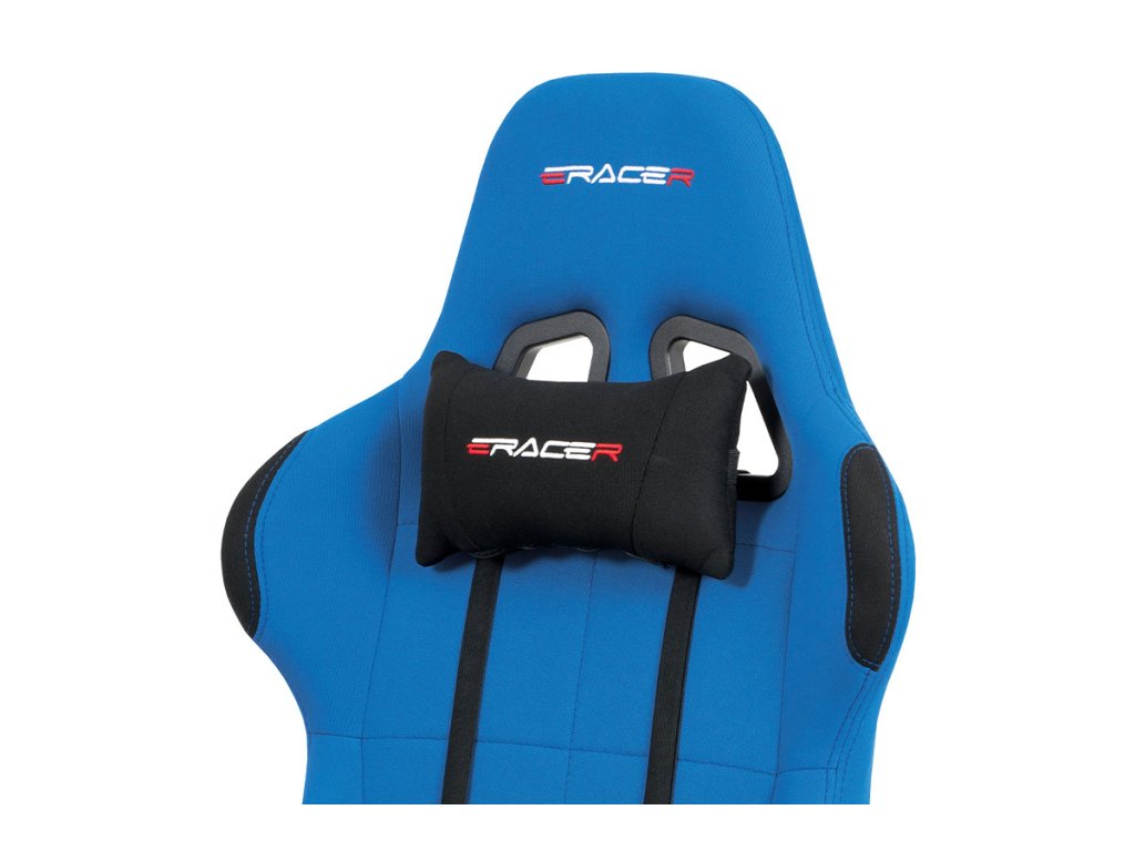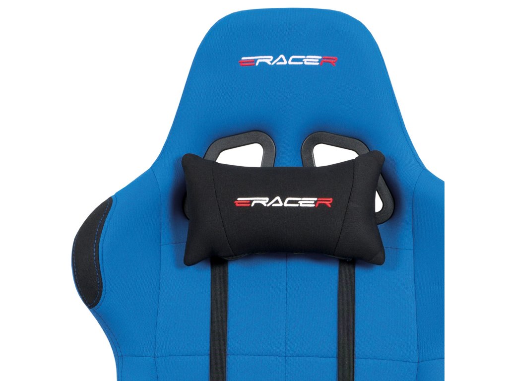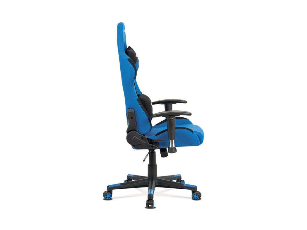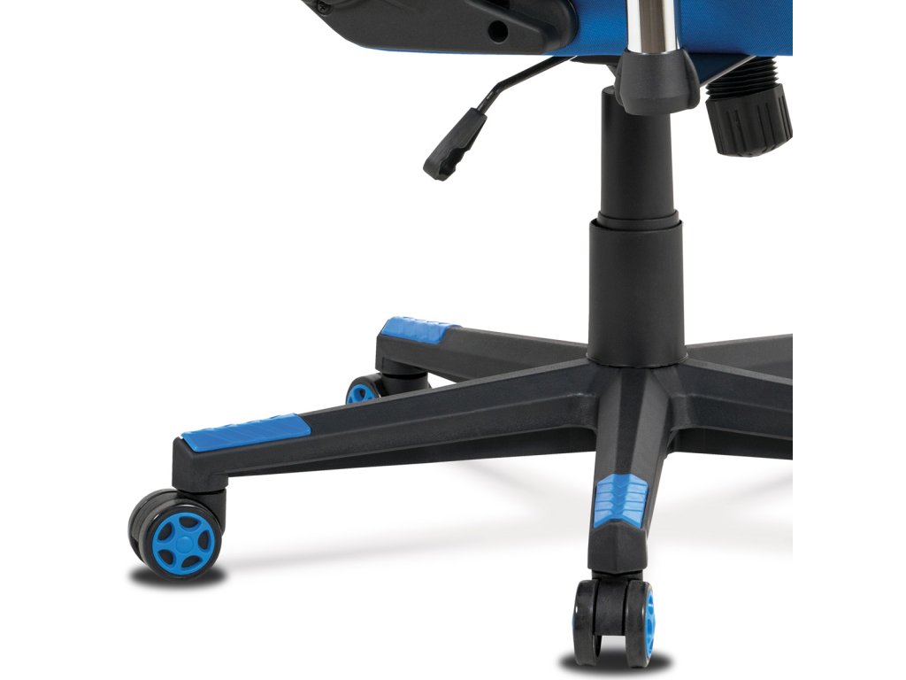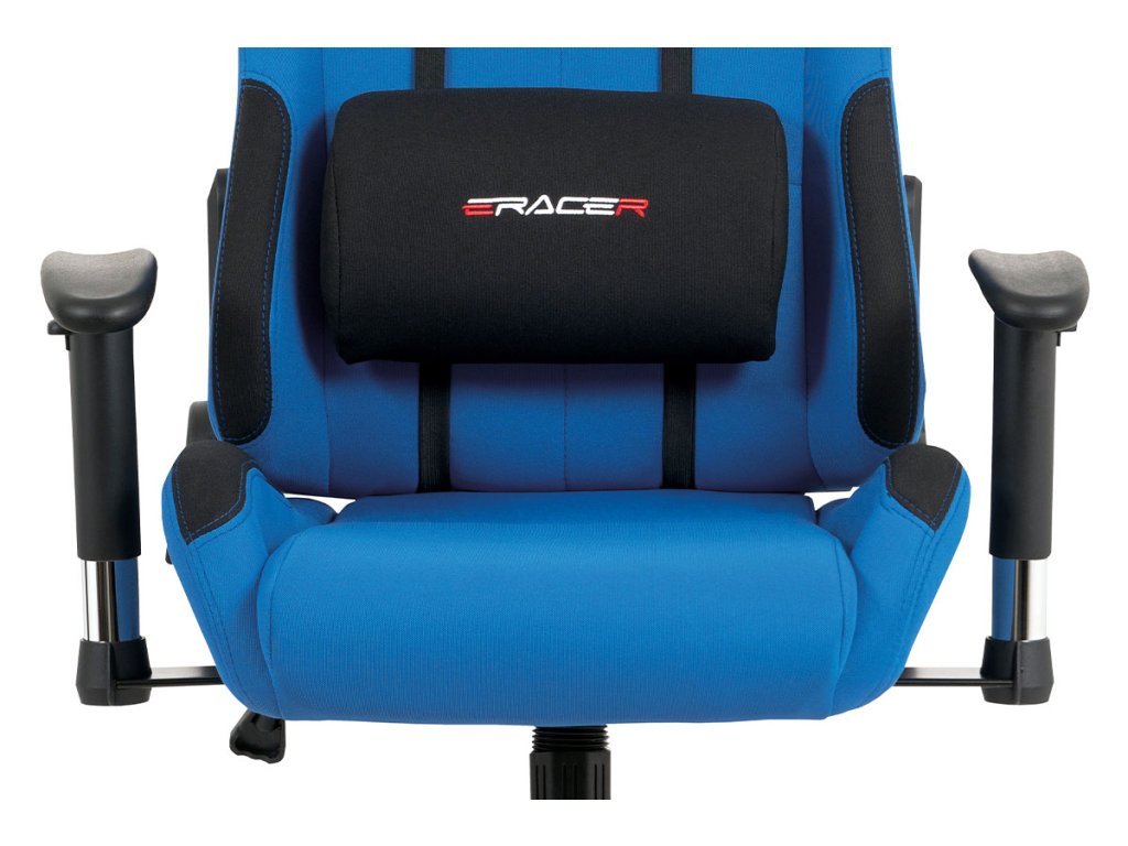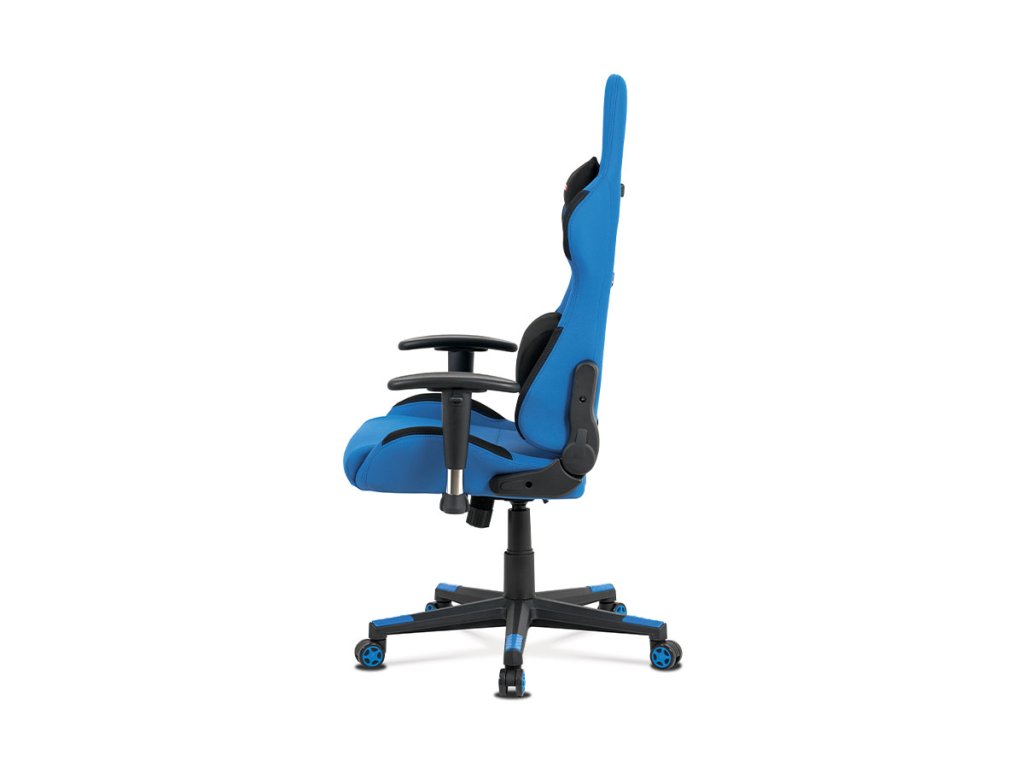 Kancelářská židle ve sportovním designu v modré látce s černými detaily se stane nezbytným doplňkem každého závodníka.