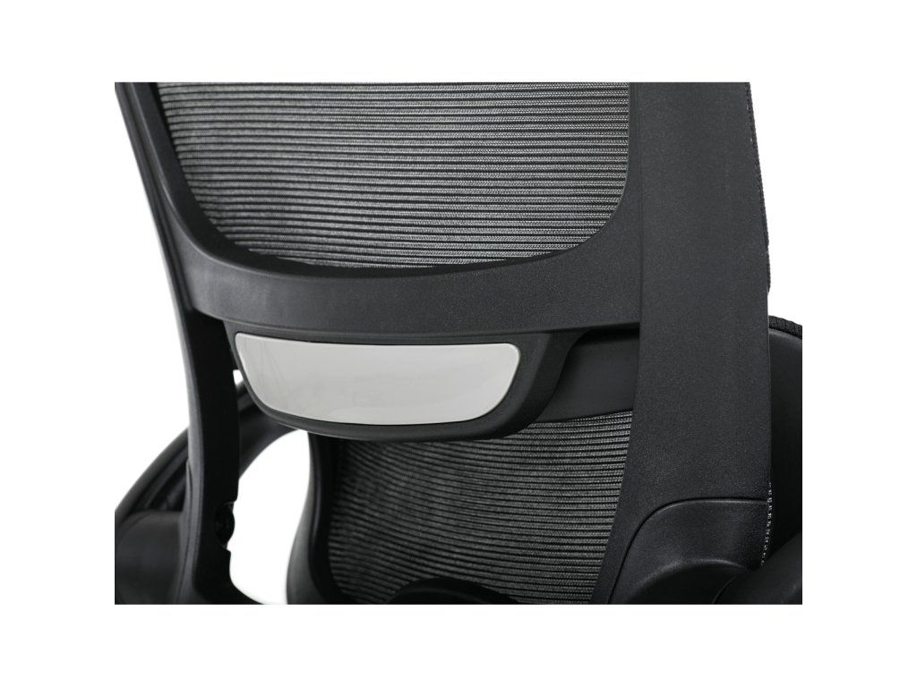 Pro ještě větší pohodlí má židle integrovanou opěrku hlavy a nastavitelný přítlak bederní opěrky, což výrazně zlepšuje ergonomii.