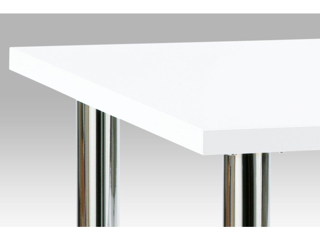 Deska je v provedení vysoký lesk bílé barvy o tloušťce 3 cm, nohy jsou chromové o průměru 6 cm.