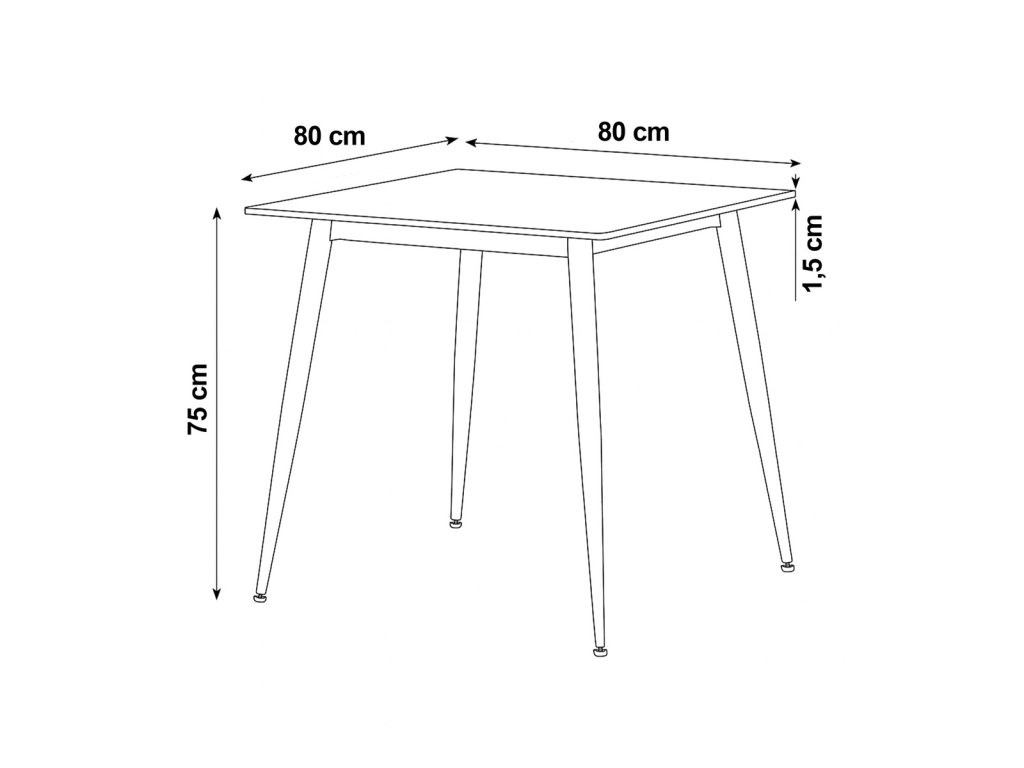 Čtvercový tvar stolu je ideální pro menší jídelny či kuchyňské kouty, kde oceníte jeho kompaktní rozměry.