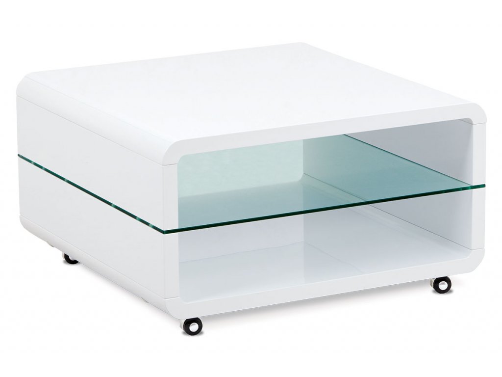 Konferenční stolek bílý se sklem a kolečky 80 x 80 x 45 cm