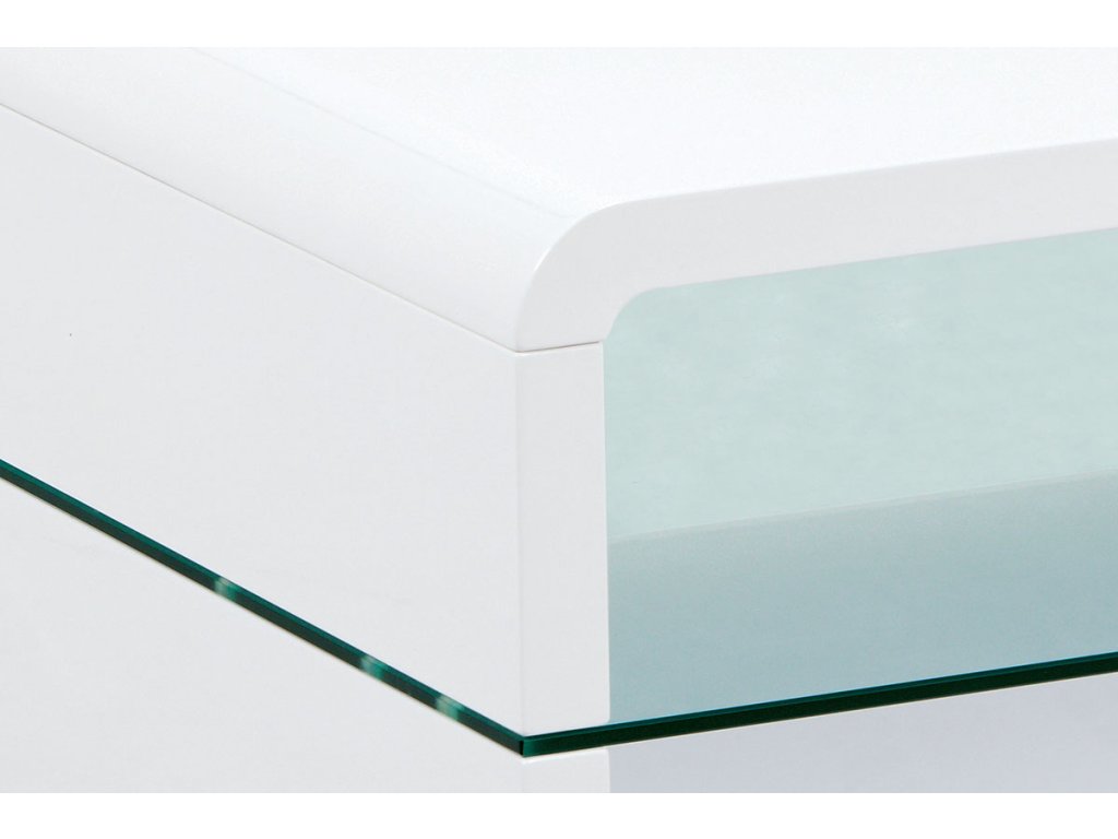 Moderní konferenční stolek ve vysokém lesku se skleněnou policí o tloušťce 8 mm působí velmi elegantním dojmem.
