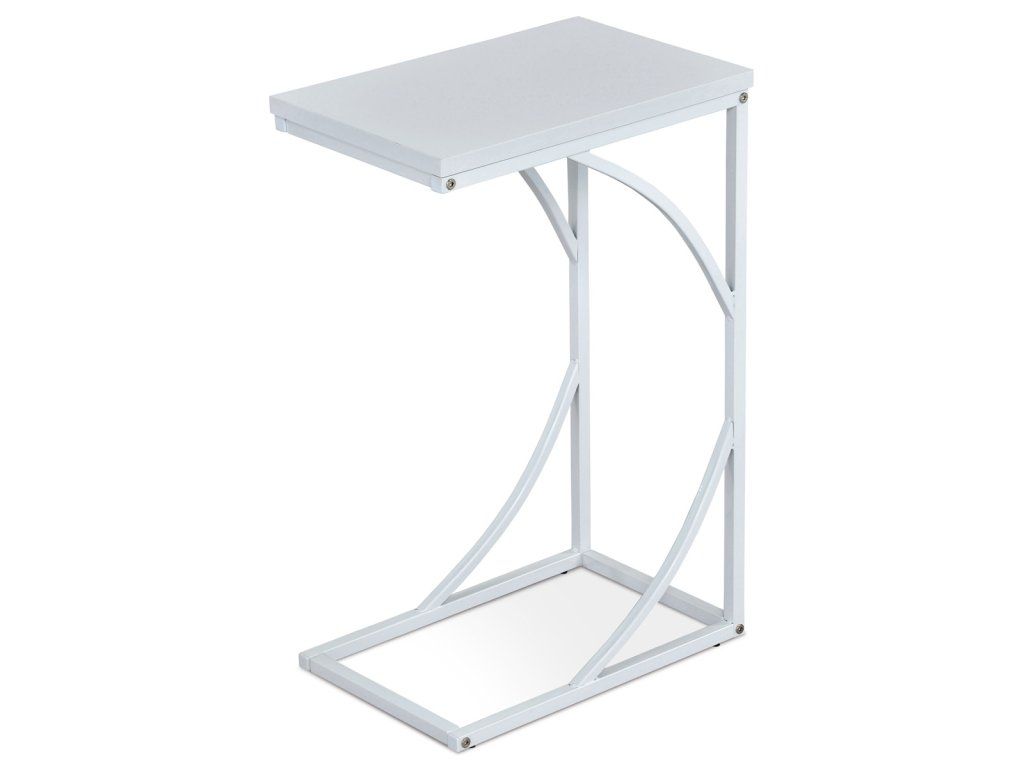Odkládací stolek ve skandinávském stylu a minimalistickém designu, obdélníkového tvaru. Horní deska je z bílého matného lamina tl. 1,8 cm, konstrukce do tvaru „U“ je z kovových profilů čtvercového průřezu 1,6 x 1,6 cm s výztužnými ve spodní i horní části, v bílém matném práškovém nástřiku.