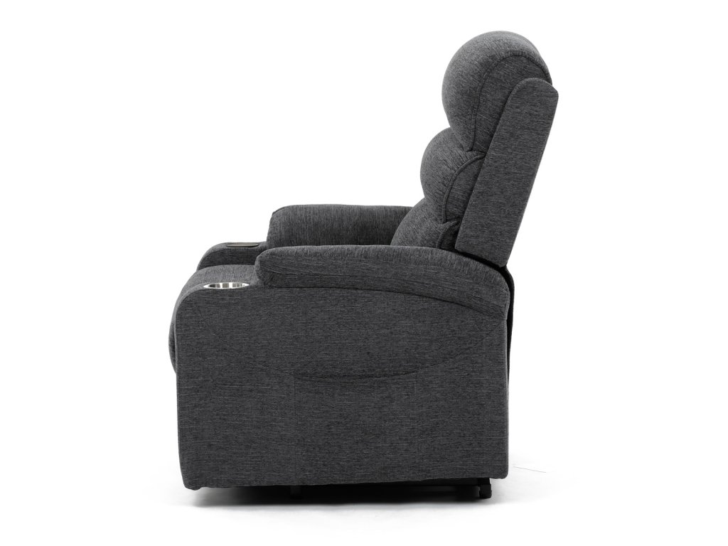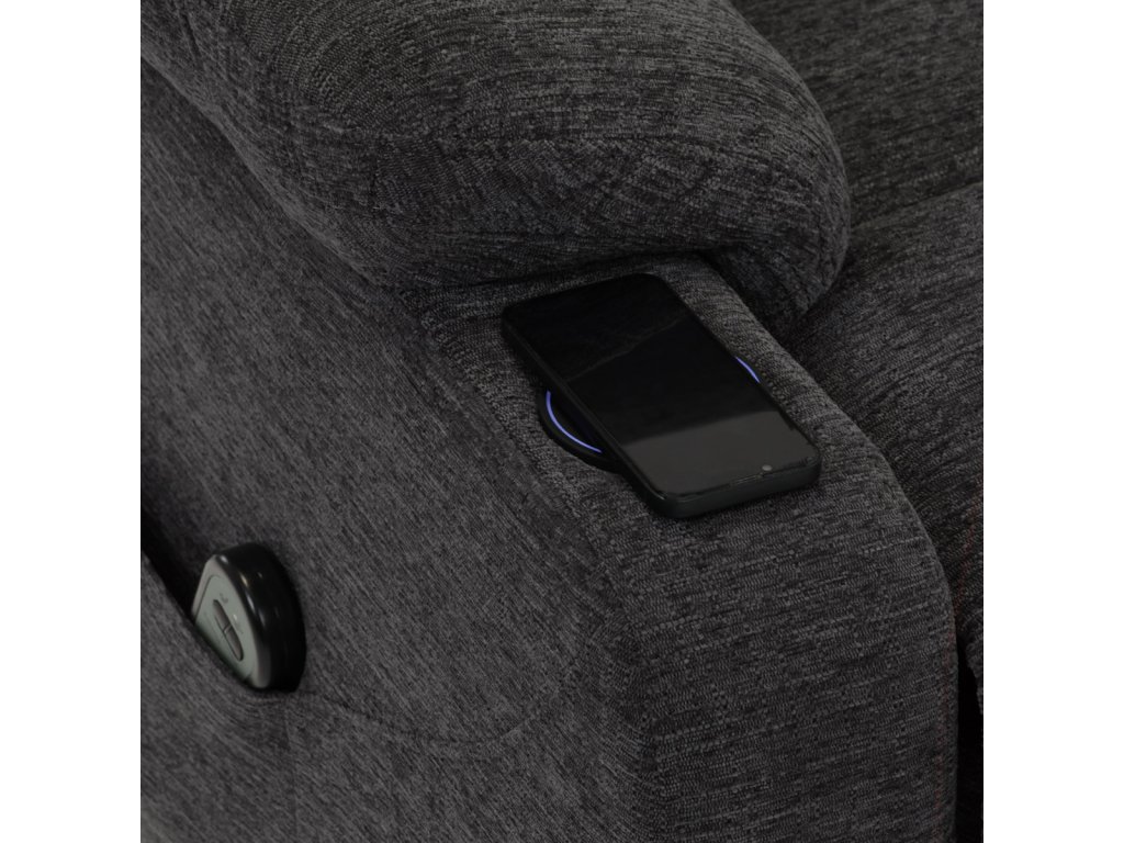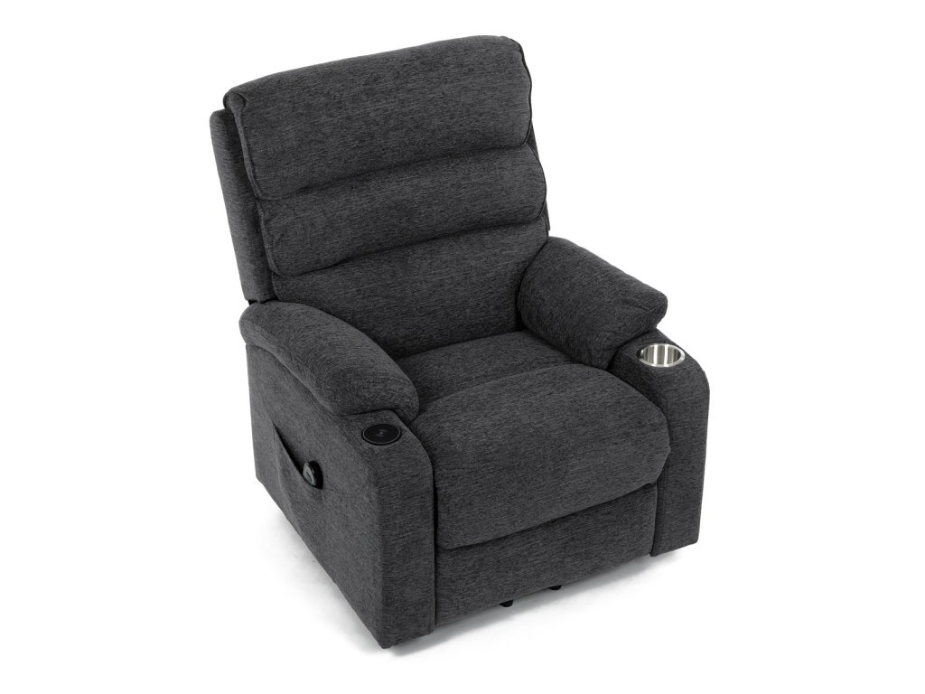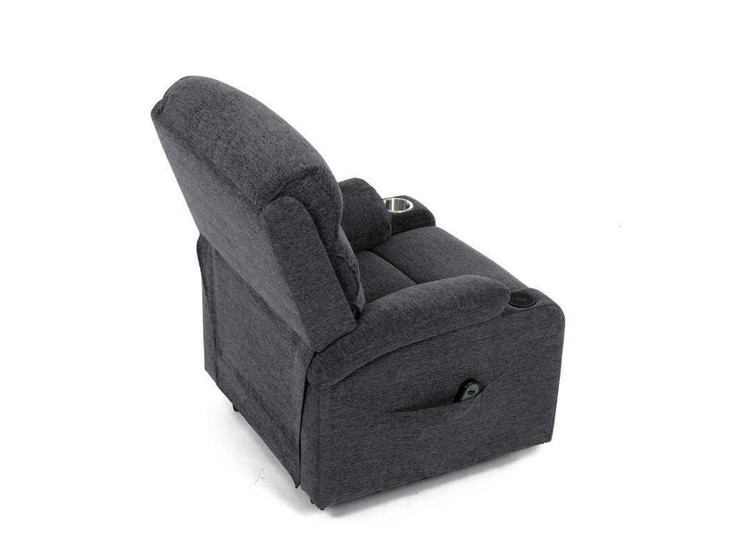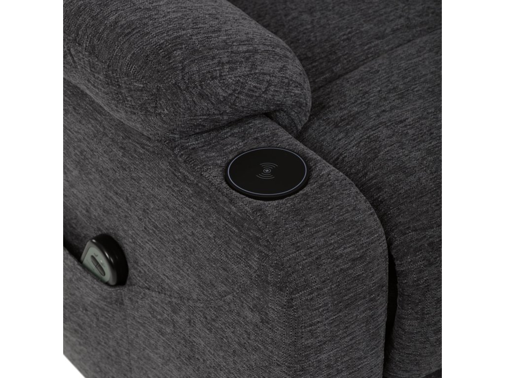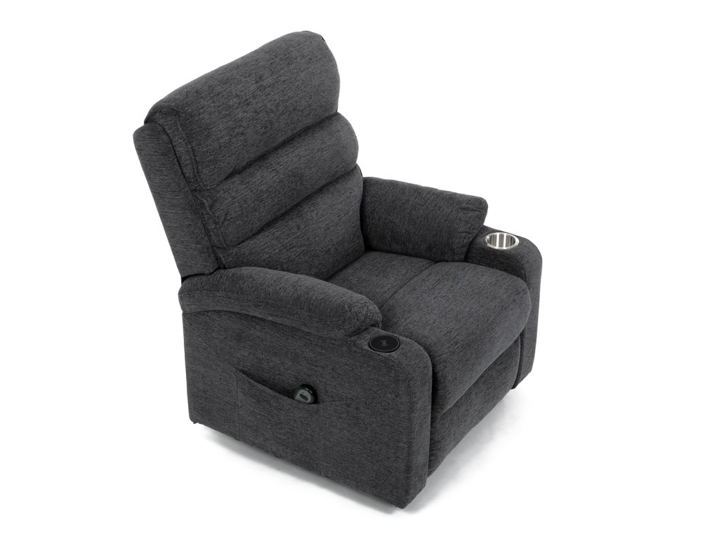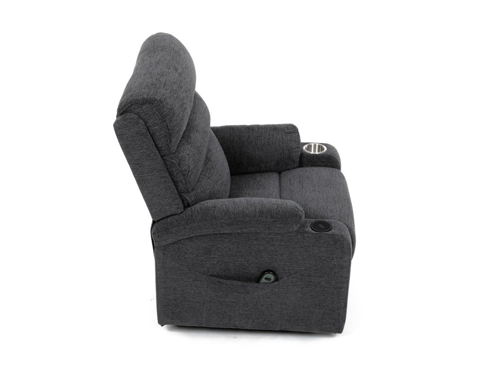 Elektrické polohovací křeslo šedá látka, bezdrátové nabíjení pro mobilní telefon
