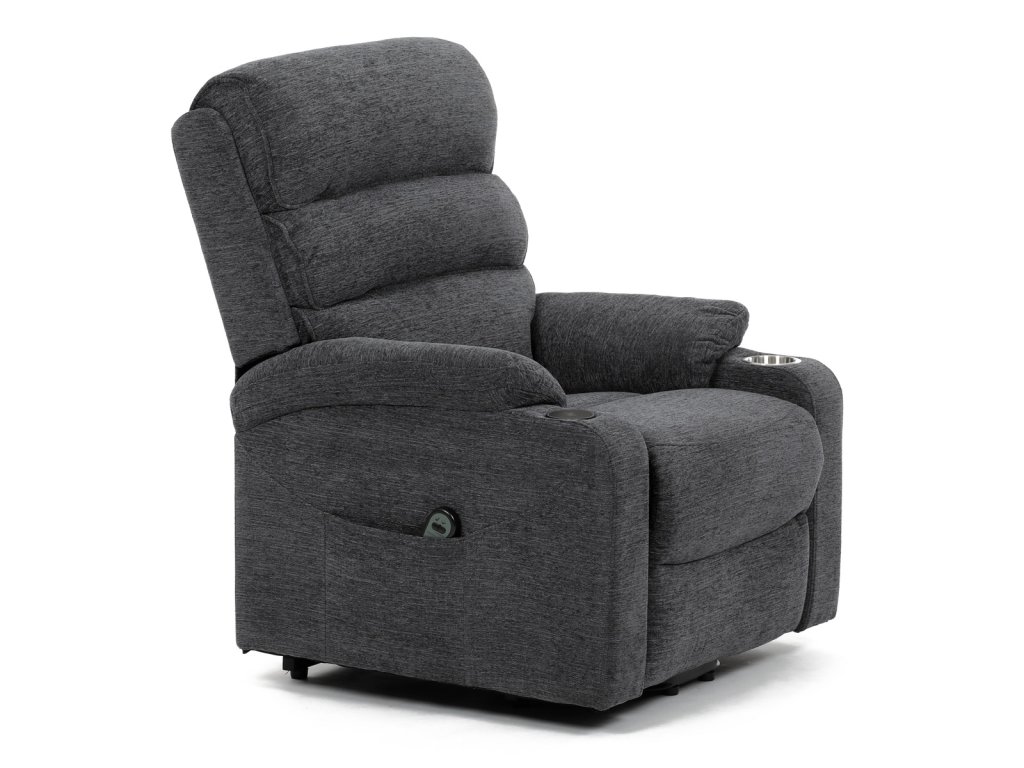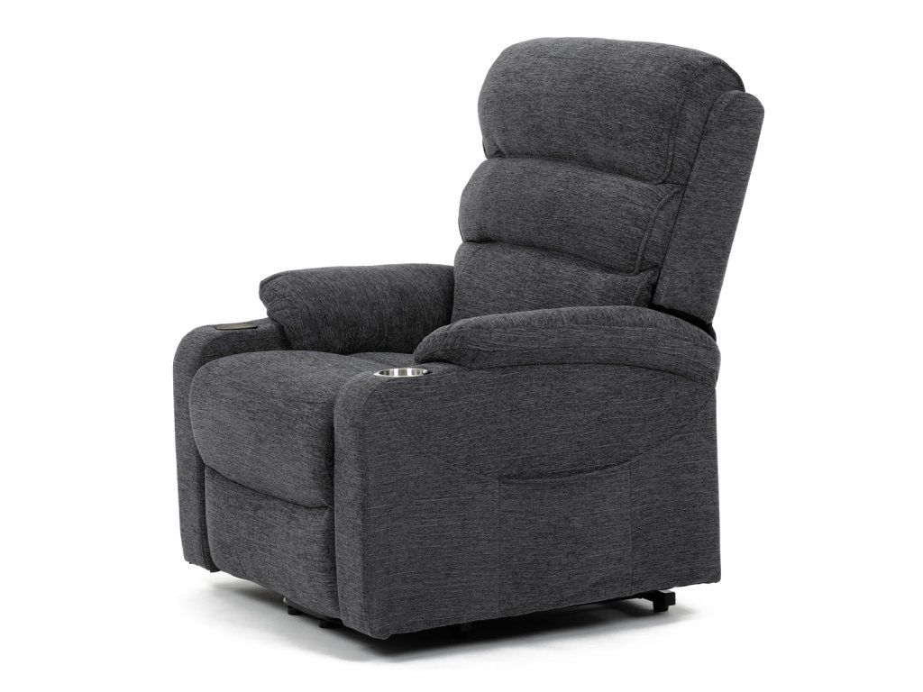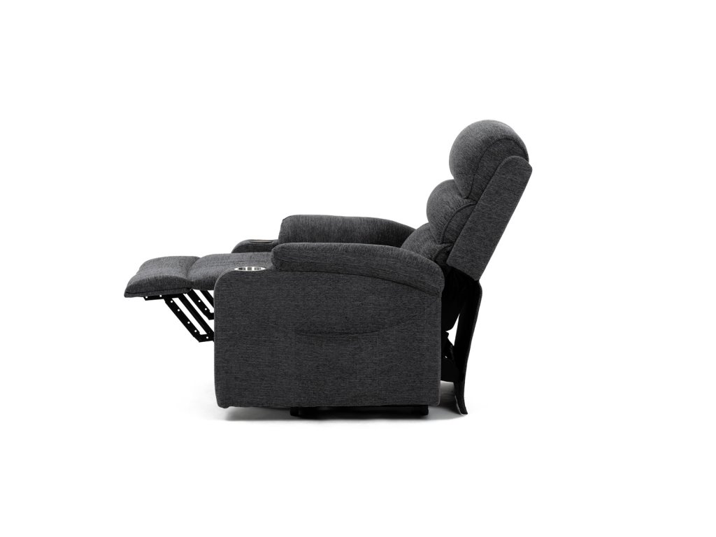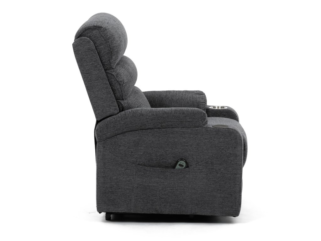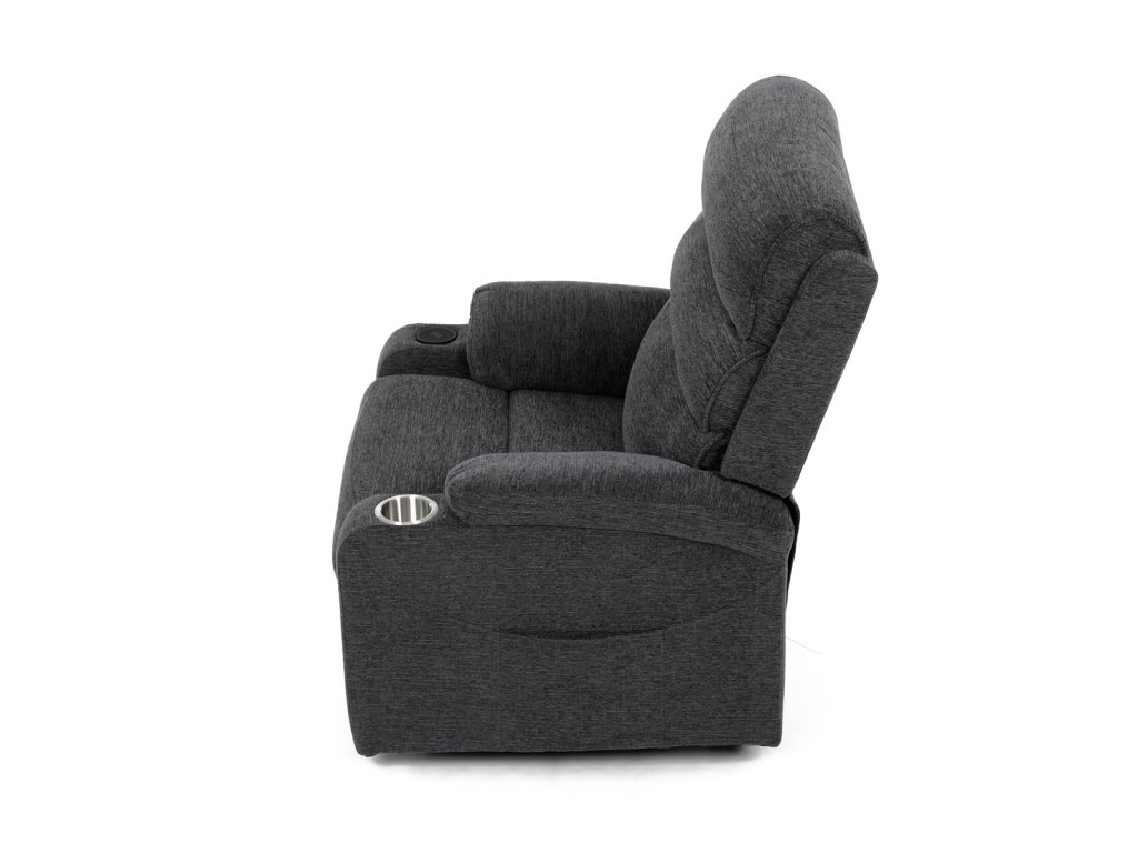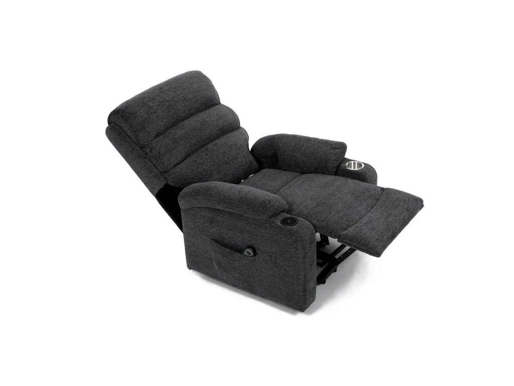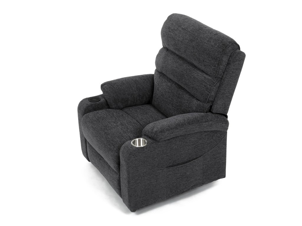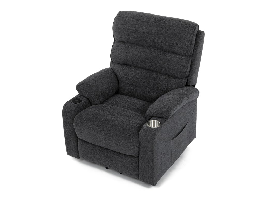 Elektrické polohovací křeslo šedá látka, bezdrátové nabíjení pro mobilní telefon