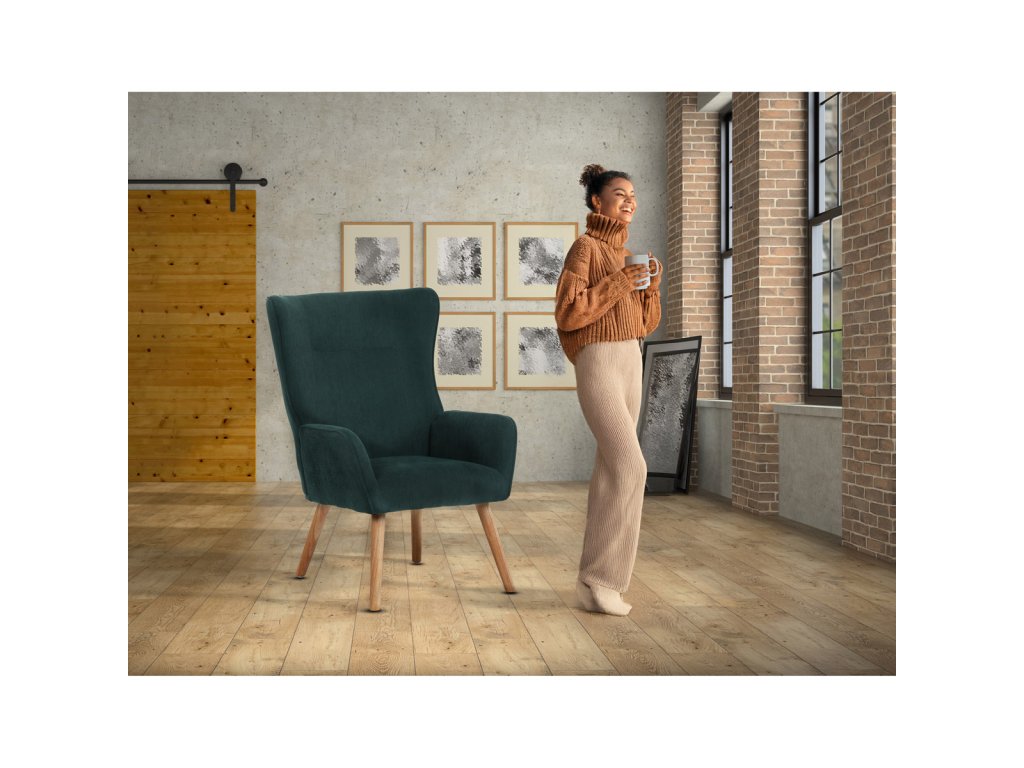 Elegantní zelené křeslo přináší do Vašeho interiéru kombinaci moderního designu a pohodlí.