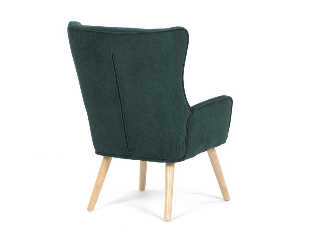Nohy jsou z masivního dřeva v přírodní barvě, což dodává křeslu stabilitu a stylový vzhled.