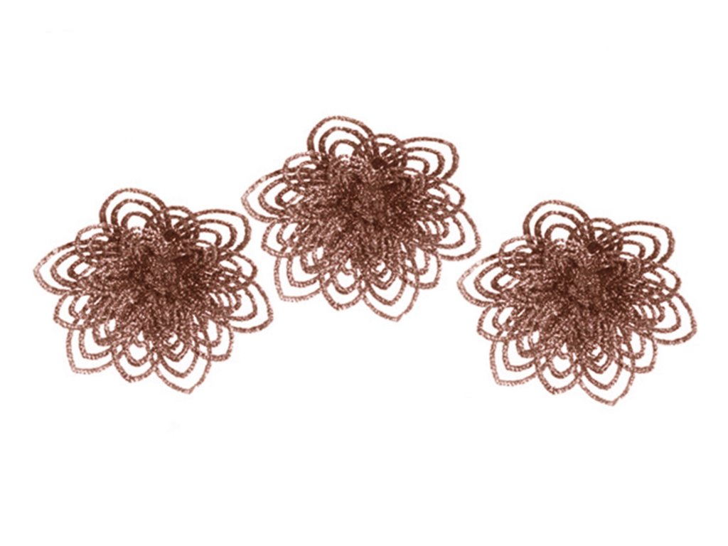 Sada 3 ks dekorací v podobě květin v hnědé barvě.