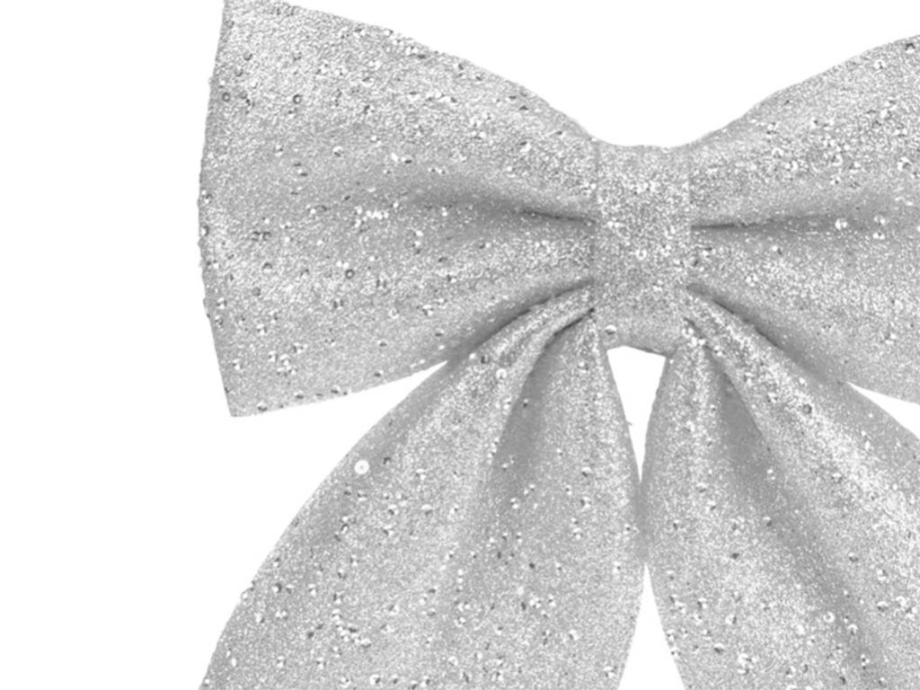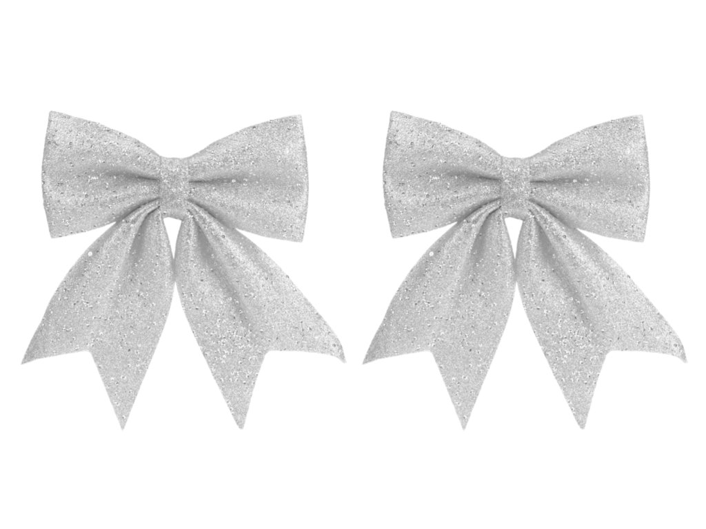 Sada 2 ks dekorací: Mašle stříbrná s glitry 20 x 24 cm