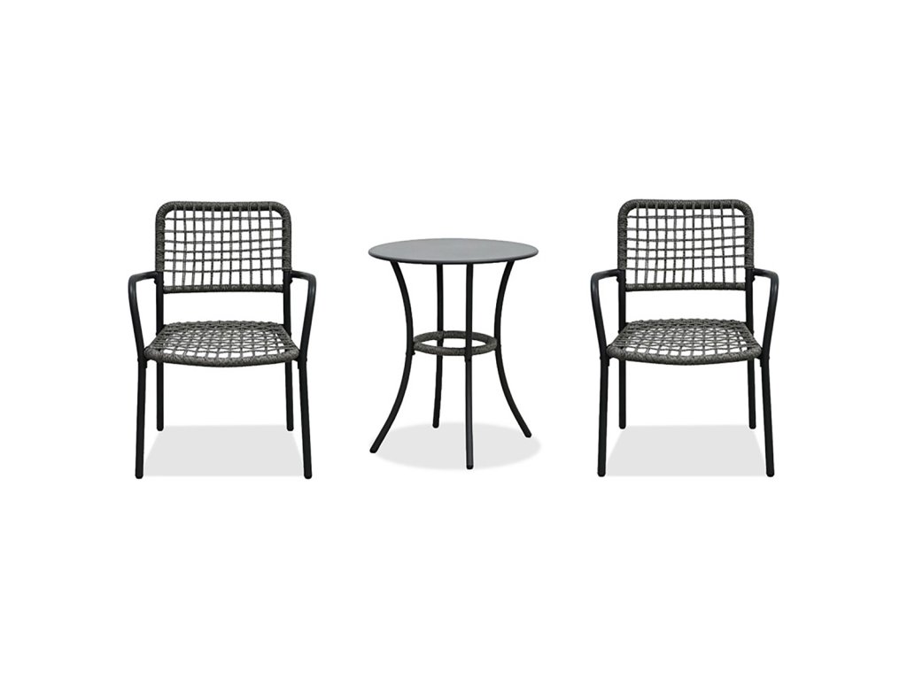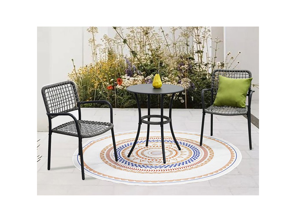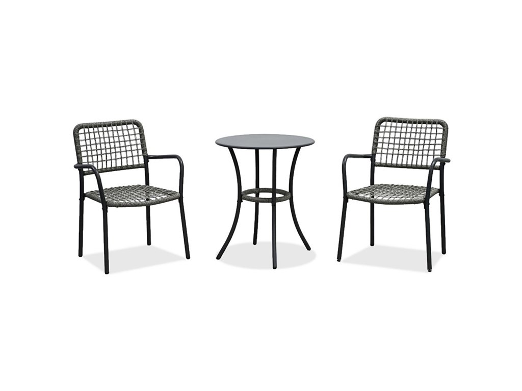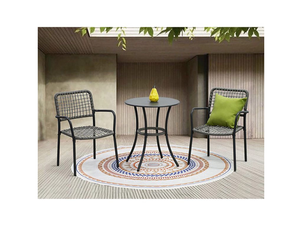 Skládá se ze dvou židlí a kulatého stolku, což poskytuje ideální prostor pro relaxaci u kávy či čaje.