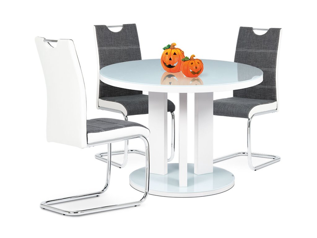 Kulatá deska o průměru 108 cm je z MDF bílé barvy o tloušťce 4 cm v provedení vysoký lesk.