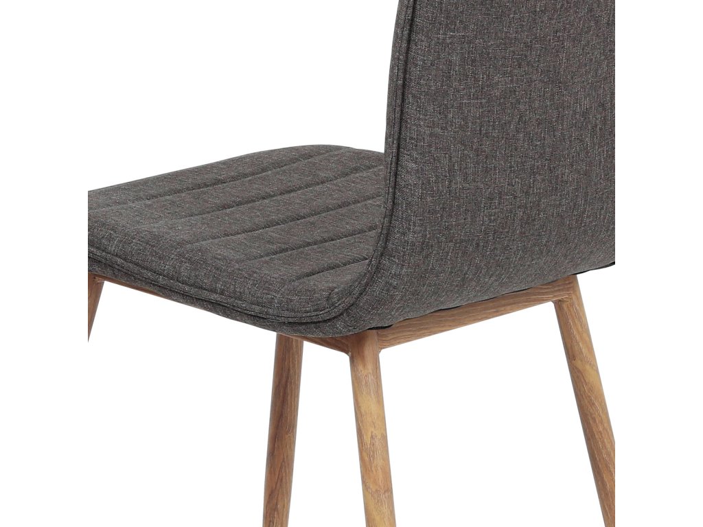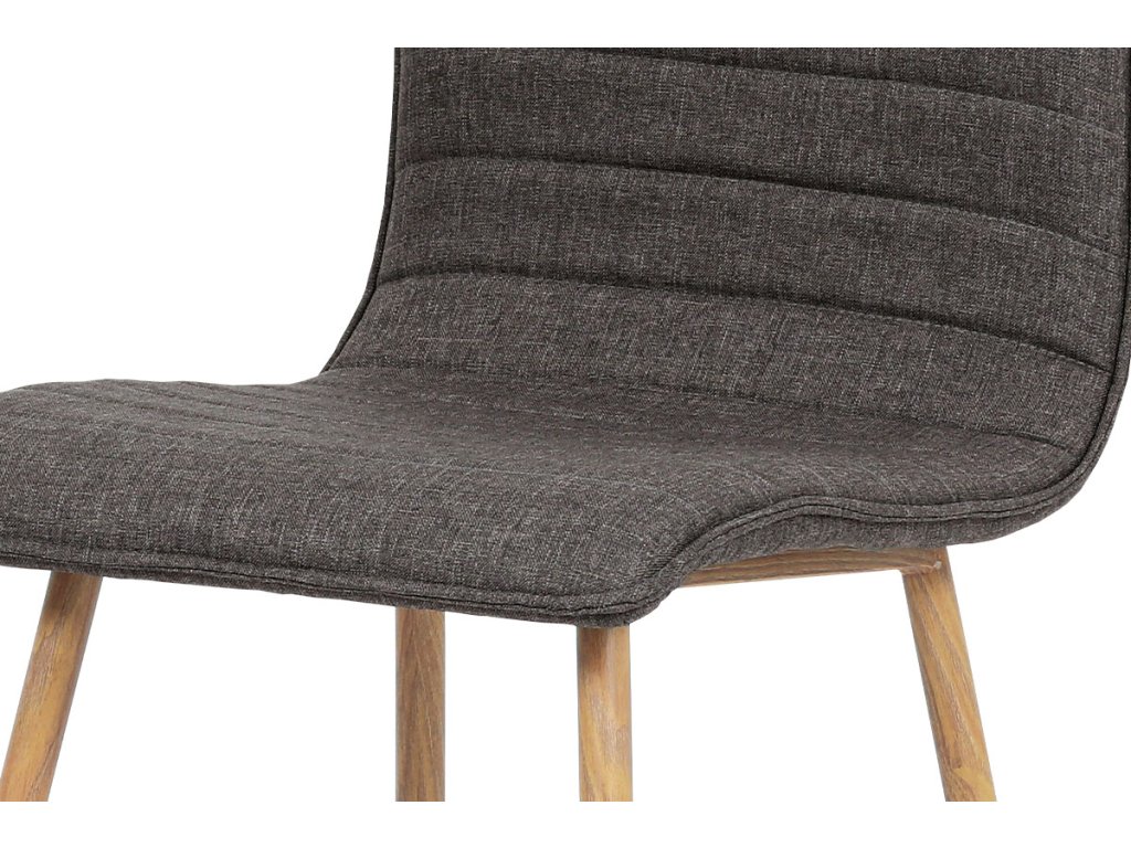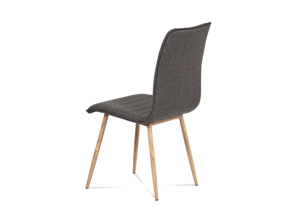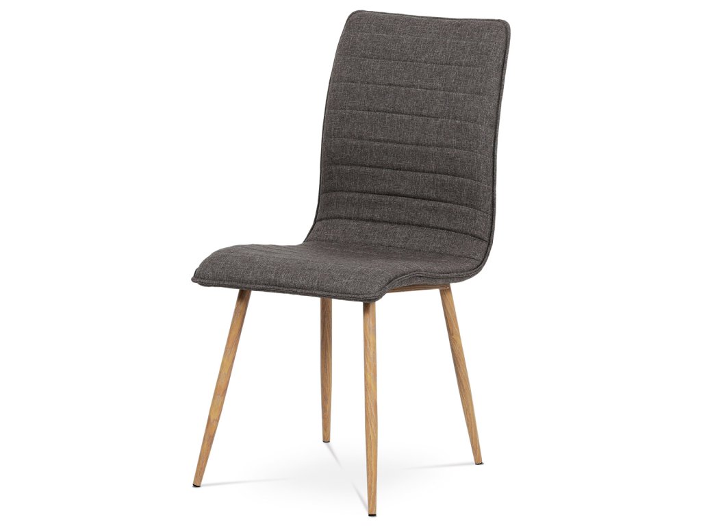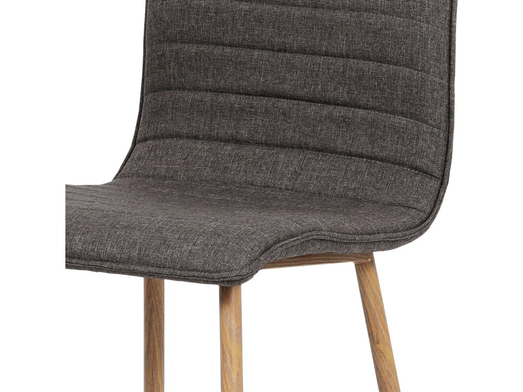 Nohy jsou kovové v dekoru dubu, sedák s opěrákem čalouněný látkou.