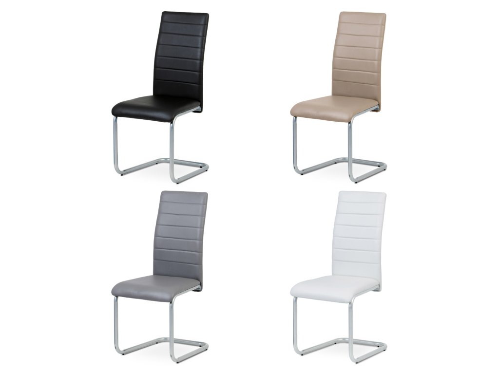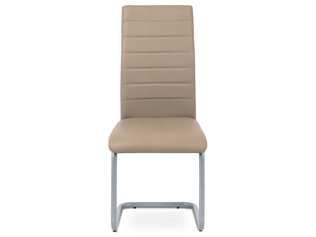 Židle se skládá ze sedáku a opěráku z koženky v barvě cappuccino a kovovou podnoží v šedé barvě.