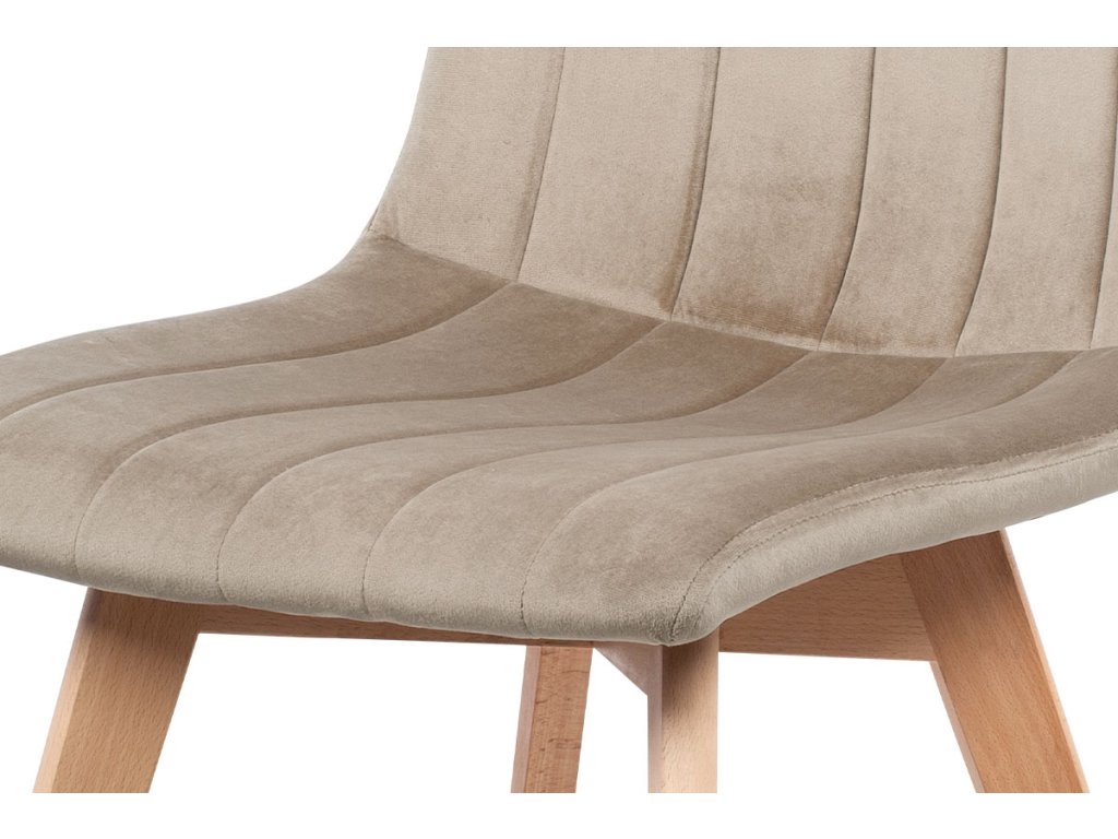 Vyrobená ze šedé sametové látky v kombinaci s masivními bukovými nohami v přírodní barvě.