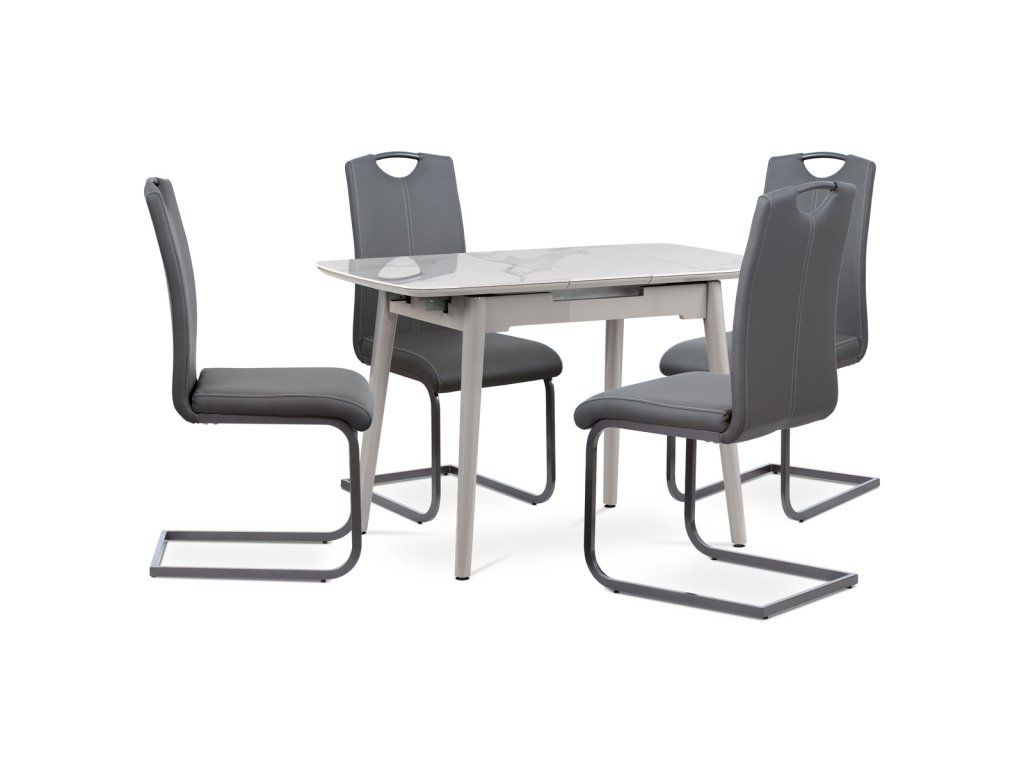 Potah tmavě šedá ekokůže s bílým prošitím sedáku i opěráku.