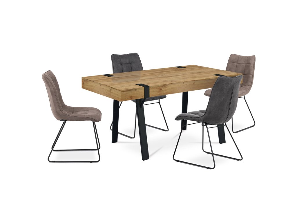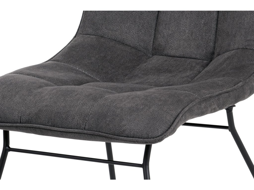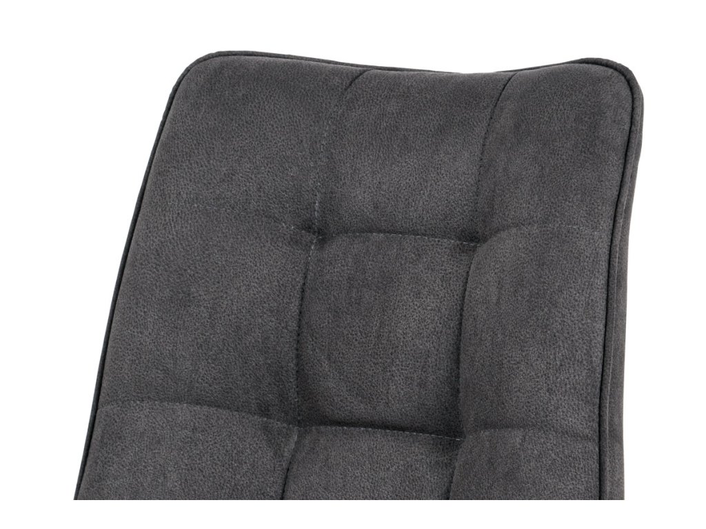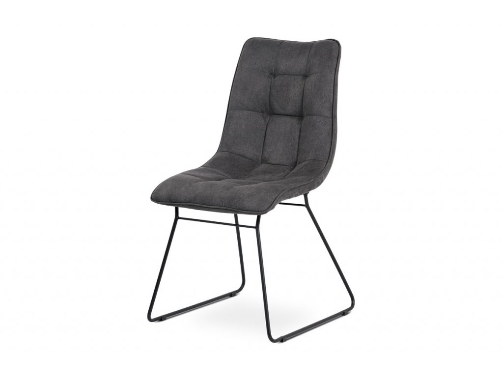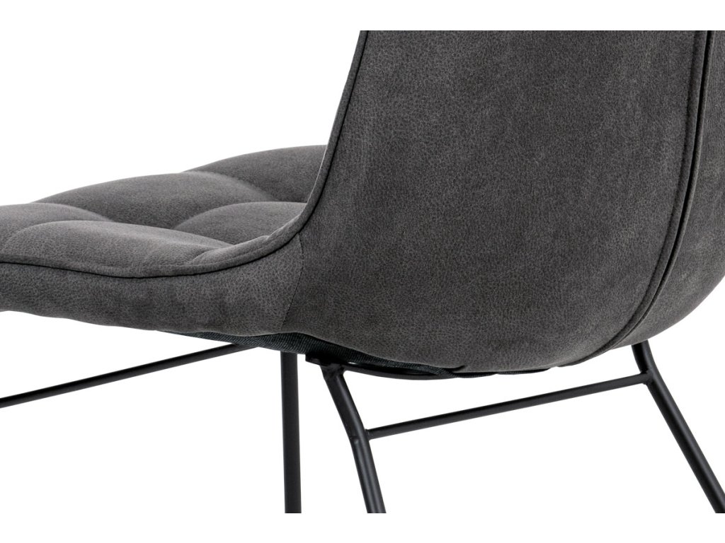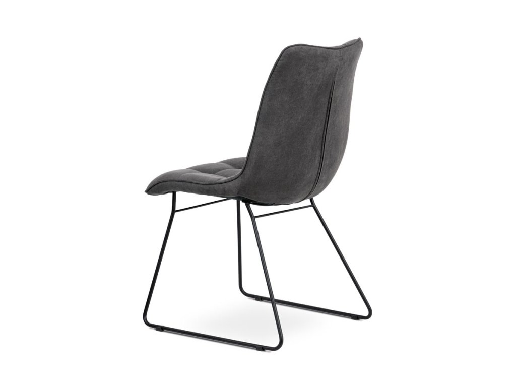 Židle je poctivě polstrovaná a čalouněná šedou látkou imitující broušenou kůži s prošitím, které dodává na retro vzhledu židle a s dekorativní paspulí.