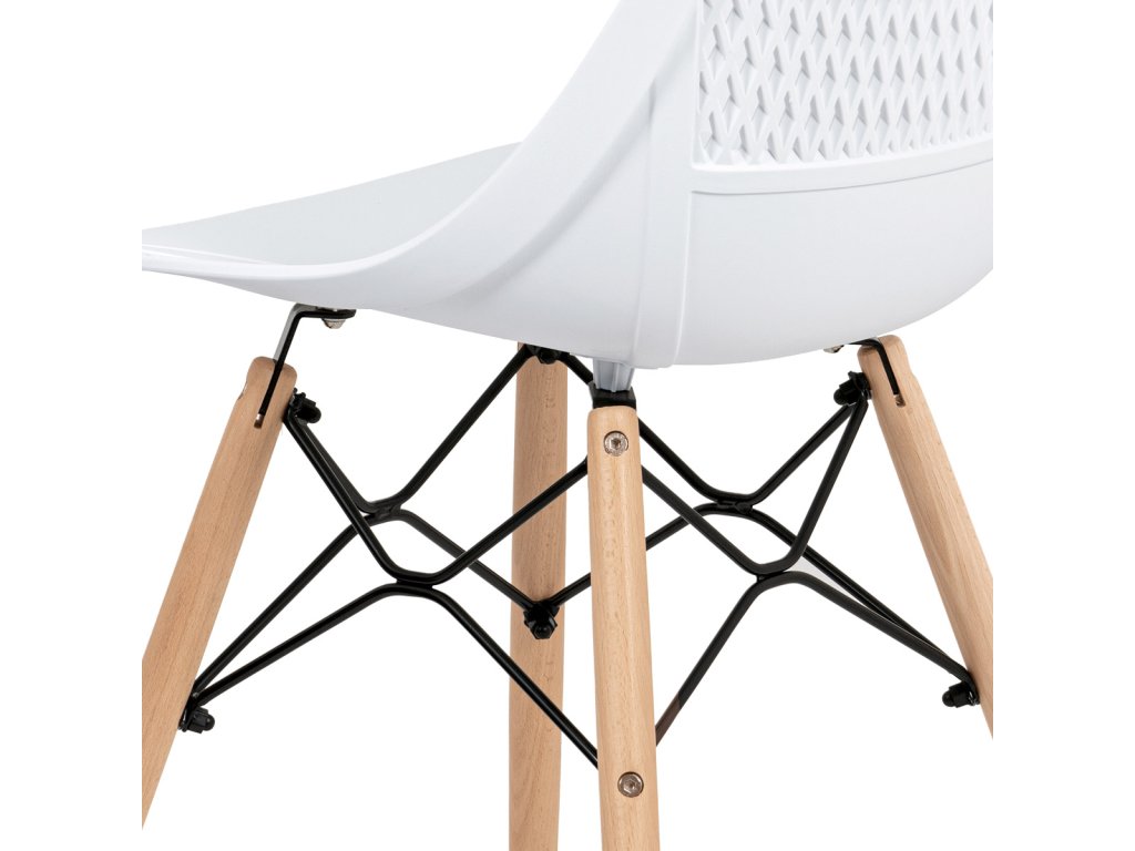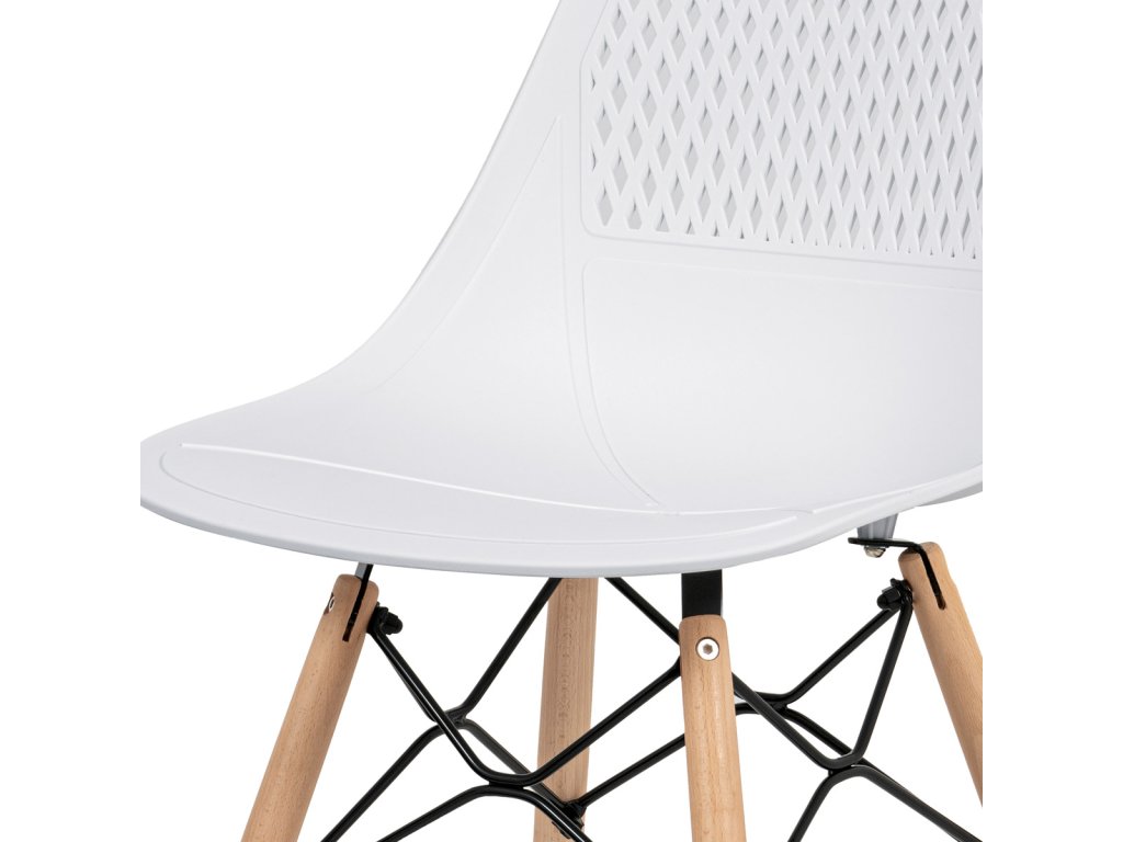 Pohodlný sedák je z pevného plastu bílé barvy a jeho nedílnou součástí jsou i designové prvky jako je například drobné průduchy v horní části opěráku.
