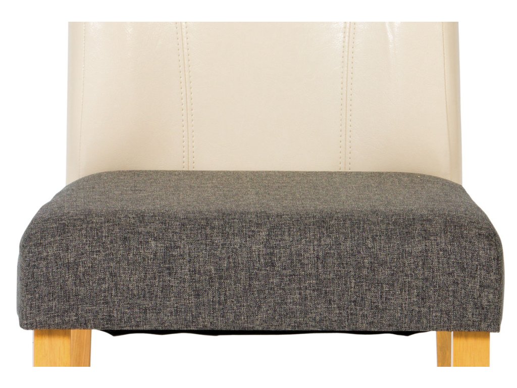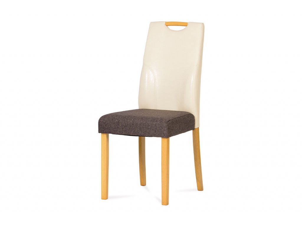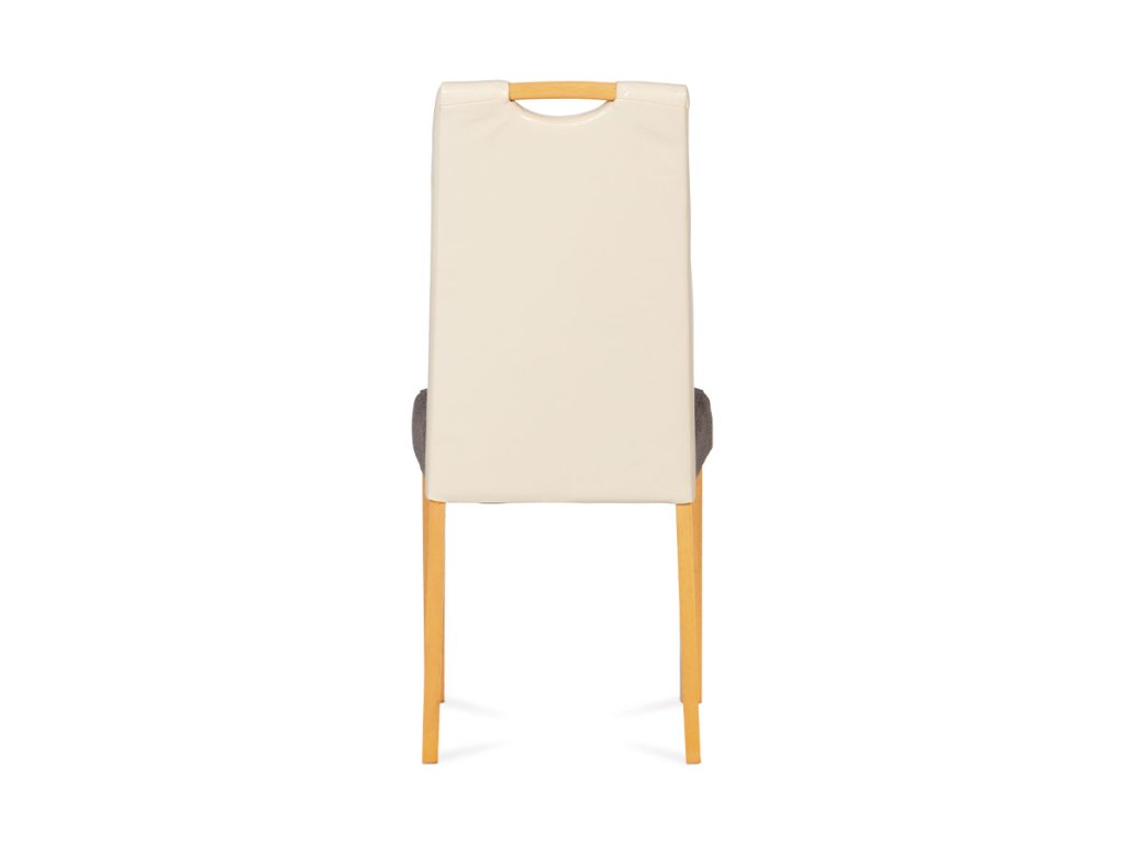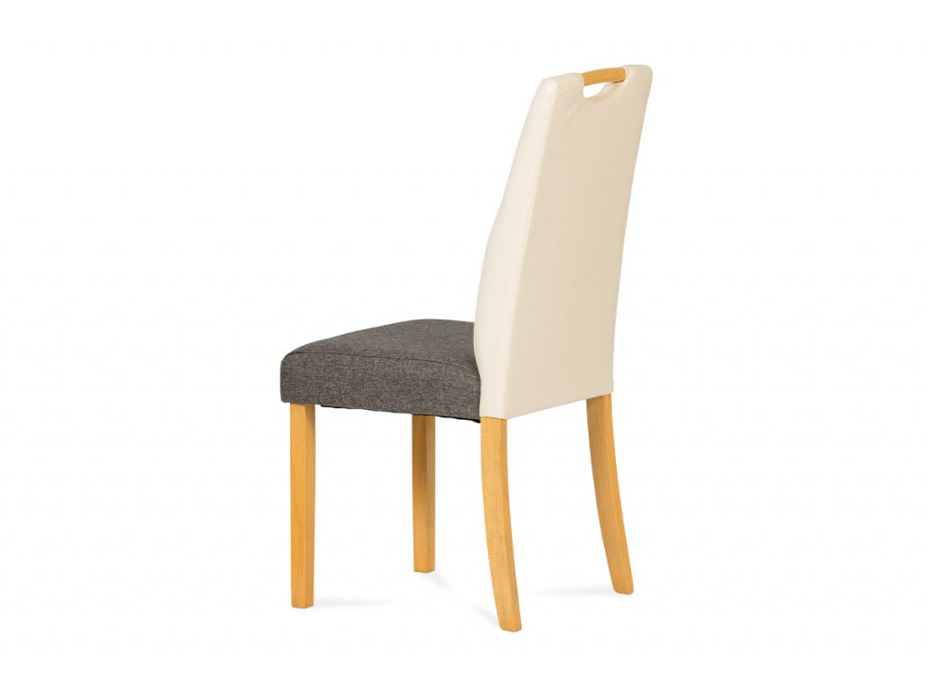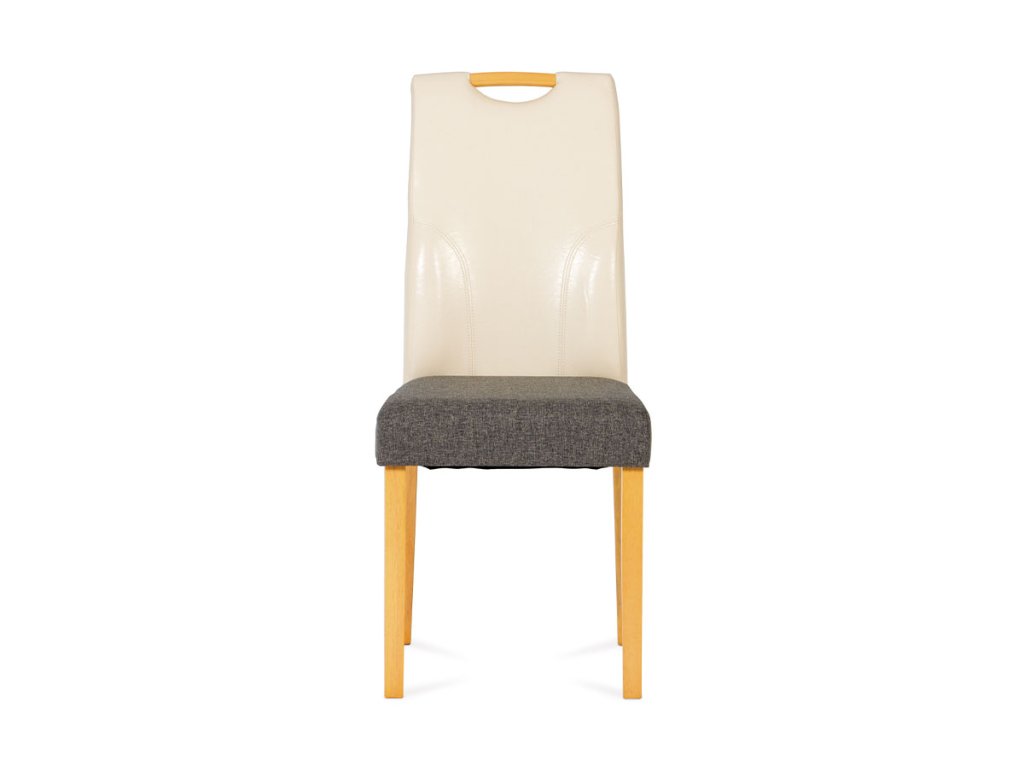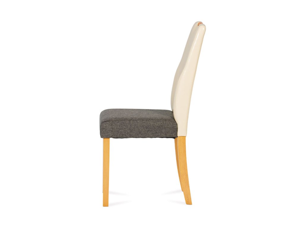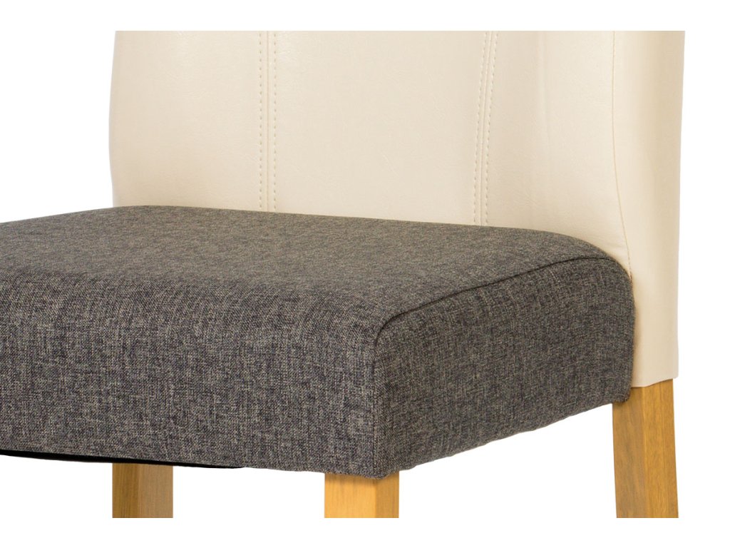 Židle je v dekoru buku s koženkovým opěradlem v krémové barvě a s tmavě šedým látkovým sedákem.