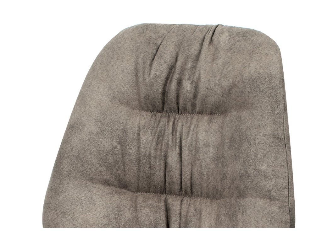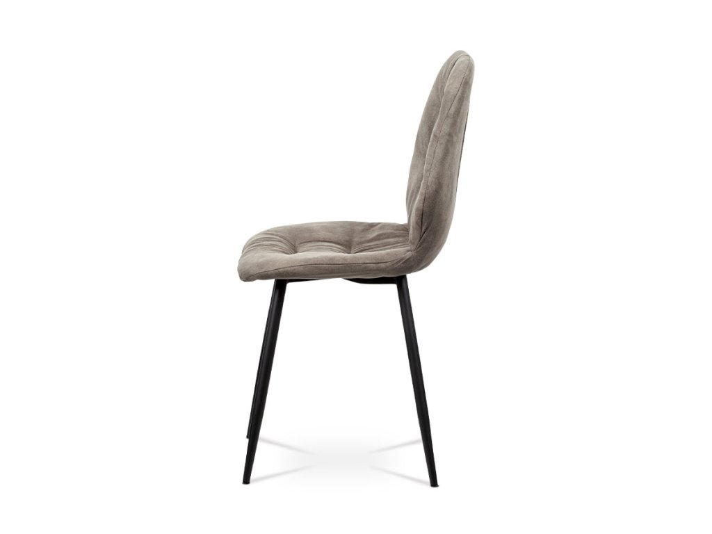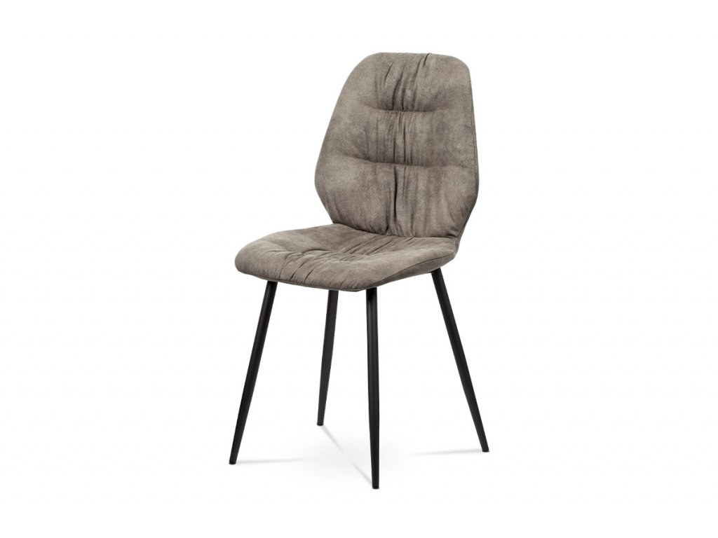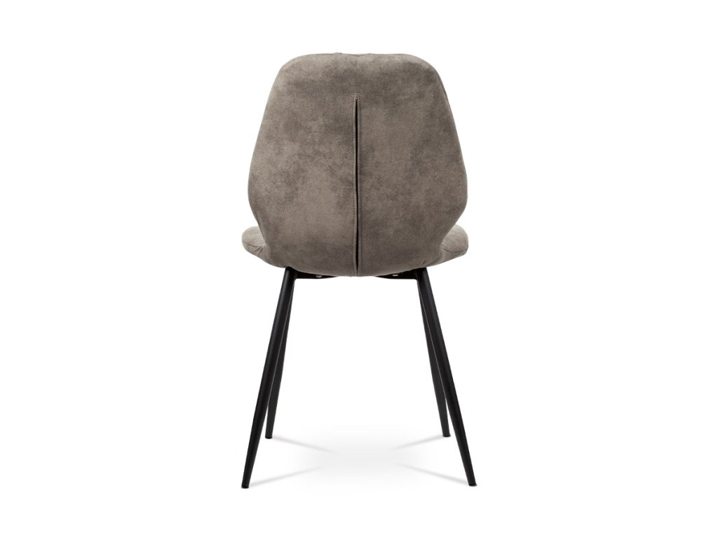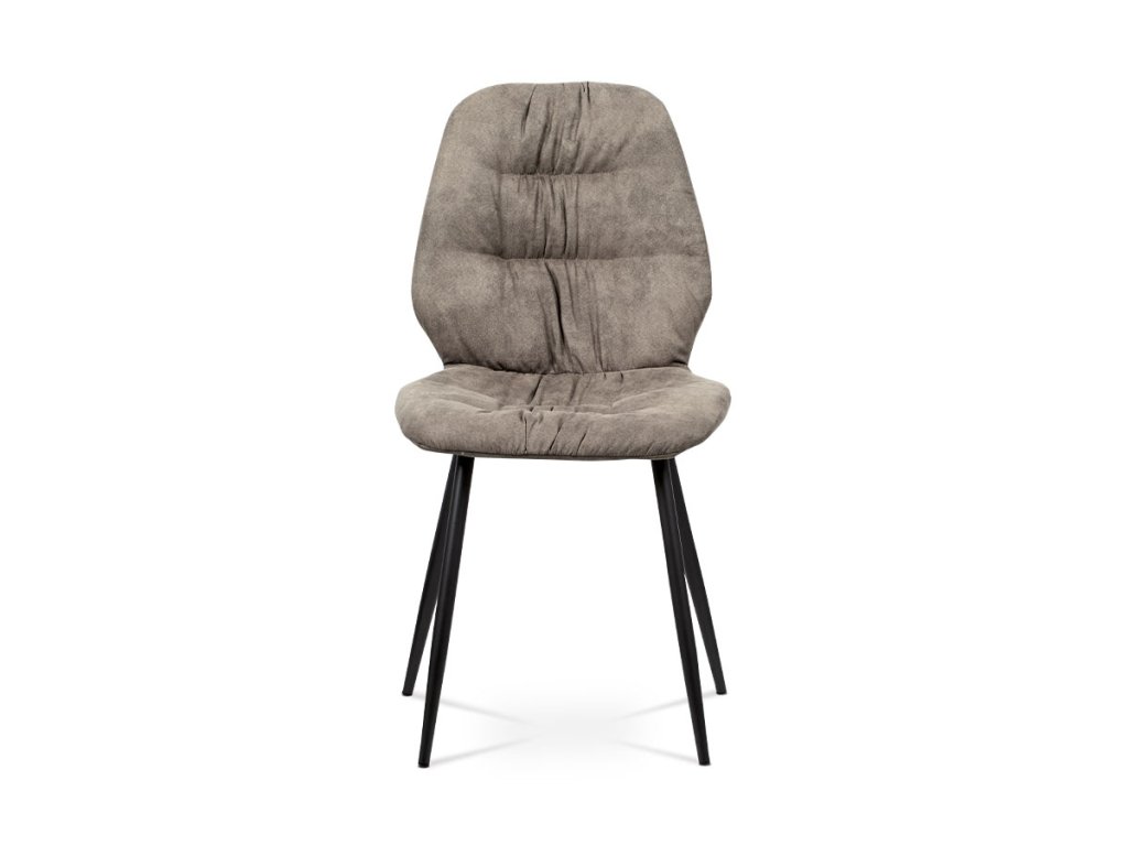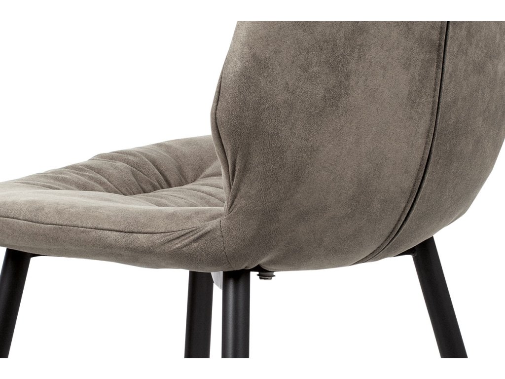 Potah hnědá látka v dekoru broušené kůže, s dekorativním prošitím a nařasením sedáku i opěráku.