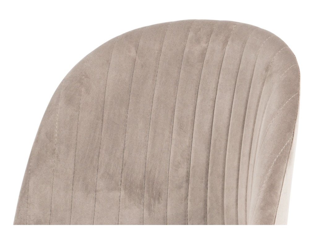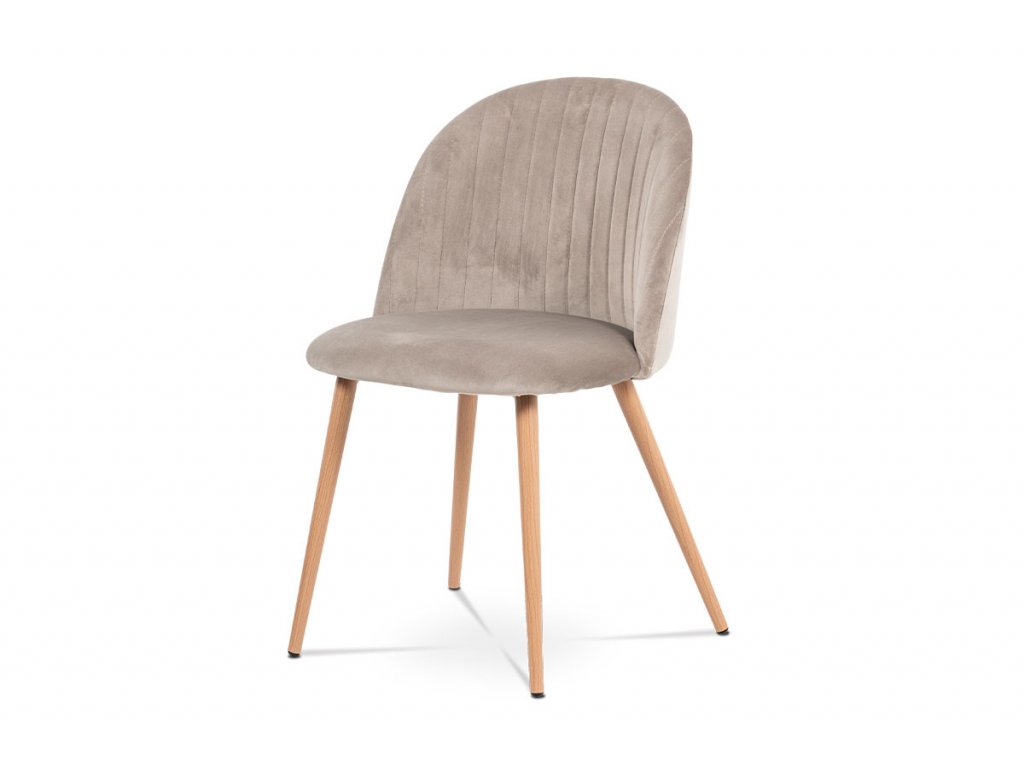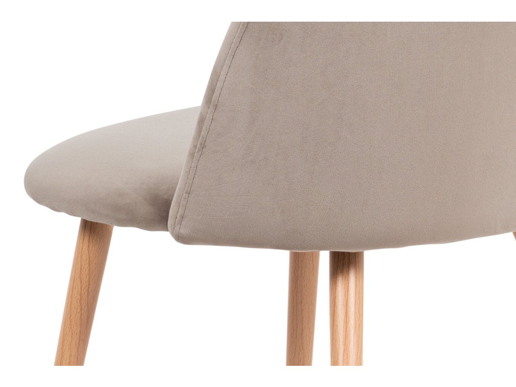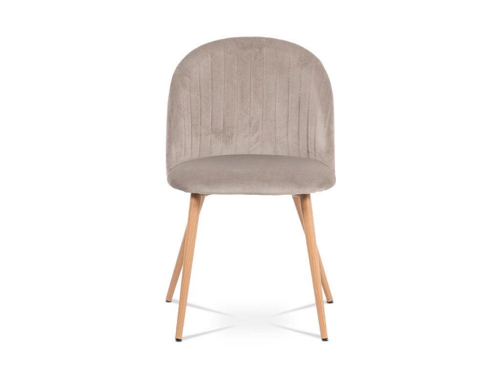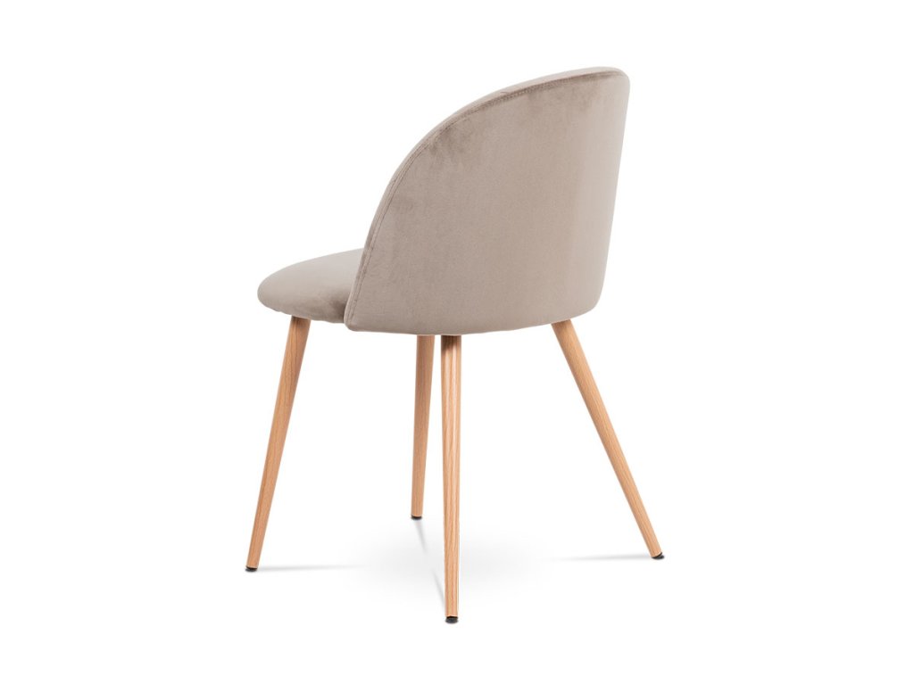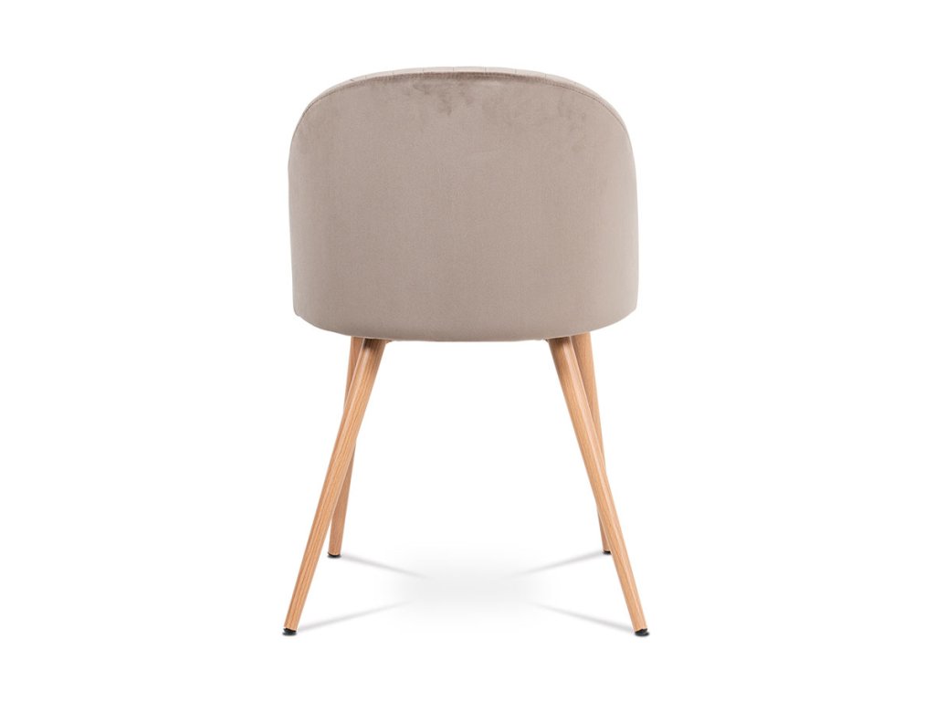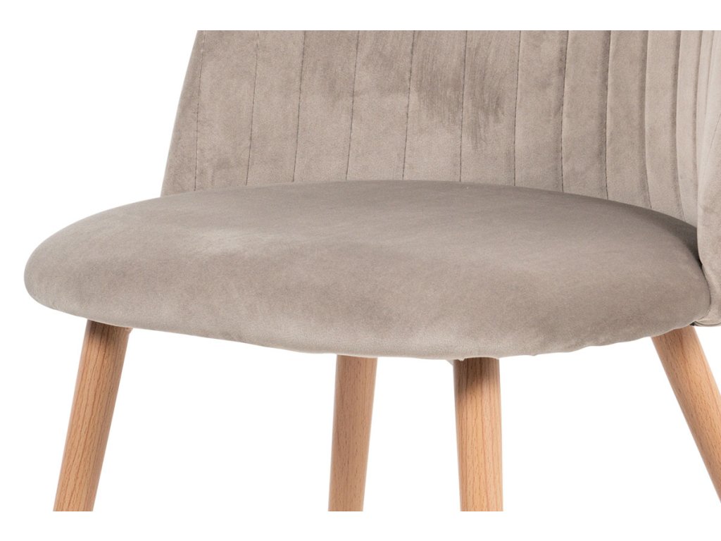 Polstrovaný sedák s opěrákem jsou čalouněné sametovou látkou lanýžové barvy.