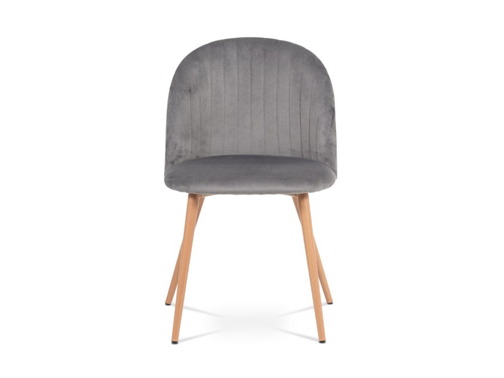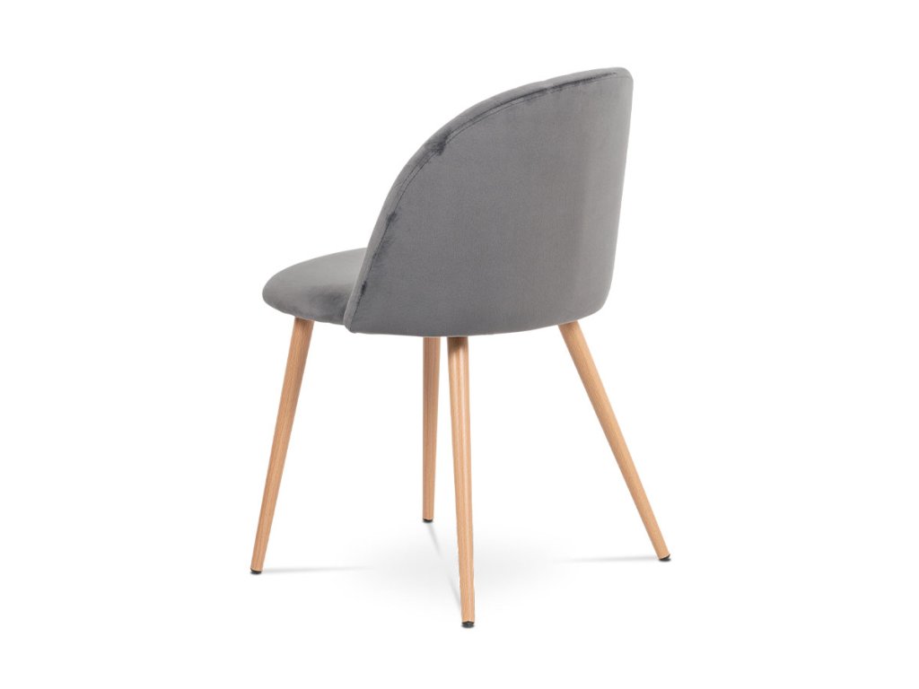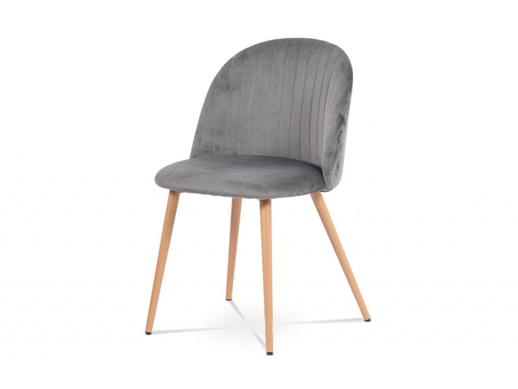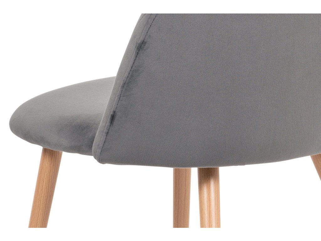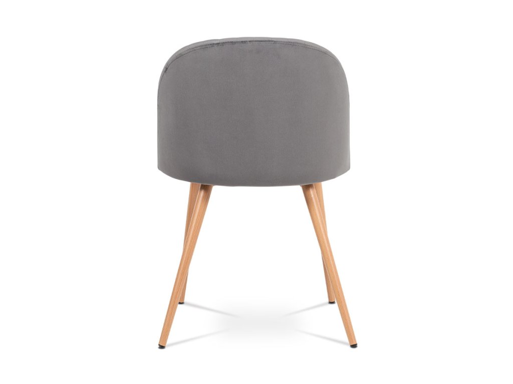 Polstrovaný sedák s opěrákem jsou čalouněné sametovou látkou šedé barvy.