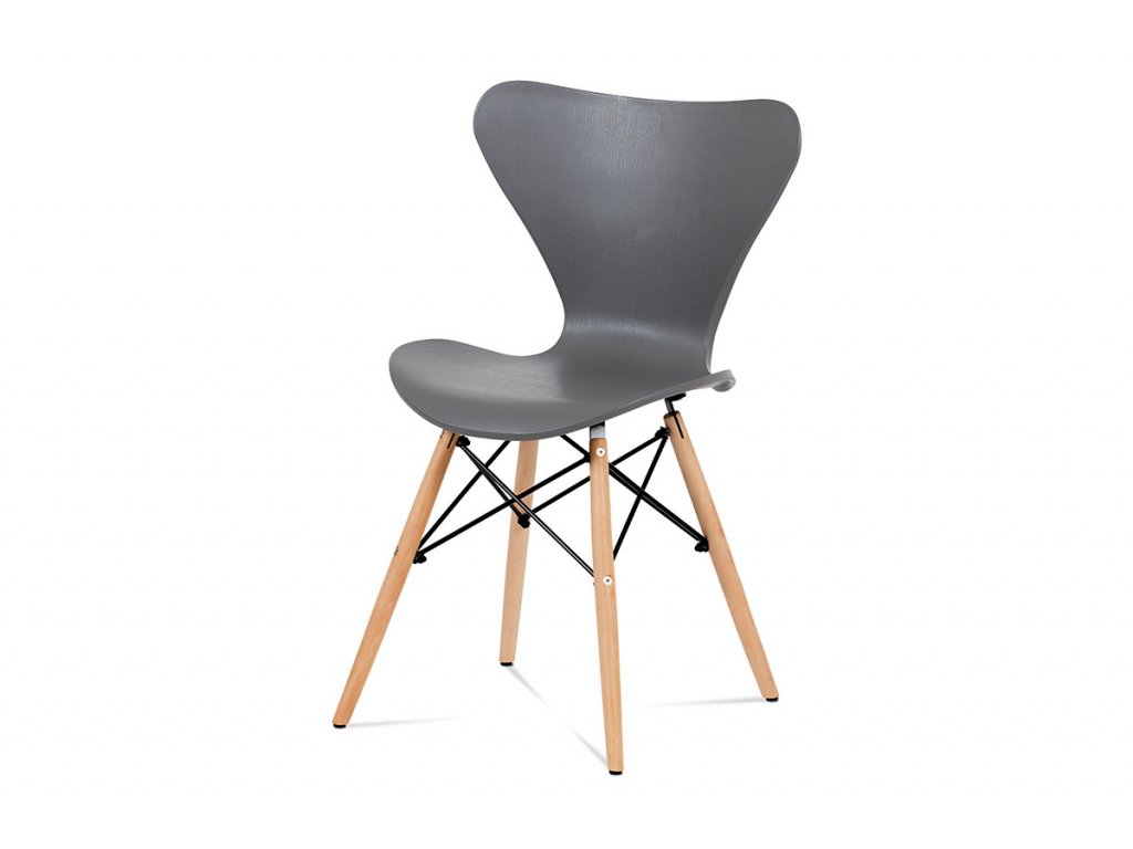 Židle je dodávána v šedé barvě s dekorem dřeva.